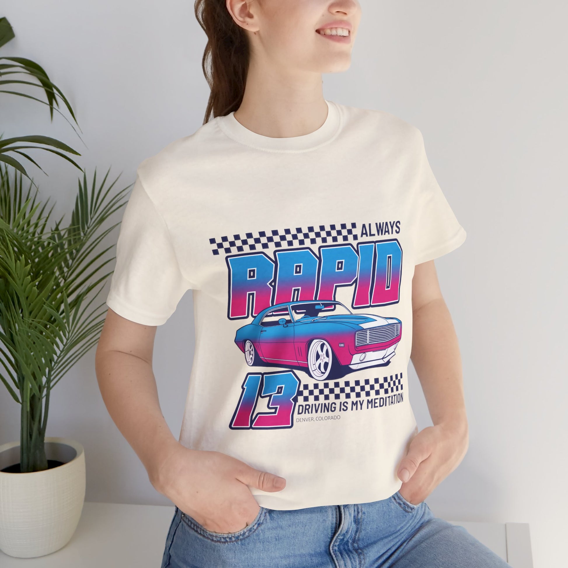 Camiseta de manga corta unisex "Conducir siempre rápido es mi meditación"