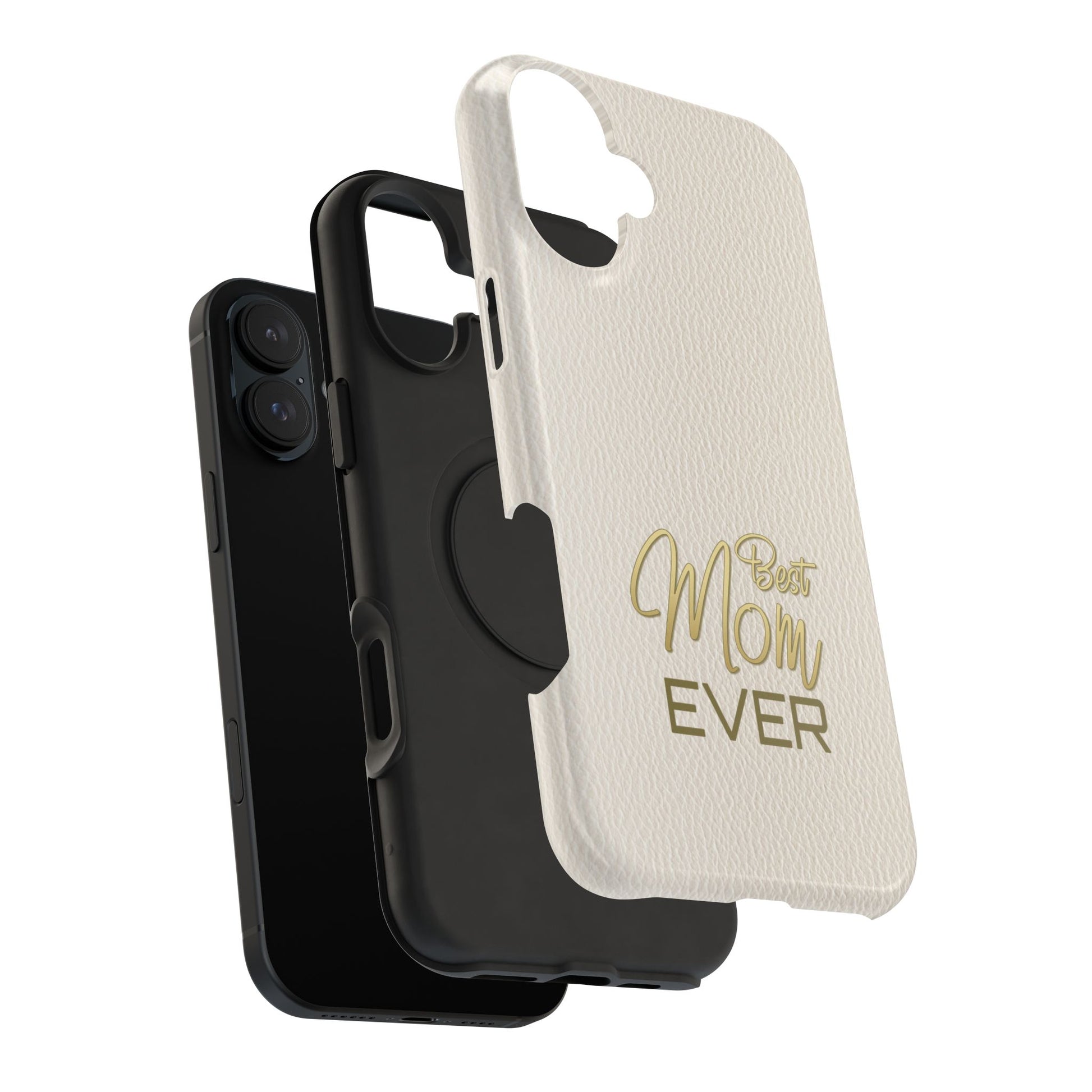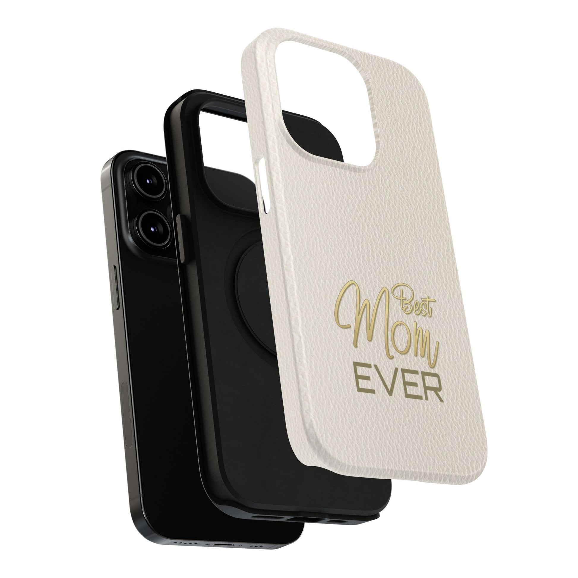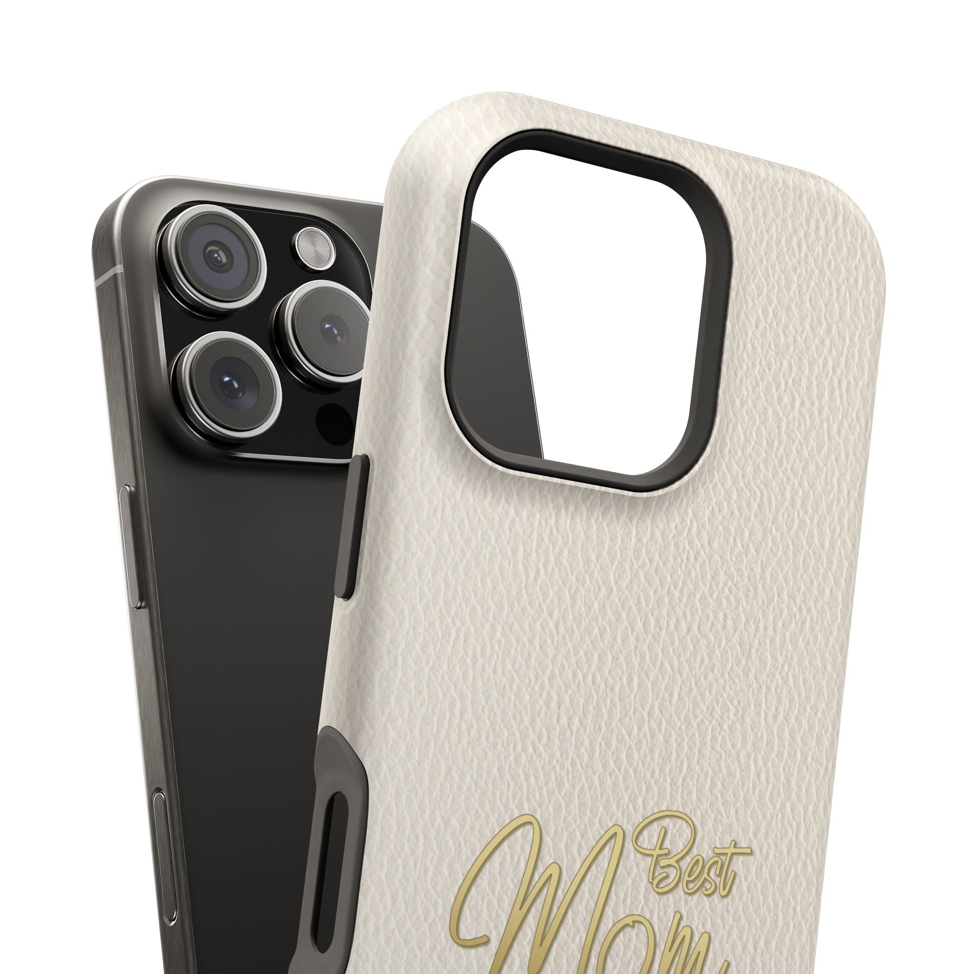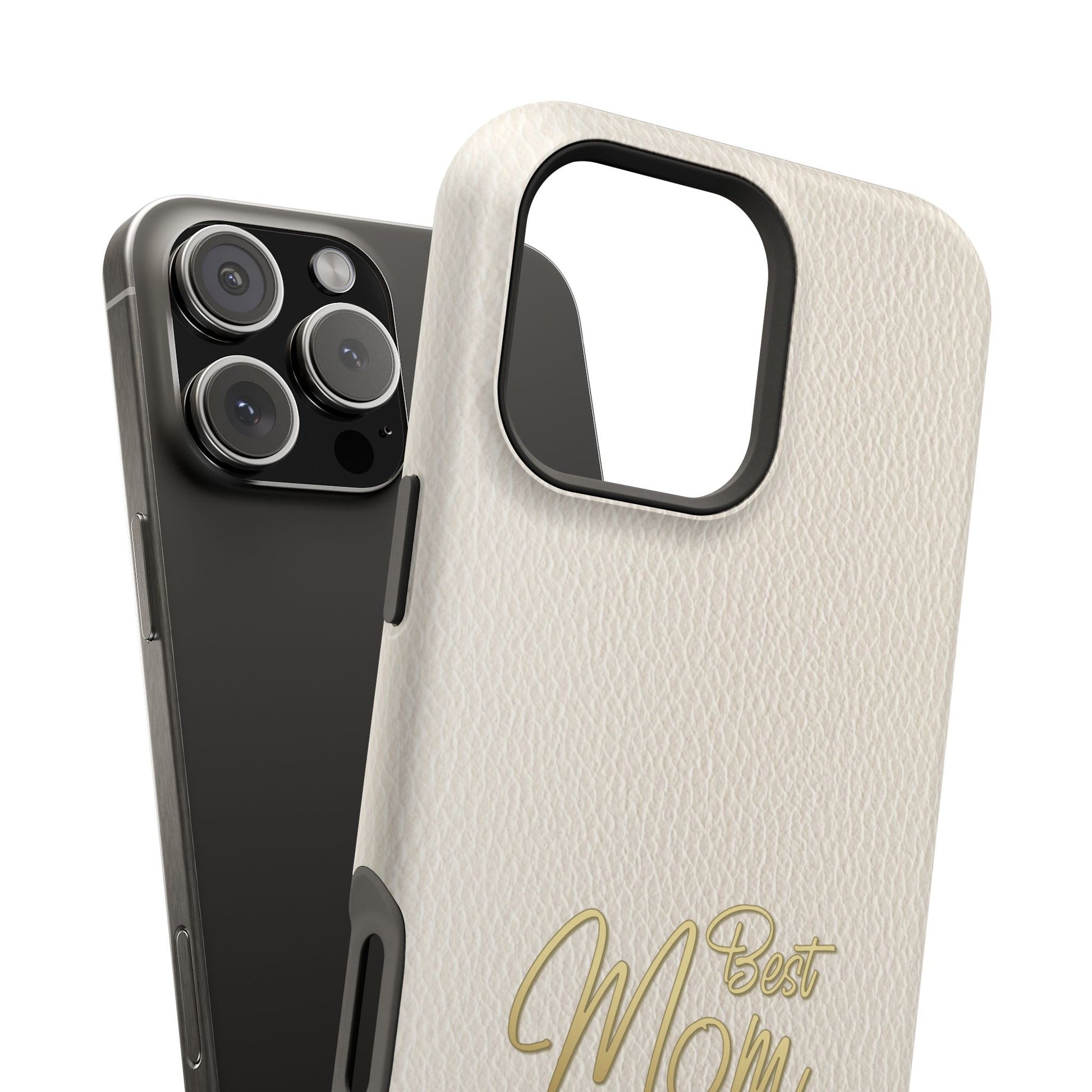 The Jakers Impact-Resistant Phone Case is designed for iPhone and Samsung models, featuring a white leather texture with 'Best Mom' design. This durable dual-layer polycarbonate case offers protection against scratches and bumps while providing a vibrant, high-quality print. Perfect for moms who want to keep their phones safe in style, this case is ideal for Mother's Day, birthdays, or just to show appreciation.