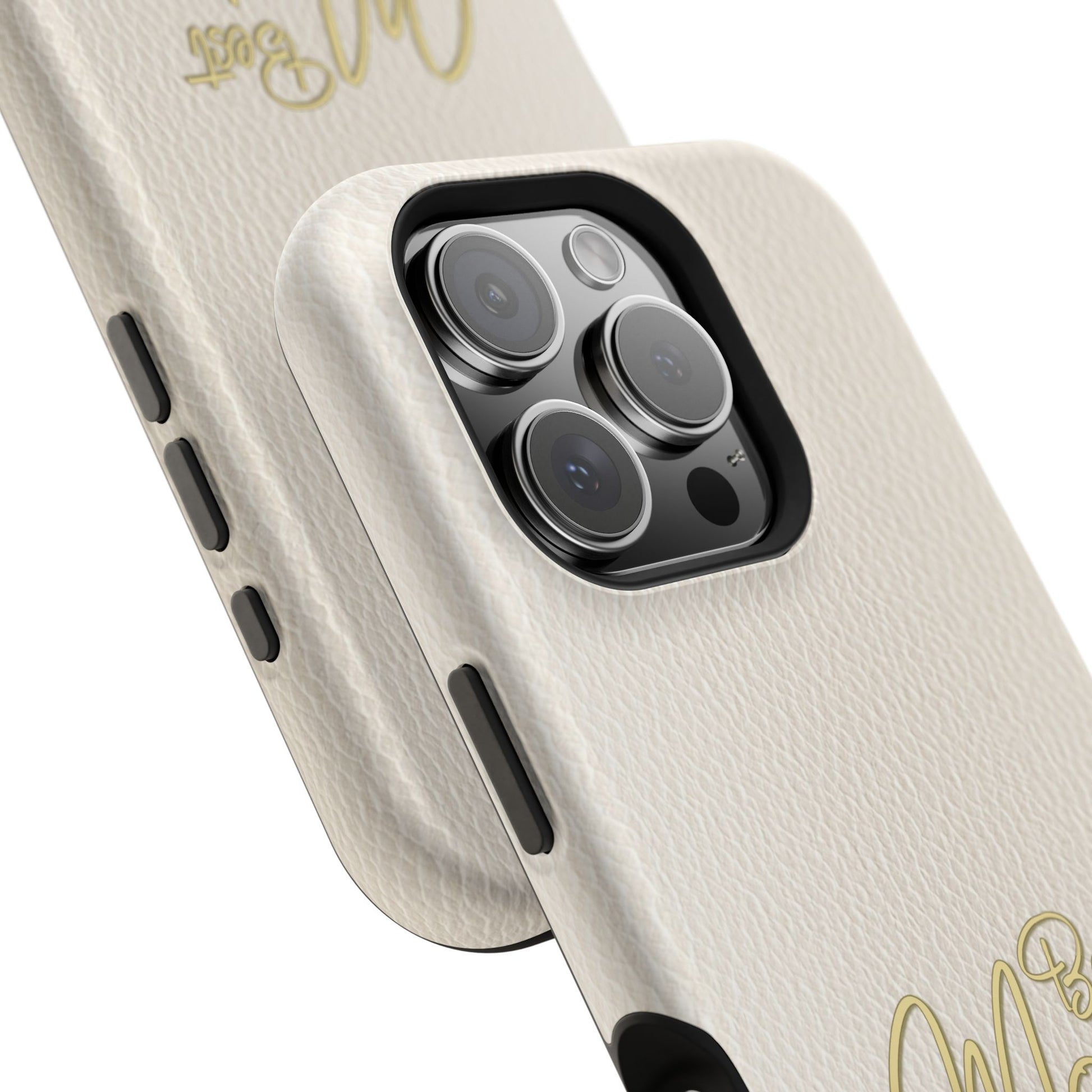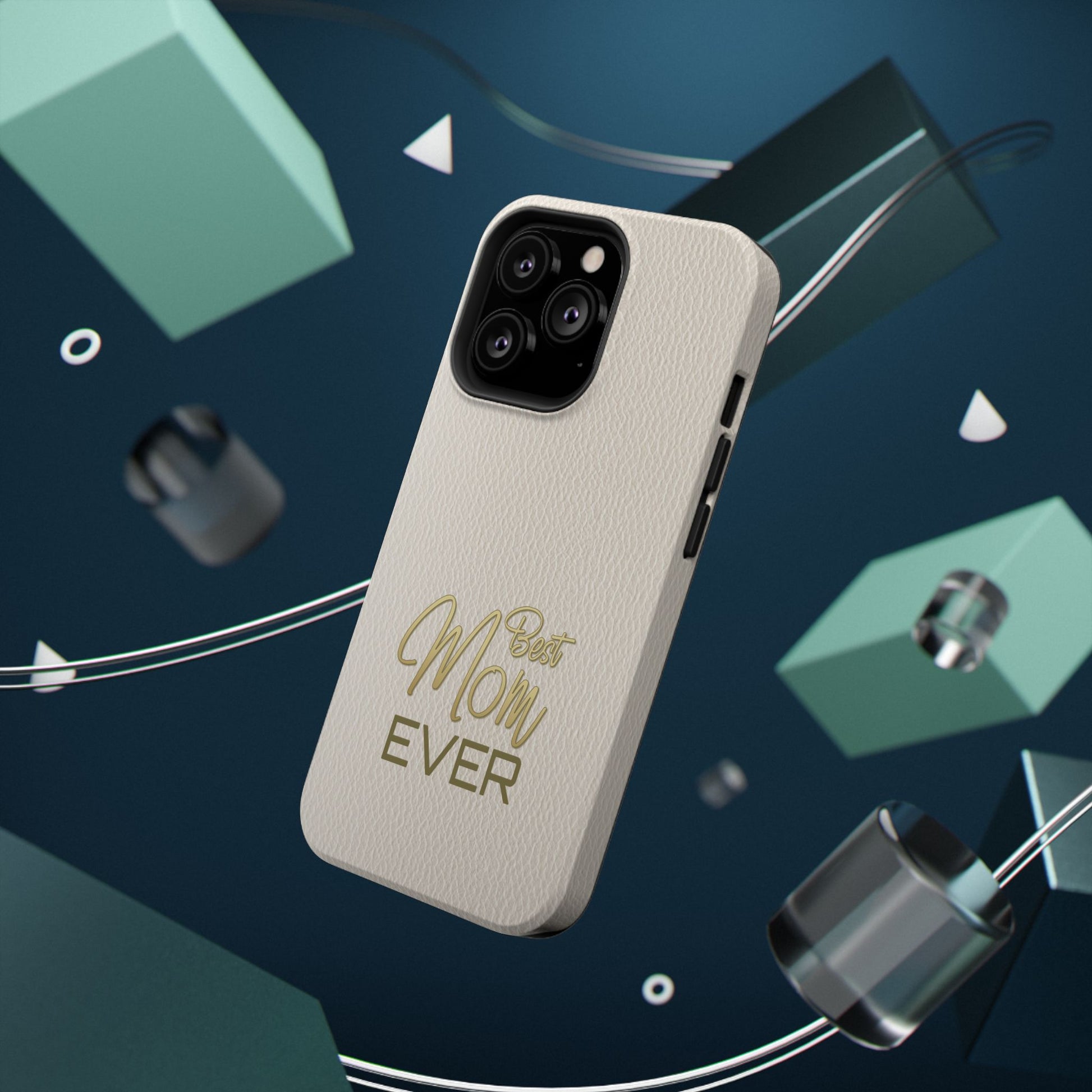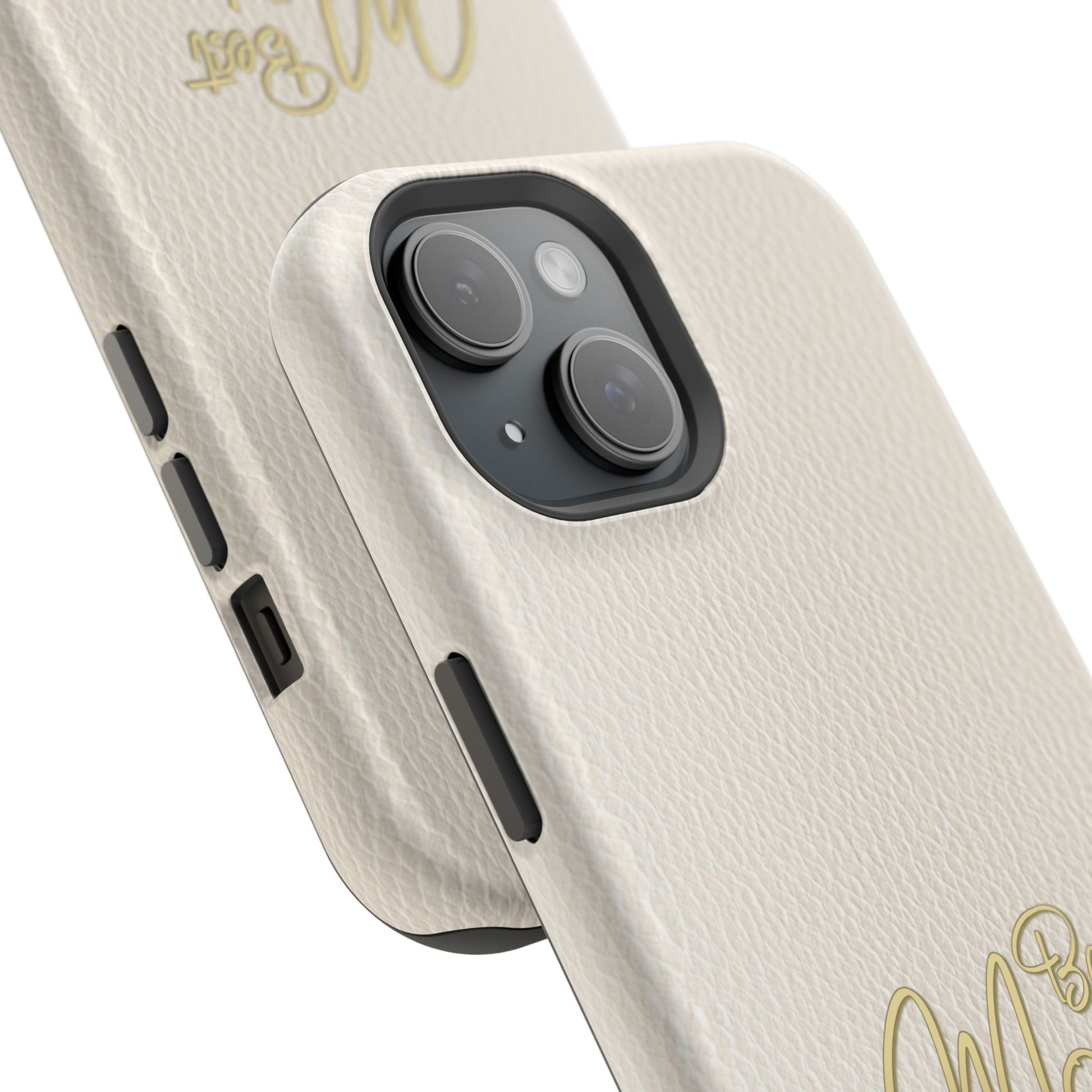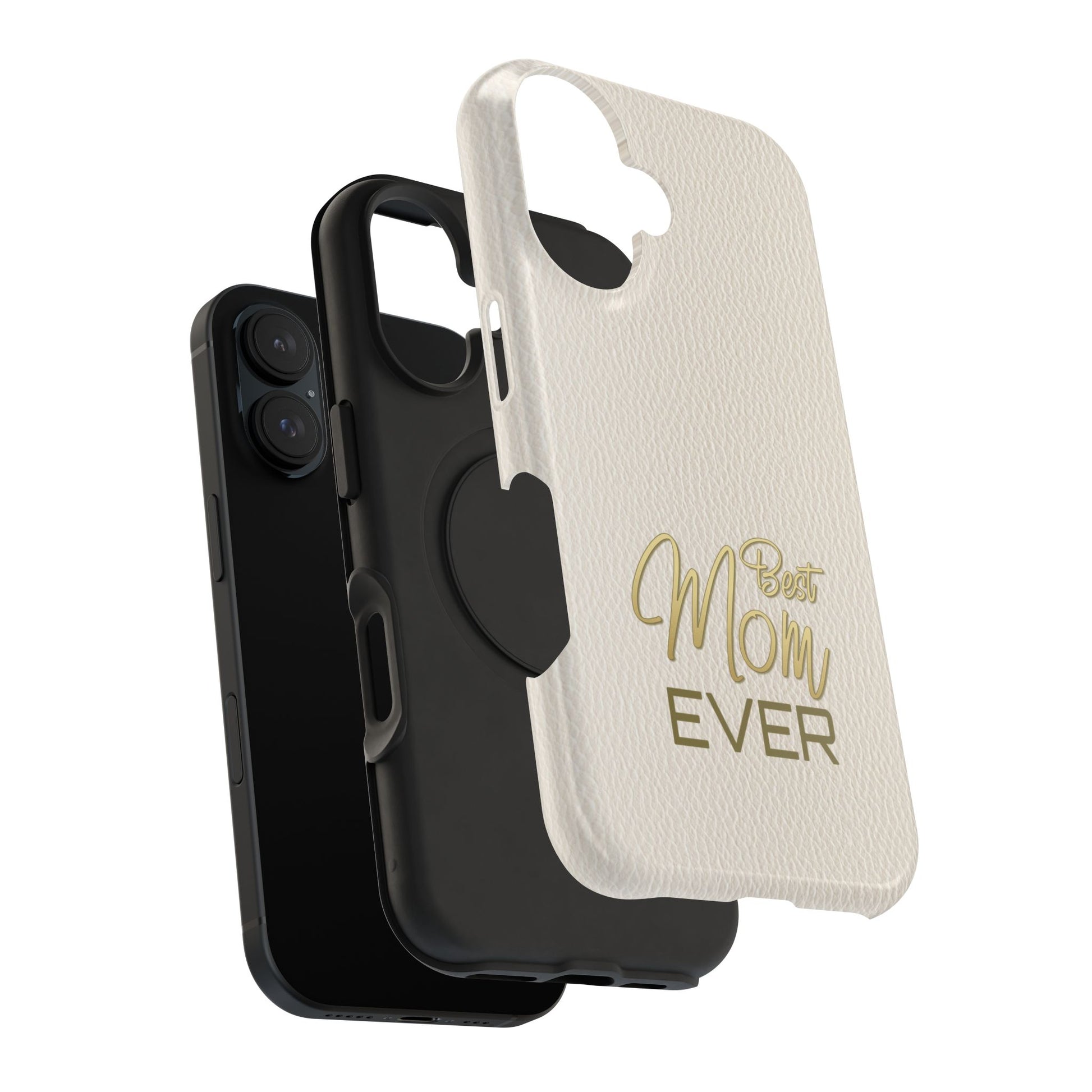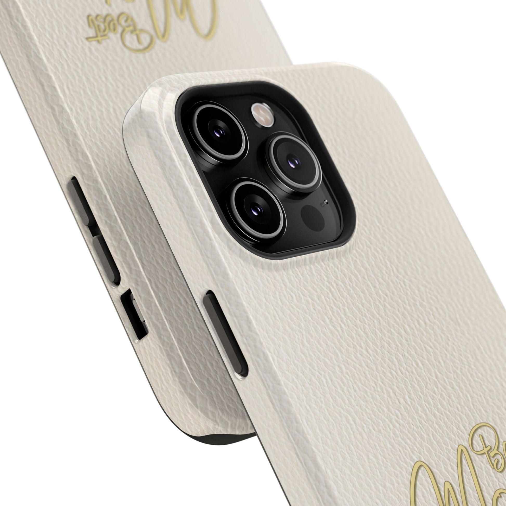 The Jakers Impact-Resistant Phone Case is designed for iPhone and Samsung models, featuring a white leather texture with 'Best Mom' design. This durable dual-layer polycarbonate case offers protection against scratches and bumps while providing a vibrant, high-quality print. Perfect for moms who want to keep their phones safe in style, this case is ideal for Mother's Day, birthdays, or just to show appreciation.
