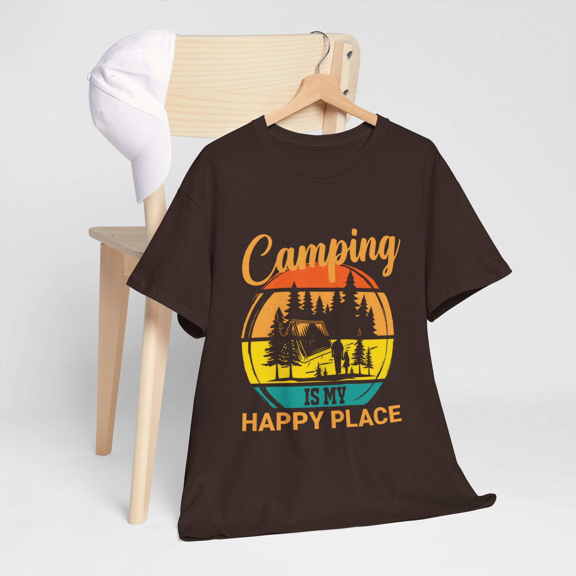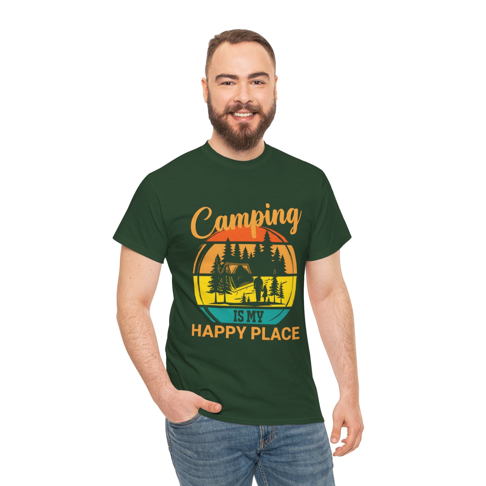 The Camping Is My Happy Place Unisex Heavy Cotton Tee is the ultimate shirt for anyone who feels most at peace in the great outdoors. Crafted from durable, high-quality cotton, this tee offers a relaxed fit that’s perfect for your camping trips, hikes, or just casual days spent in nature. Featuring the heartfelt design "Camping Is My Happy Place", it’s a great way to show your love for the outdoors and the joy of escaping into nature. Whether you're gathered around a campfire, exploring trails, or simply enjoying some fresh air, this tee is a comfortable and stylish reminder of your favorite place to be!