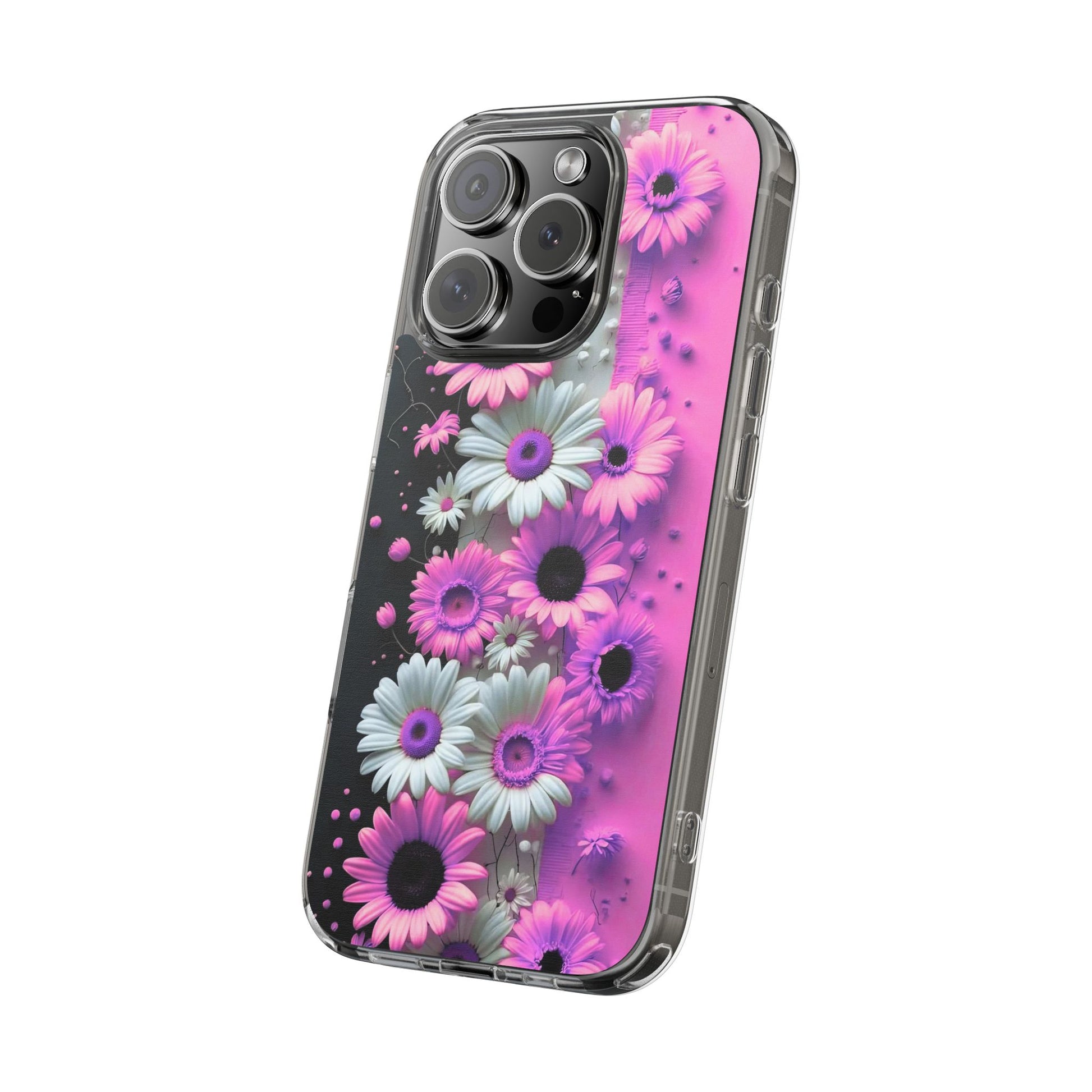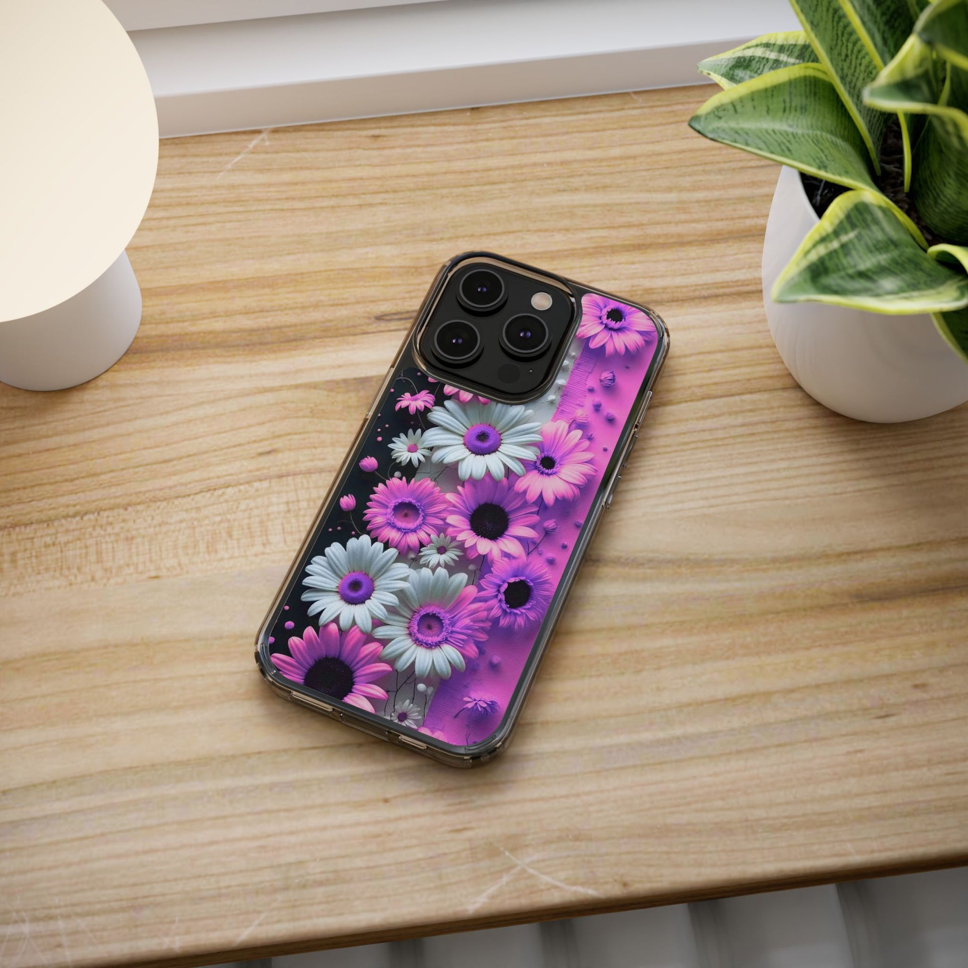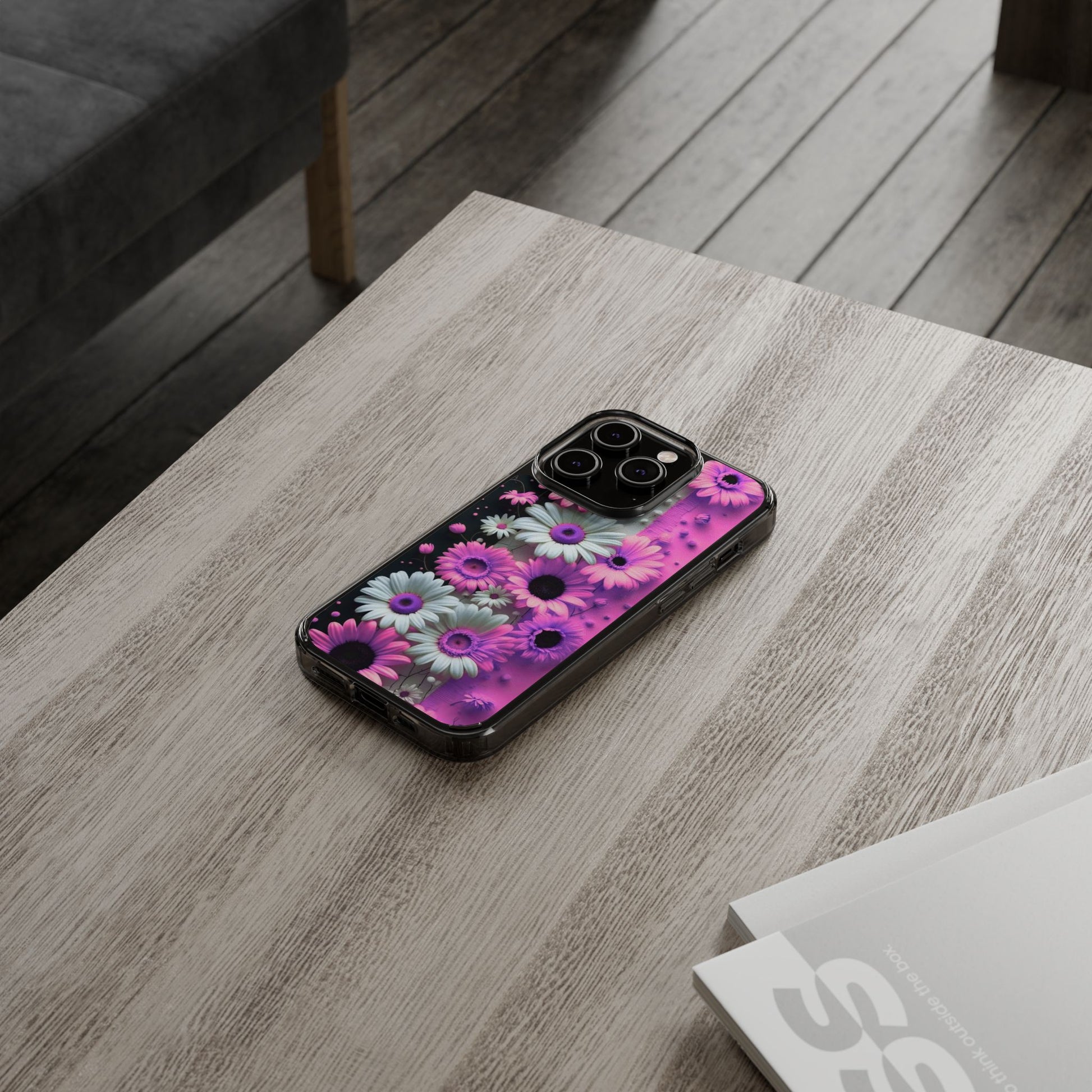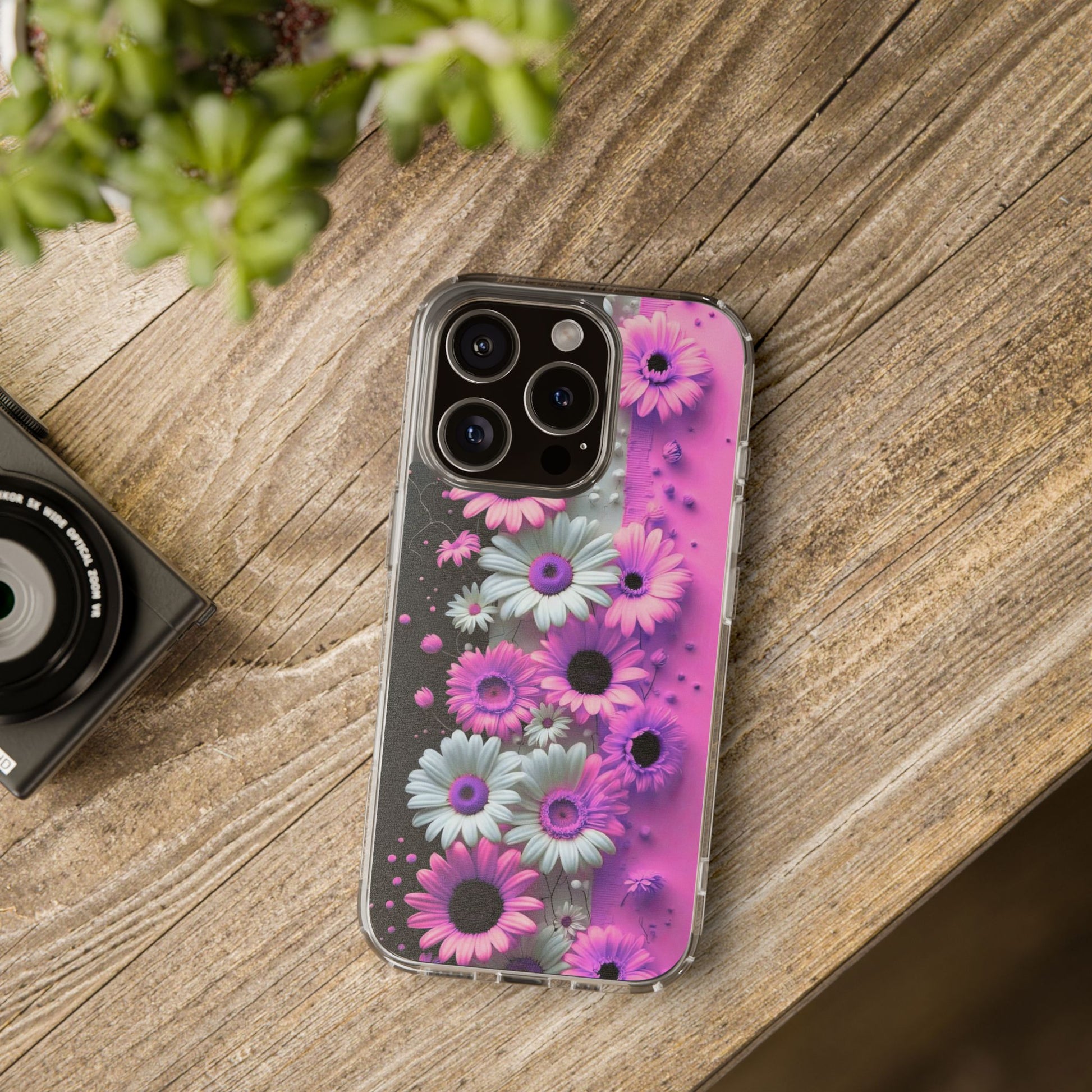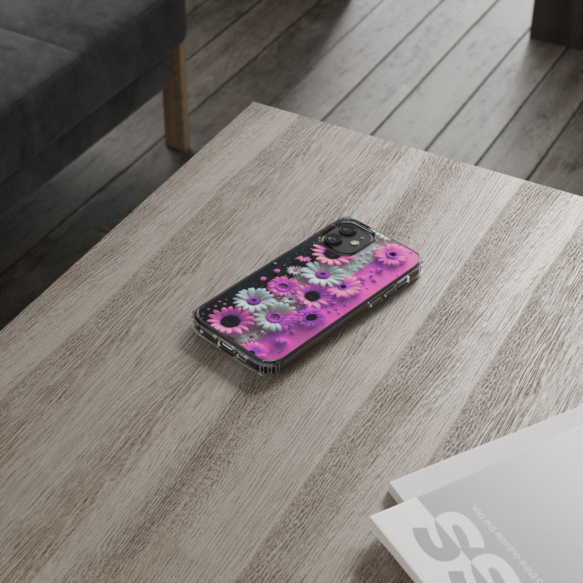 Floral Clear Phone Case for iPhone Models – Pink Flower Design, Aesthetic Spring Style Accessory for Women. This phone case provides vibrant colors and a photo-realistic print quality, making it a stylish and durable accessory for your phone. Perfect for women looking to add a touch of spring to their daily tech accessories. Ideal for gifting on birthdays, Mother's Day, and other special occasions.