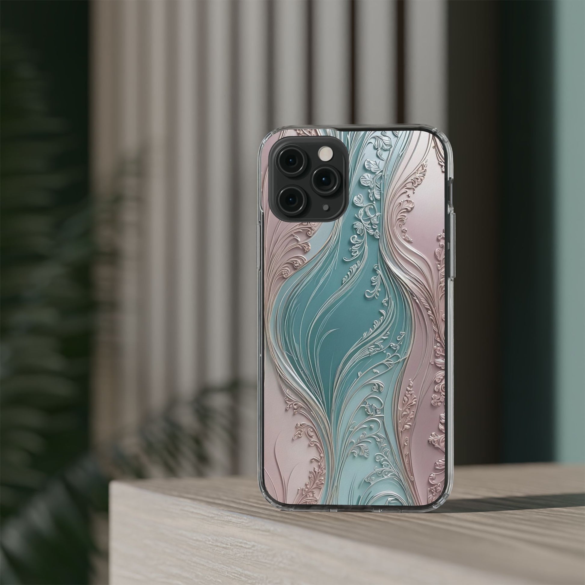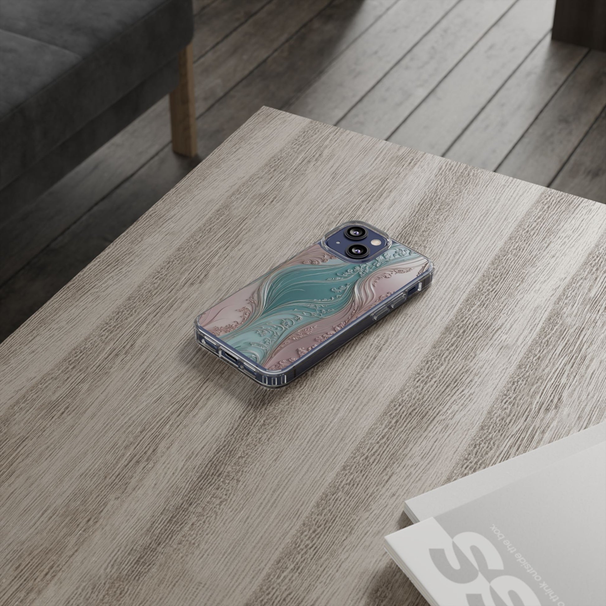 Elegant clear phone cases with an abstract design, providing a sleek and modern look. Perfect for those who appreciate minimalist aesthetics and want to show off their unique style. Ideal for tech-savvy individuals who value both protection and design. Relevant for birthdays, holidays, or as a stylish everyday accessory.