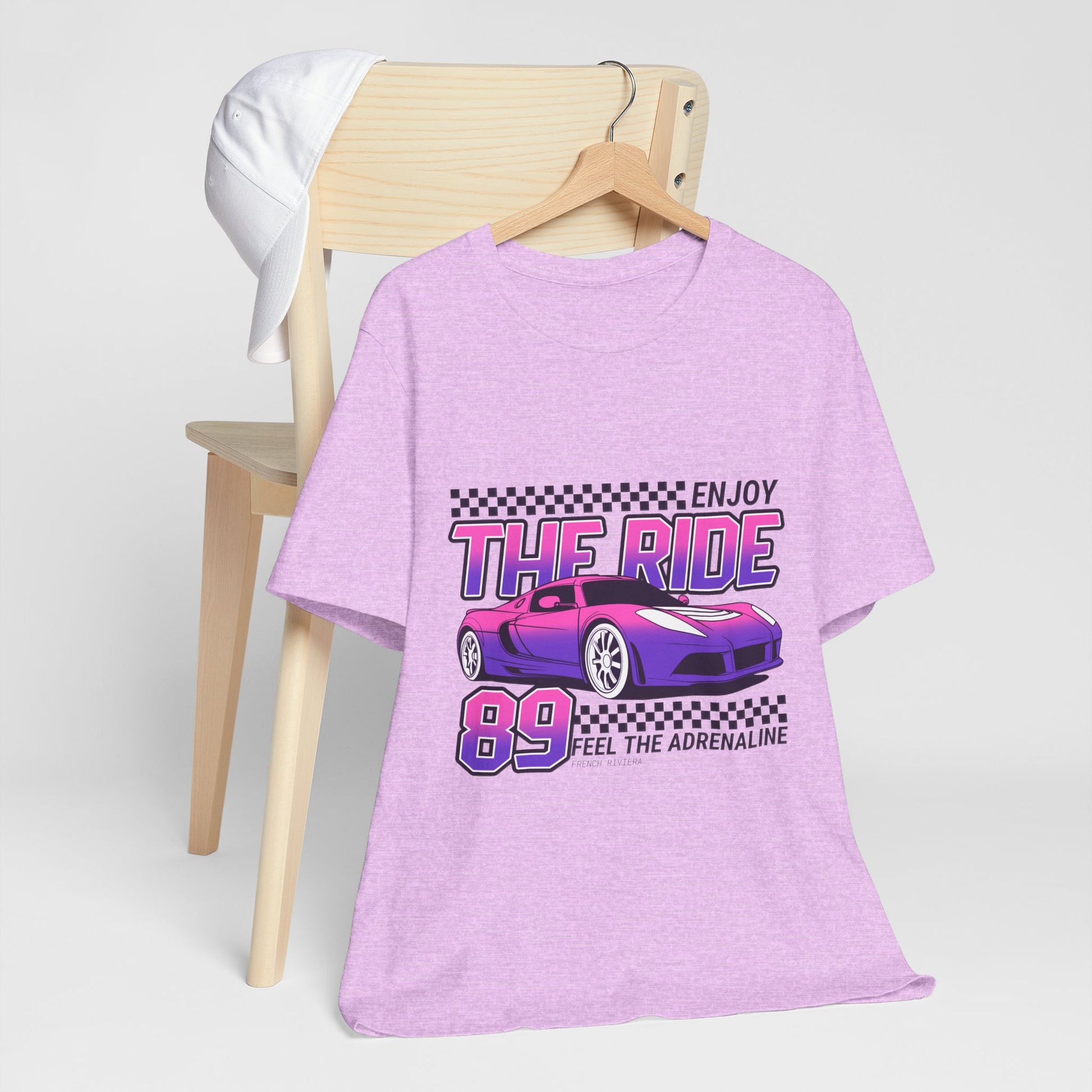 Enjoy The Ride Feel The Adrenaline Tee that exudes a modern and edgy vibe, perfect for casual outings or social events. Ideal for individuals who appreciate unique designs and want to stand out. Perfect for gifting on birthdays, holidays, or special occasions.