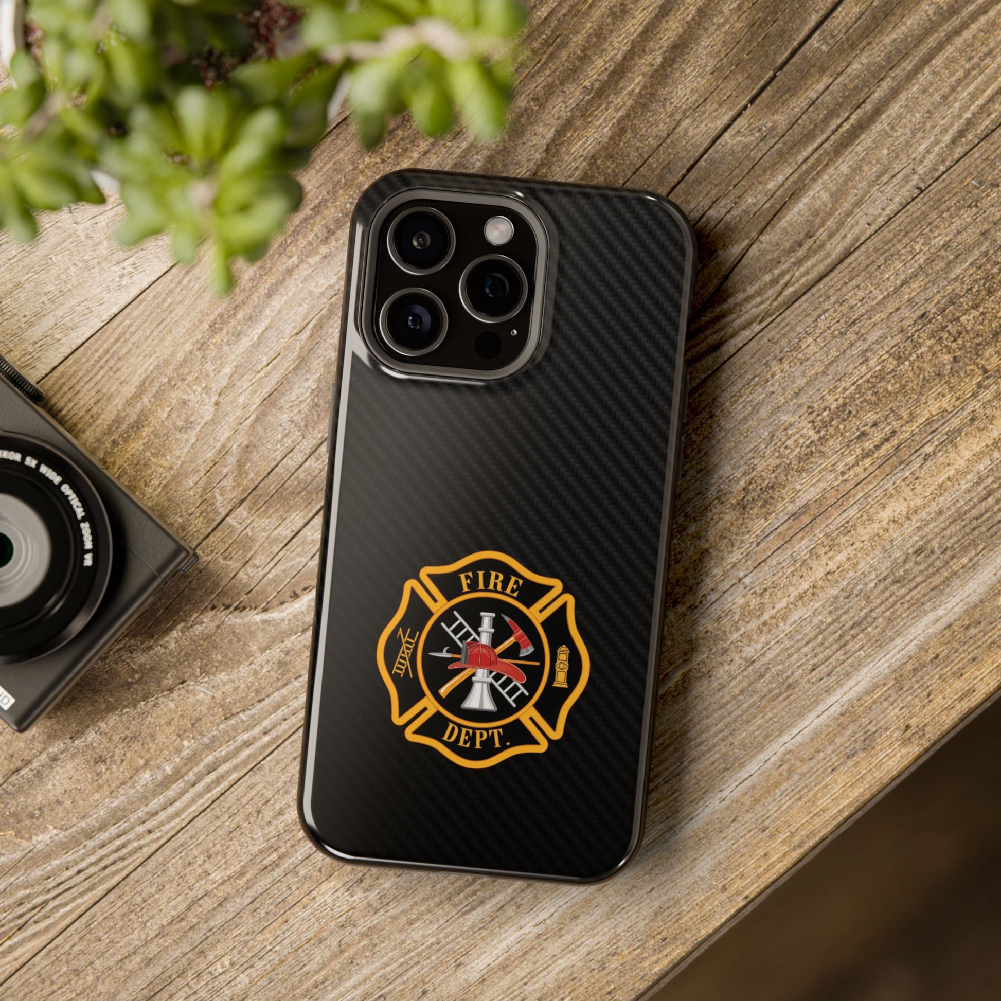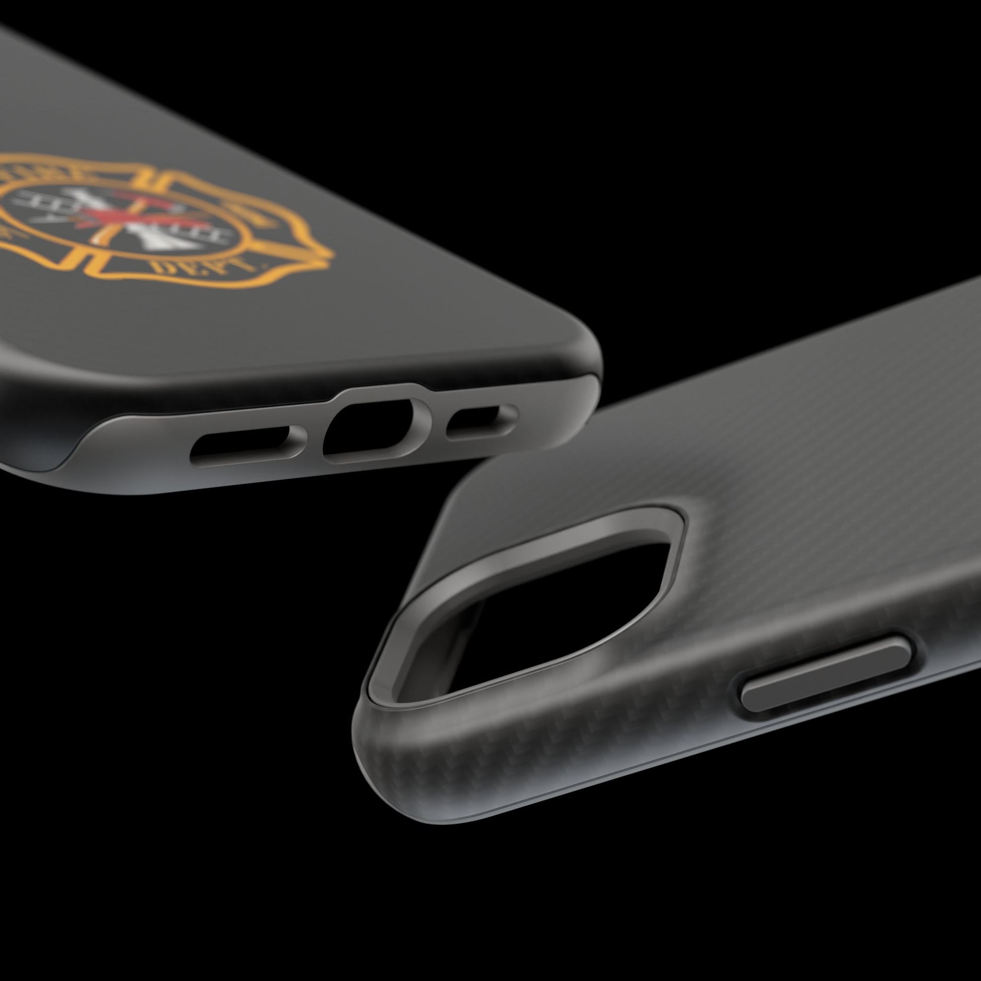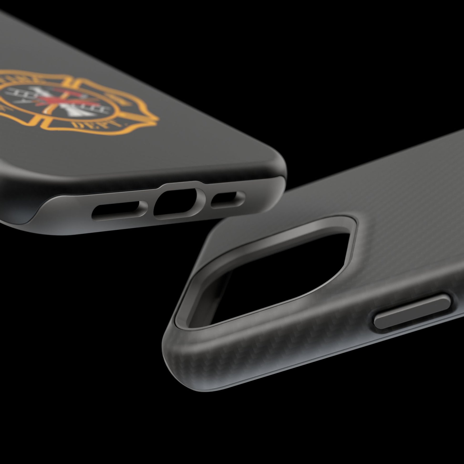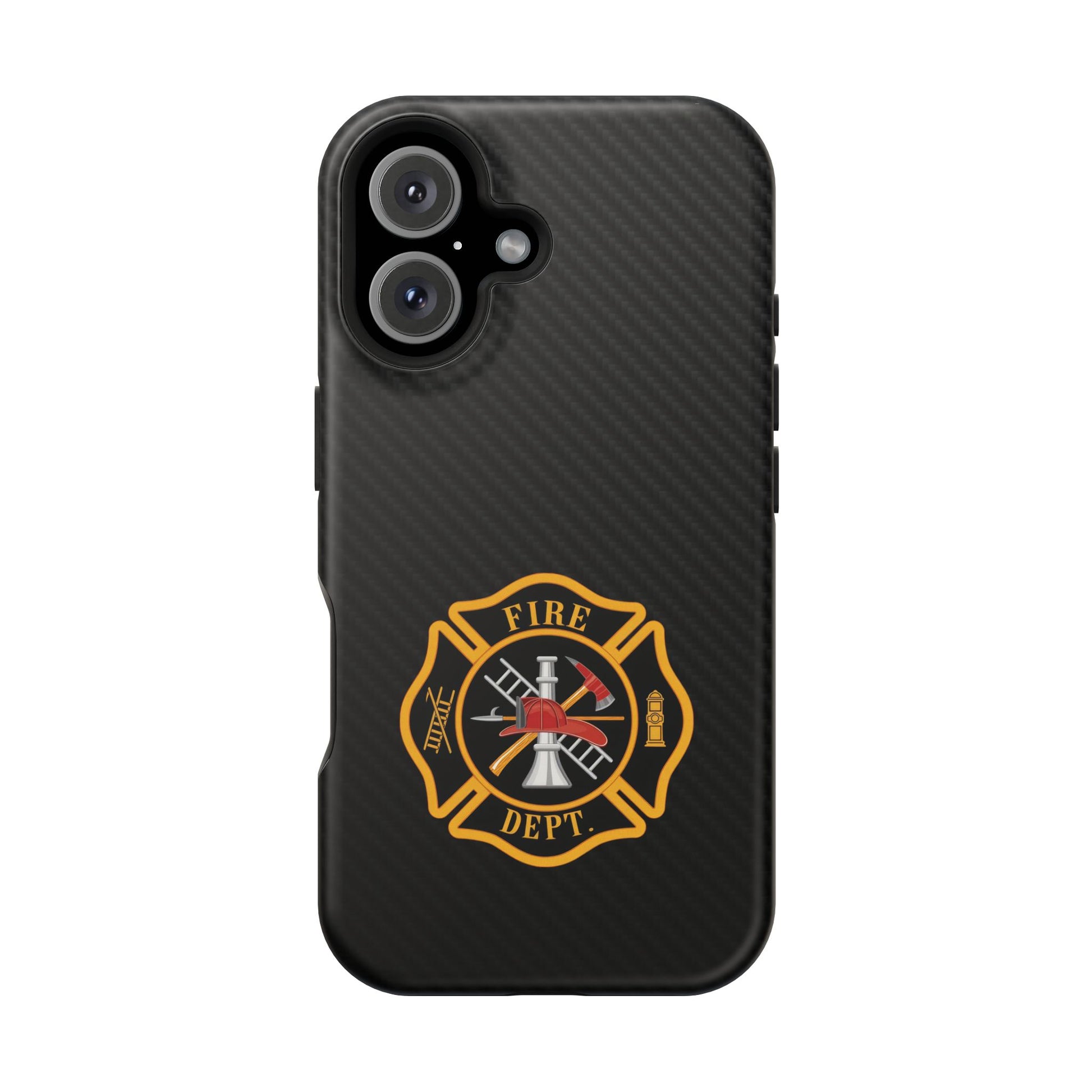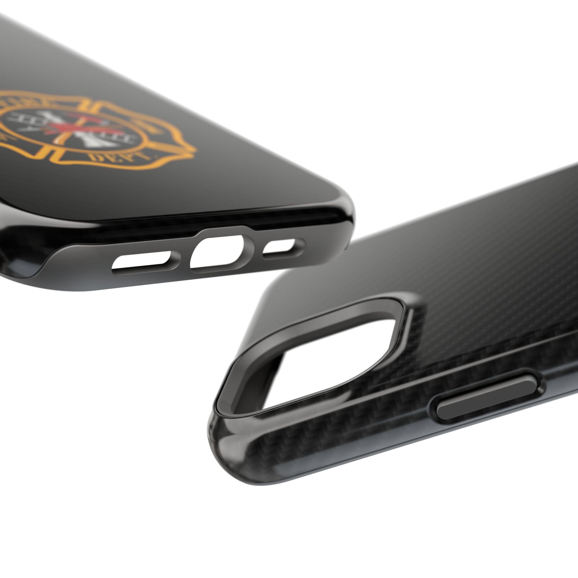 A Fire Department logo Phone Case featuring vibrant colors and a durable polycarbonate plastic construction. Designed for those who support or work in the fire department, this Phone Case is perfect for showing off your pride in a stylish way. Ideal for firefighters, fire department staff, and supporters. Relevant for Fire Prevention Week, International Firefighters' Day, and other fire department-themed occasions.