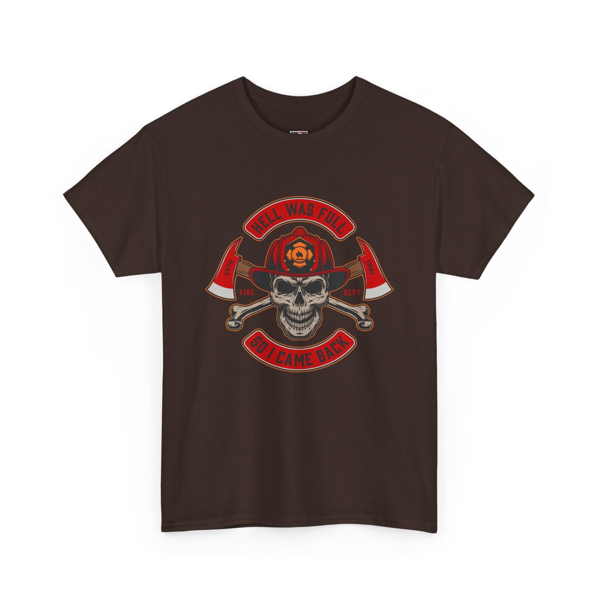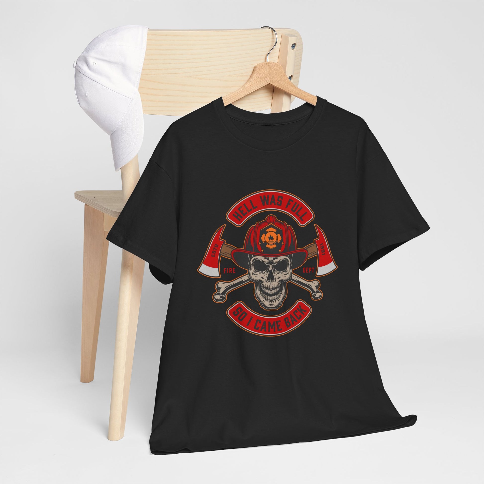 Show your fearless spirit with this firefighter-inspired tee featuring the bold and humorous 'Hell Was Full So I Came Back' design. Perfect for casual wear, firefighter events, or as a standout statement piece, it's an excellent gift for firefighters, first responders, or anyone who values bravery and strength. Made from soft, durable fabric for all-day comfort and style.
