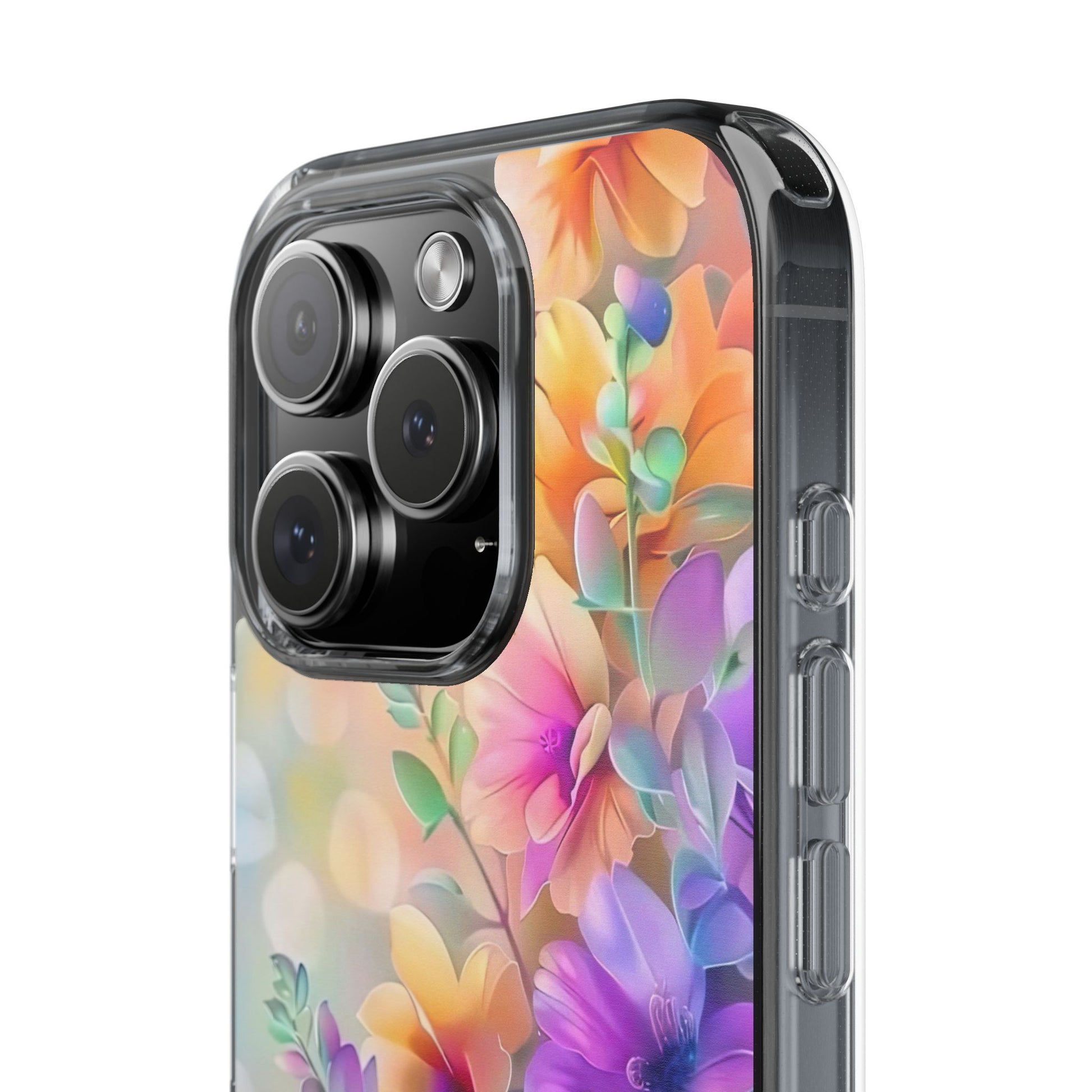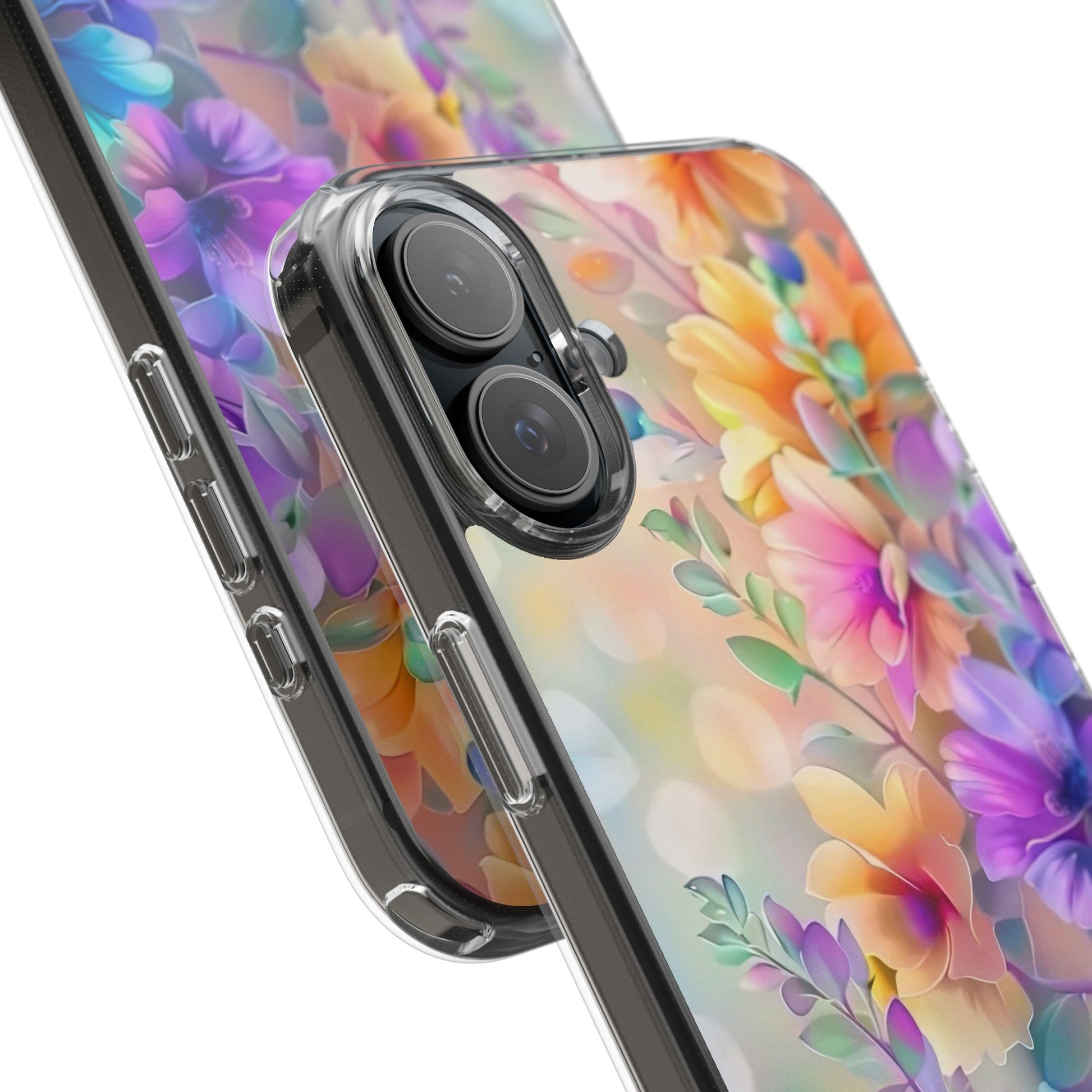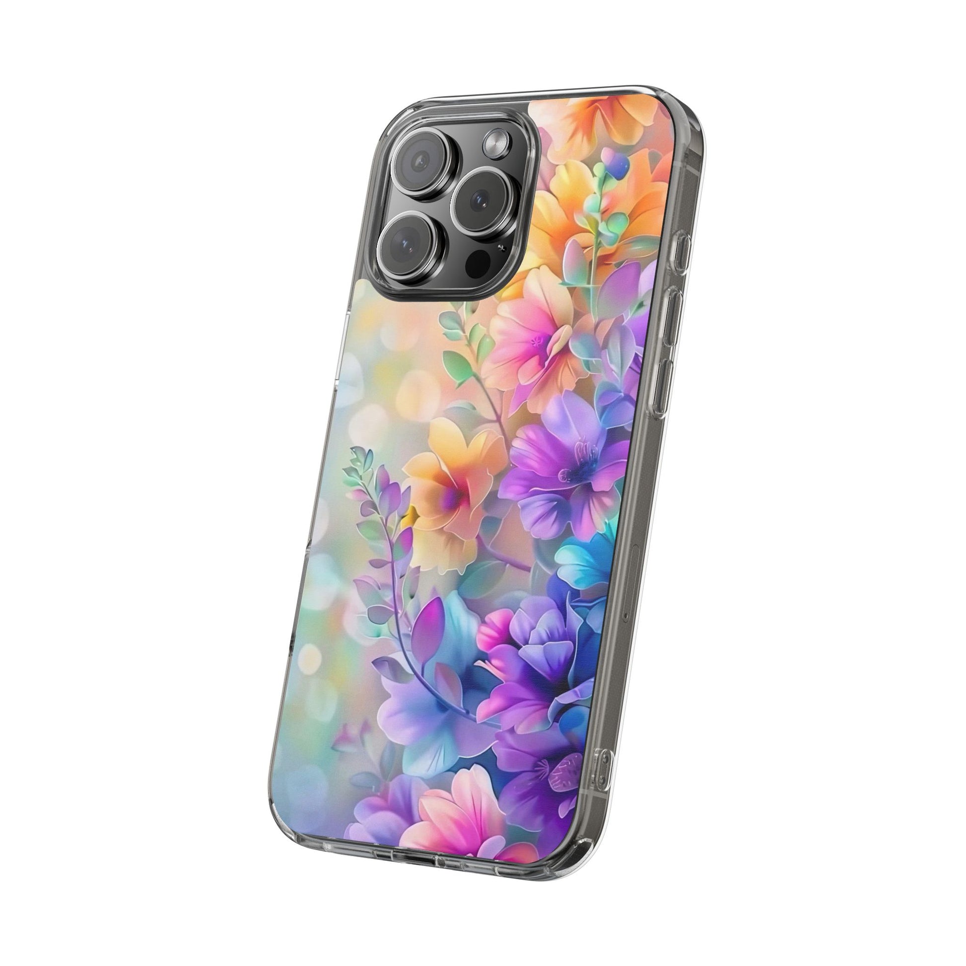 Vibrant Floral Clear Phone Case for iPhone Models - Add a touch of spring to your phone with this colorful and stylish accessory. Perfect for those who love floral designs and want to protect their phone in style. Ideal for springtime, Easter, Mother's Day, or just to add a pop of color to your everyday life.