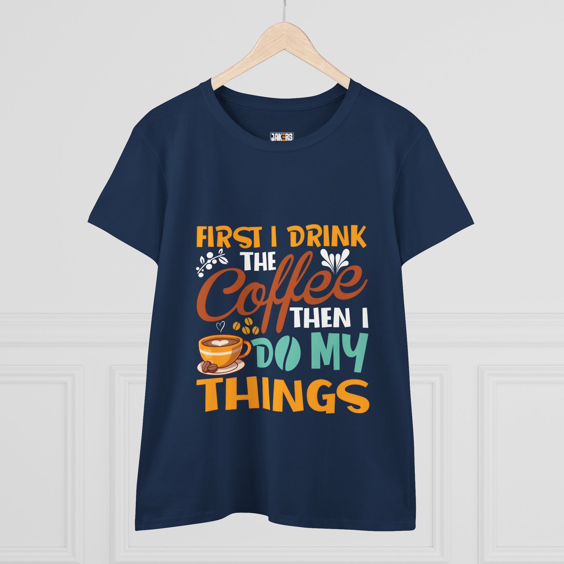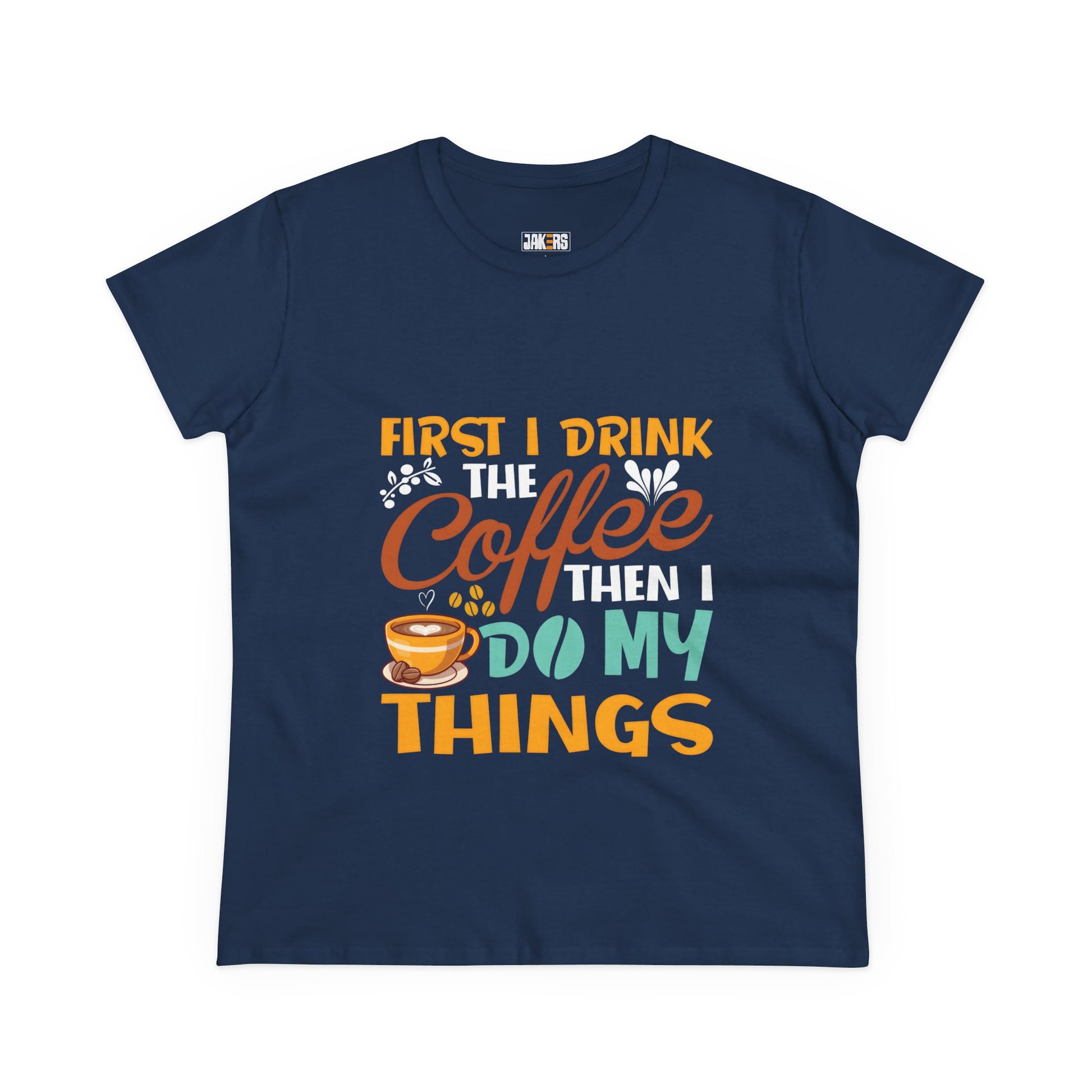 Kickstart your day with a dose of humor and caffeine in the Funny Coffee Lover Women's Tee! Featuring the playful slogan "First I Drink Coffee, Then I Do My Things," this tee is perfect for anyone who knows that coffee comes first. Made from soft, breathable cotton, it offers a comfy, relaxed fit that's ideal for mornings at home, coffee runs, or casual outings. Whether you're a coffee enthusiast or just love a good laugh, this shirt is a must-have for your wardrobe—and a great gift for your favorite caffeine addict!
