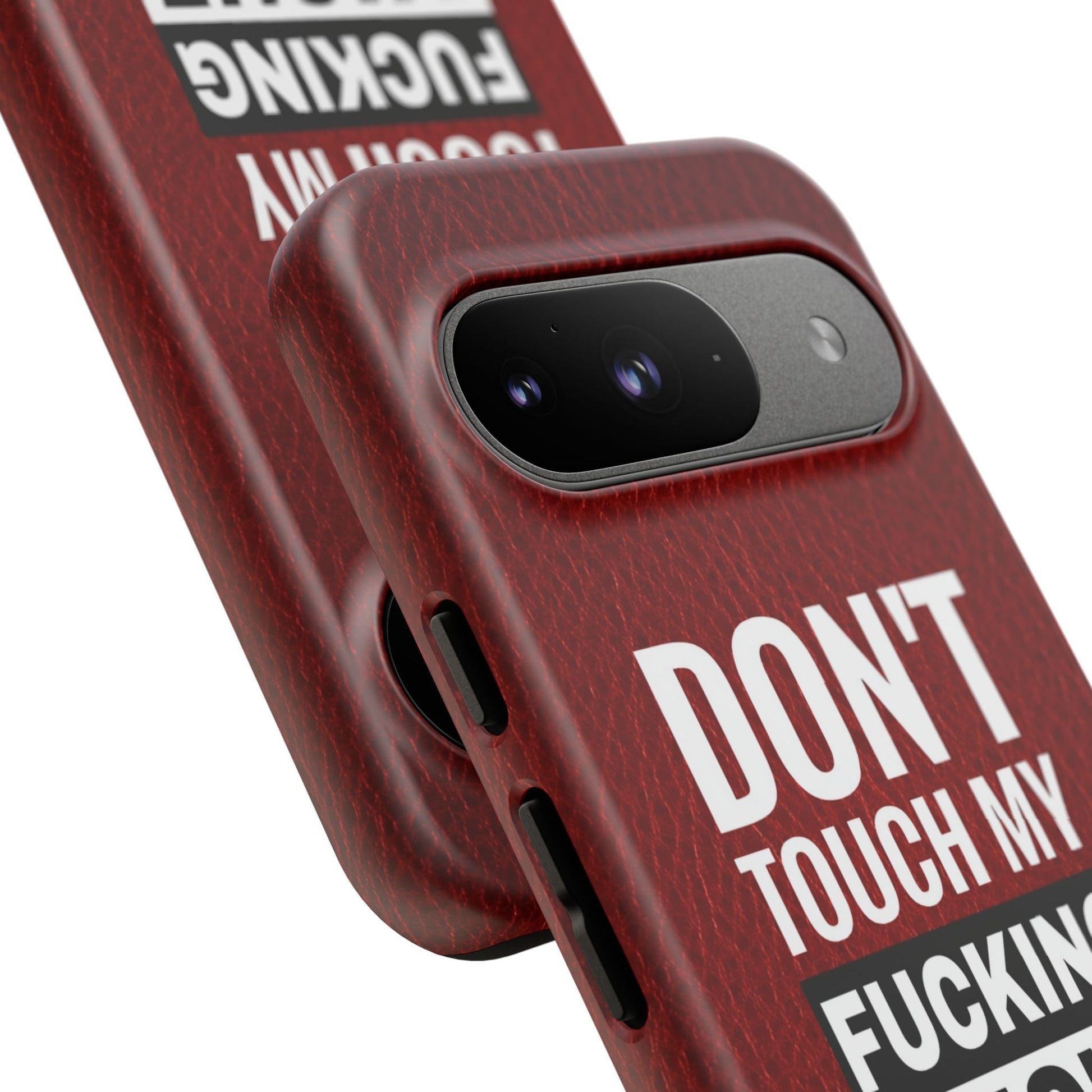 Add a humorous touch to your device with this playful "Don't Touch My Phone" phone case. Made with durable, impact-resistant materials, it provides top-notch protection against drops and scratches while giving off a bold, fun vibe. Perfect for those who want to keep their phone safe and let everyone know it!