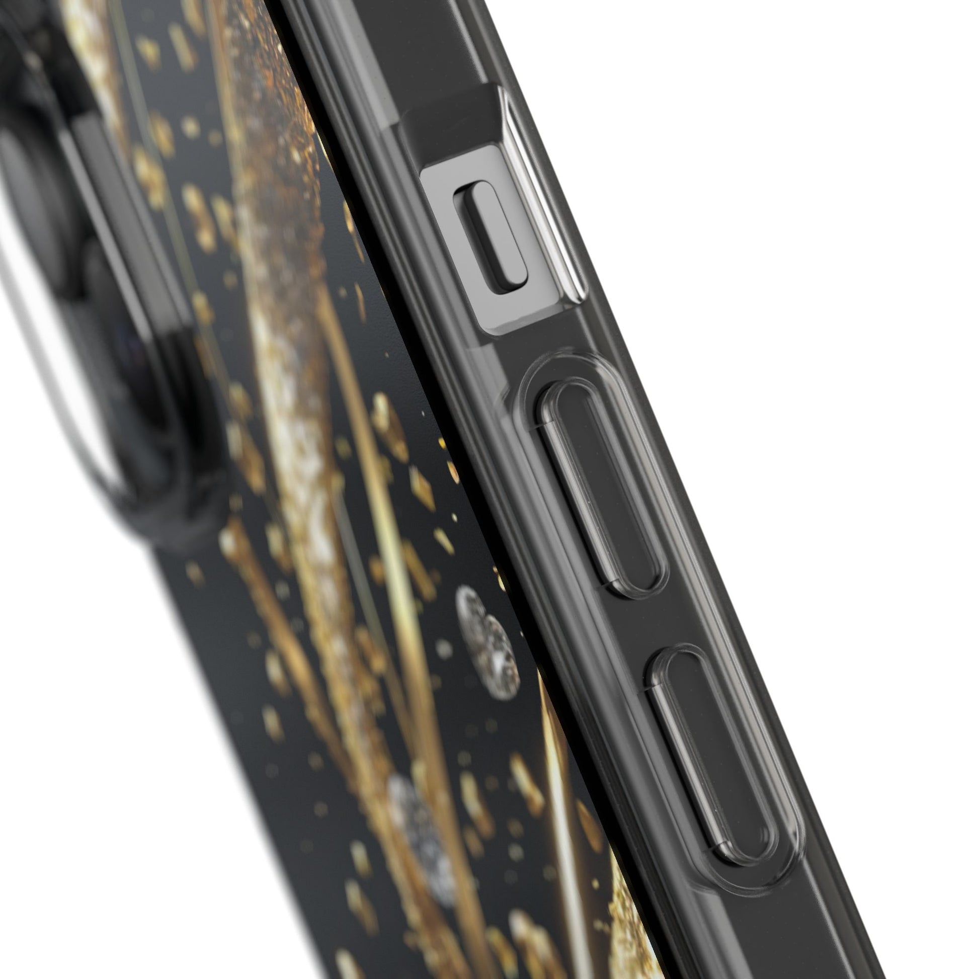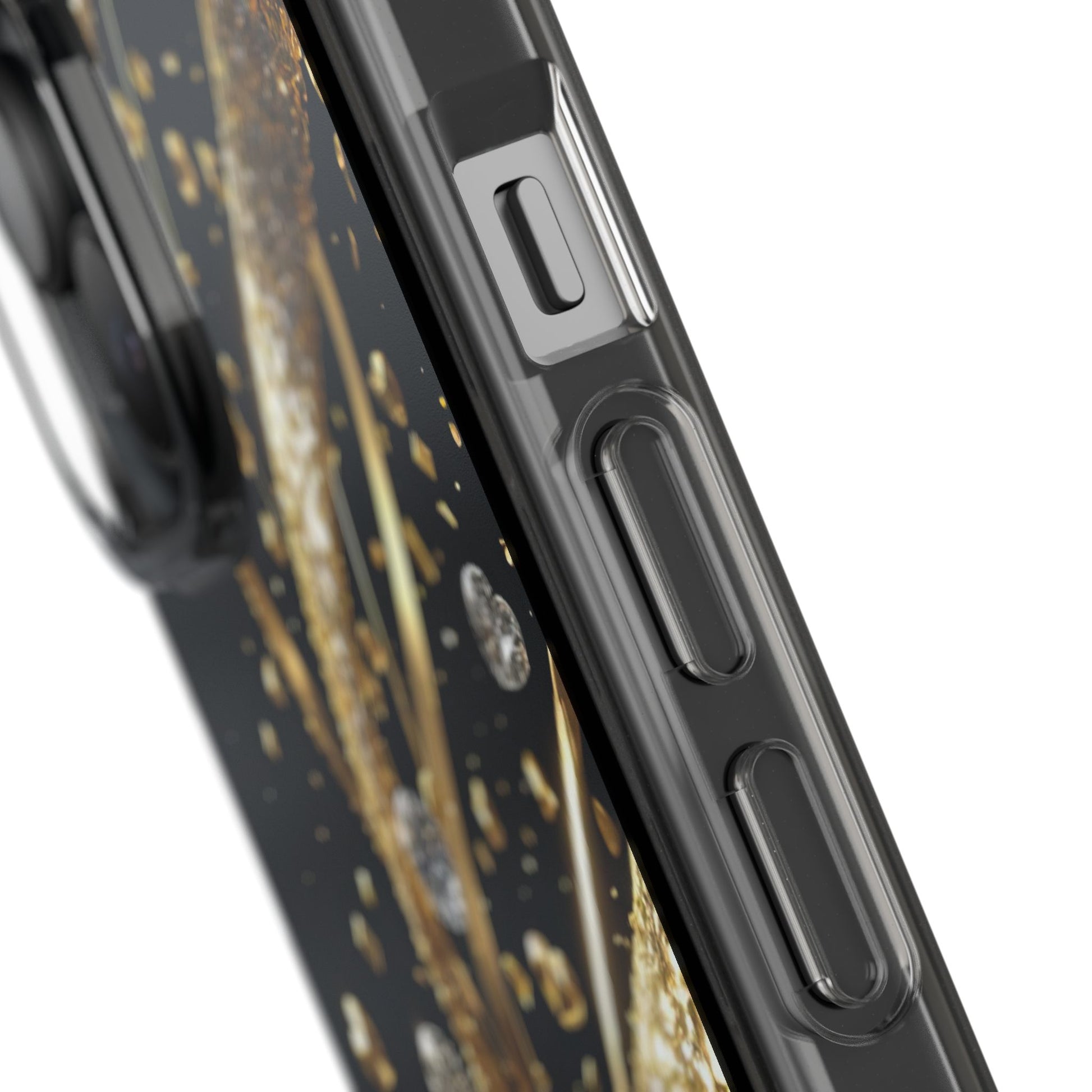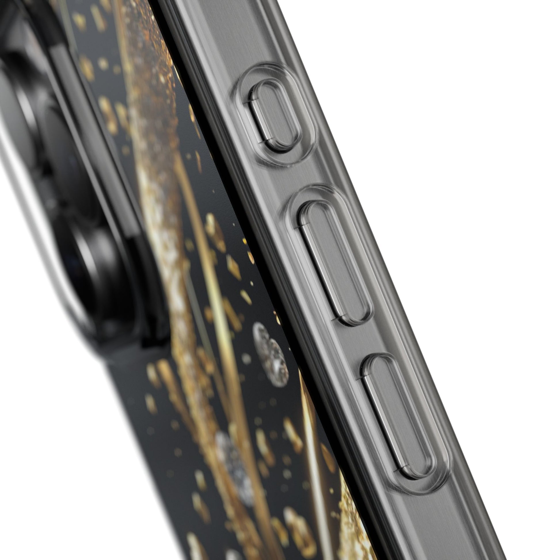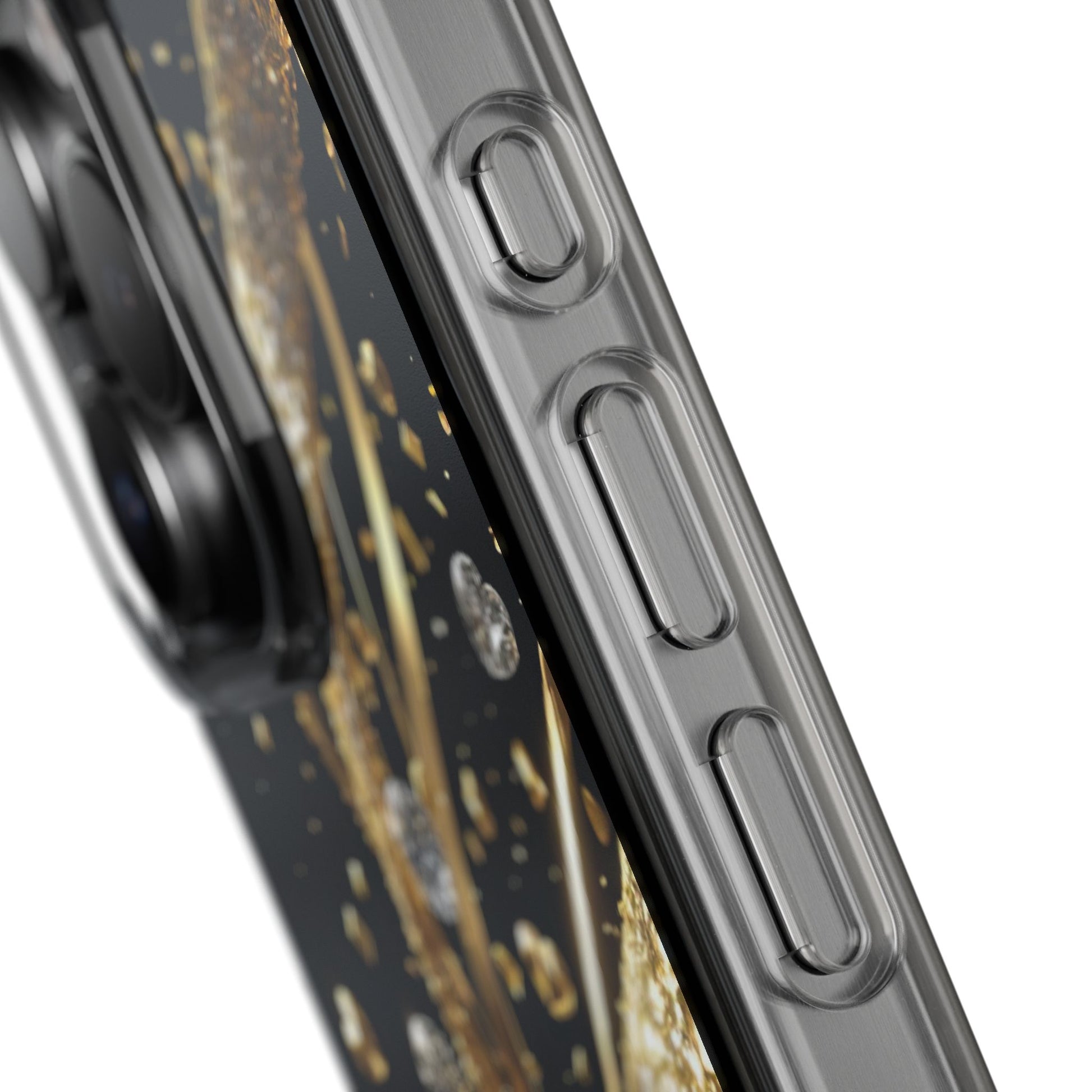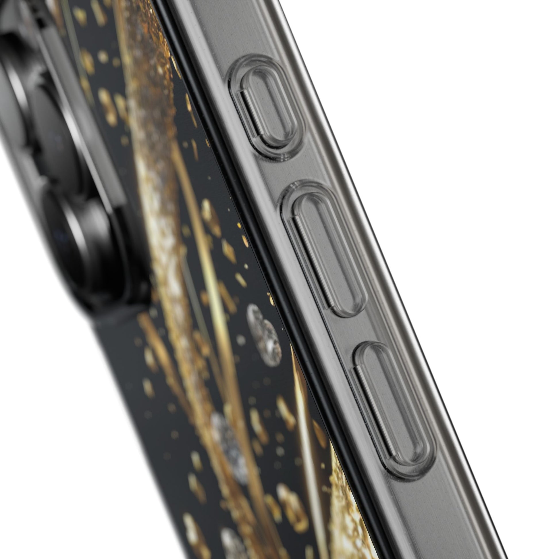 Gleaming Heart Clear Case, Elegant Gold Glitter, Sparkling Design