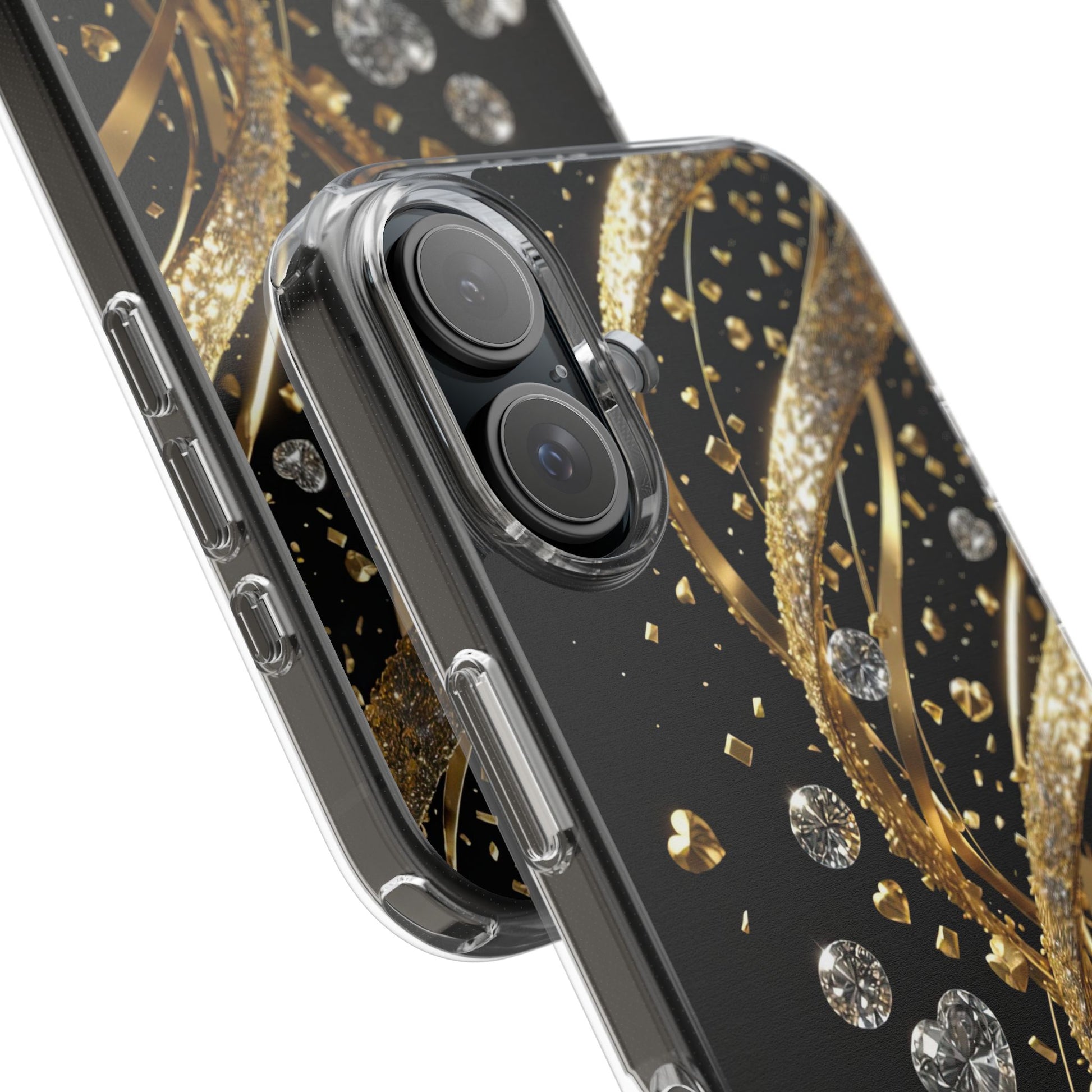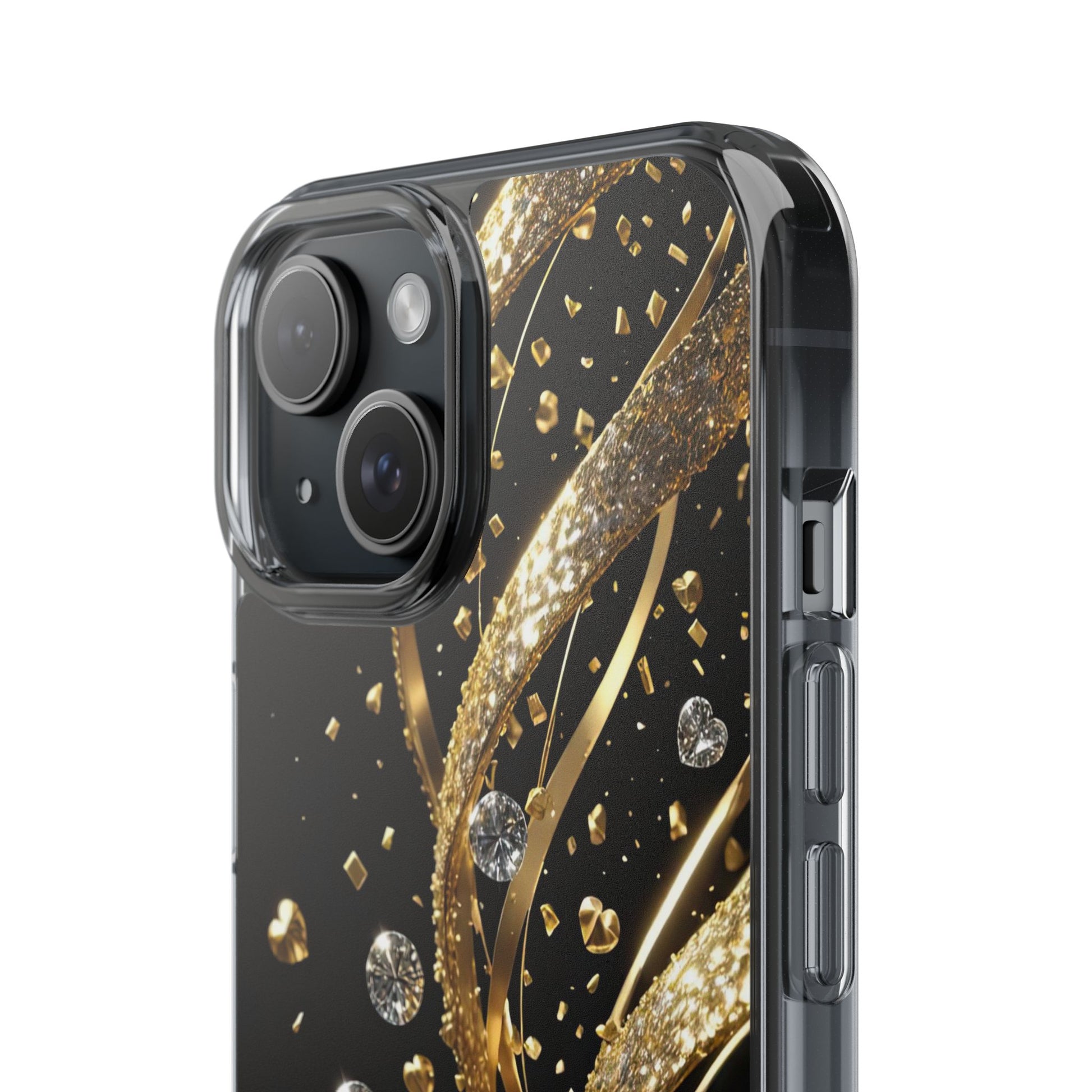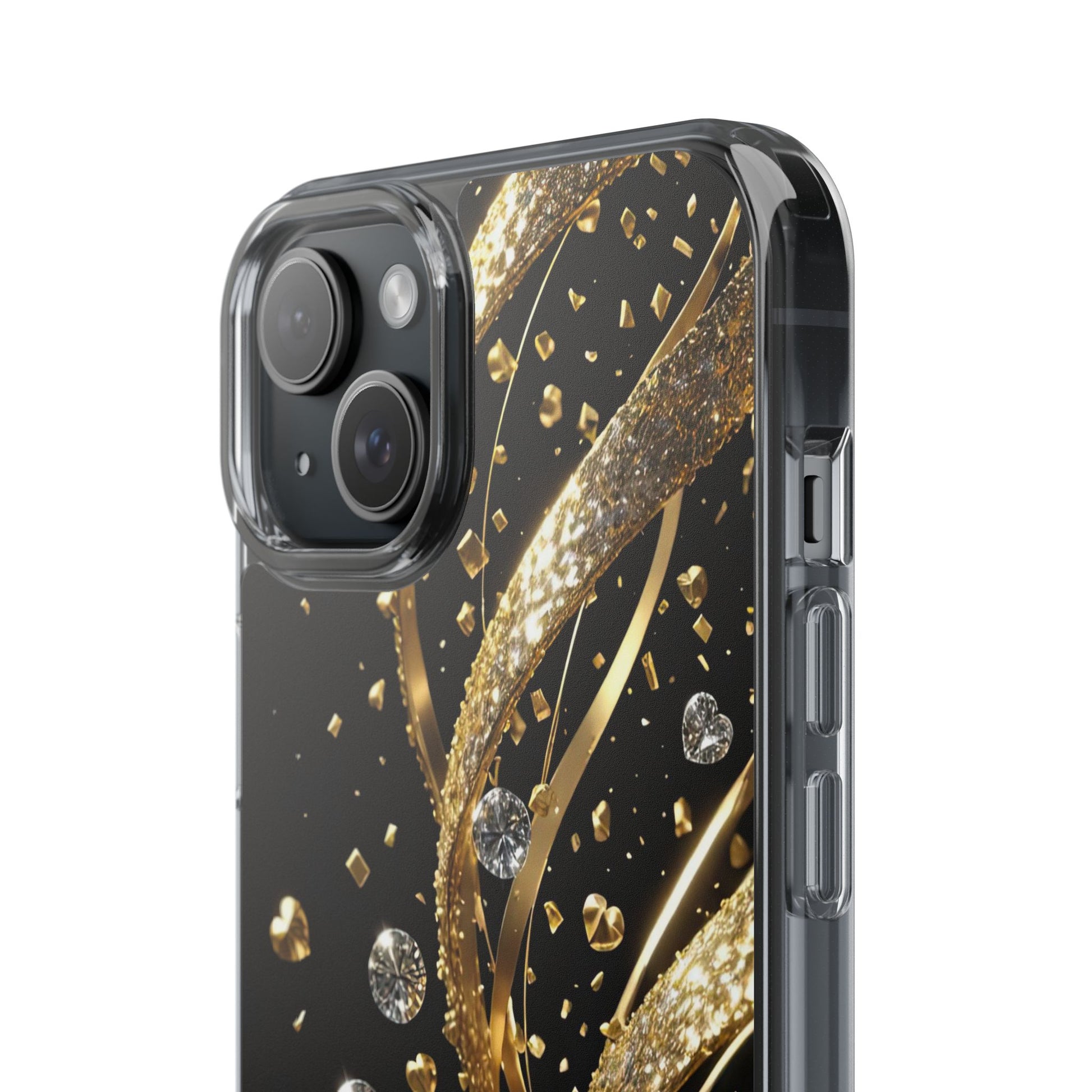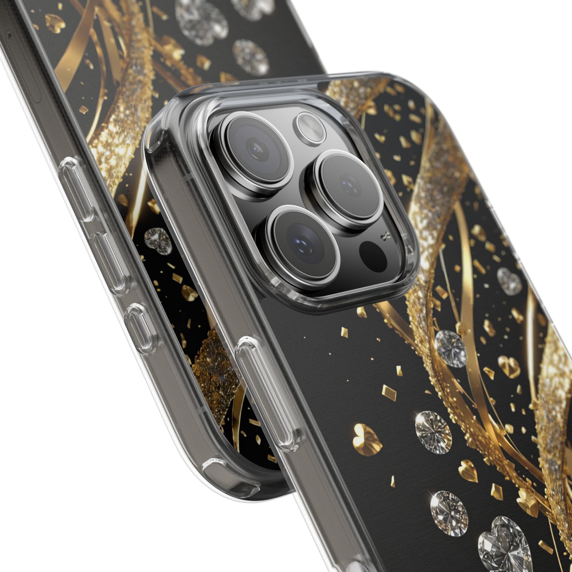 Shine bright with the Gleaming Heart Clear Case, designed to bring elegance and charm to your iPhone. Featuring a beautiful gold glitter heart design, this case combines stylish aesthetics with dependable everyday protection. Crafted from durable, lightweight materials, it guards against scratches and minor impacts while maintaining a sleek, slim profile. The glittering finish adds a touch of luxury, and the case is fully compatible with wireless charging for modern convenience. Perfect for anyone who loves fashionable, feminine accessories - great as a gift or a statement piece for your own phone.