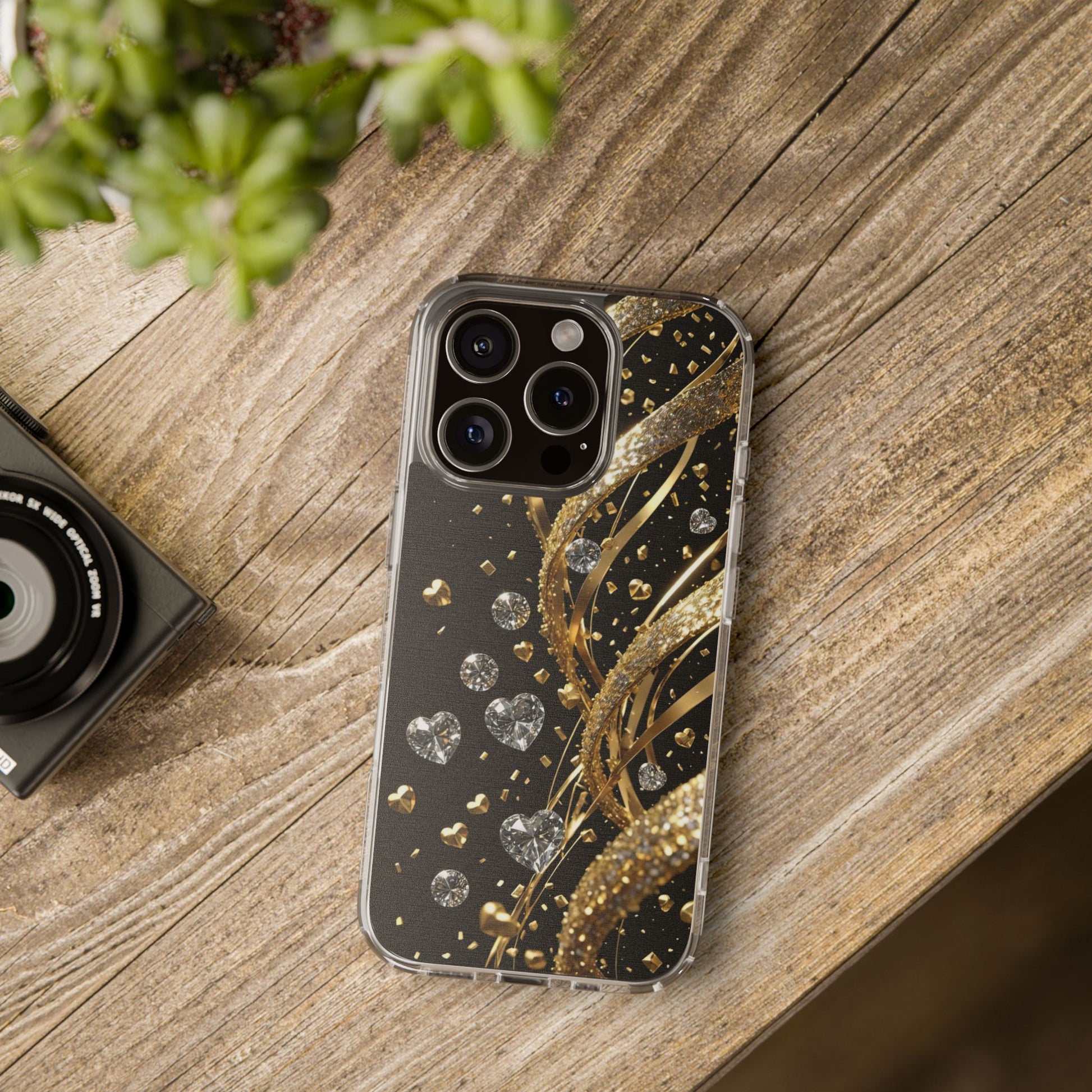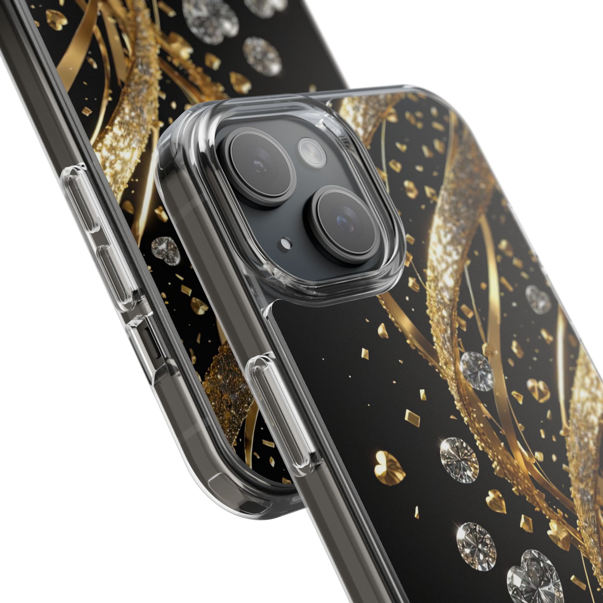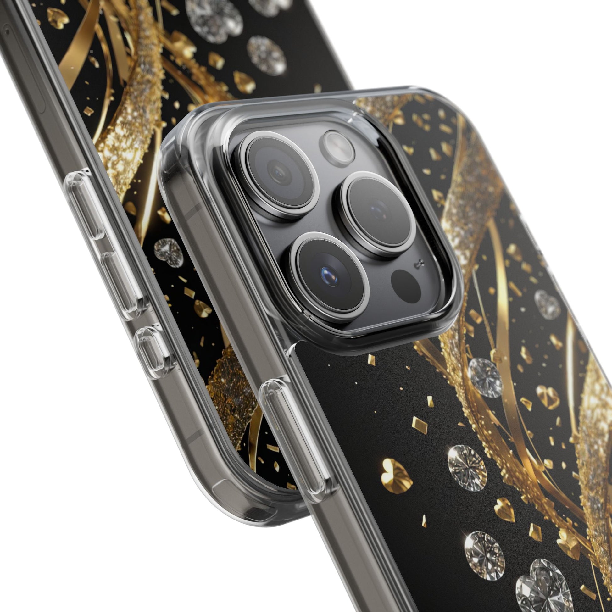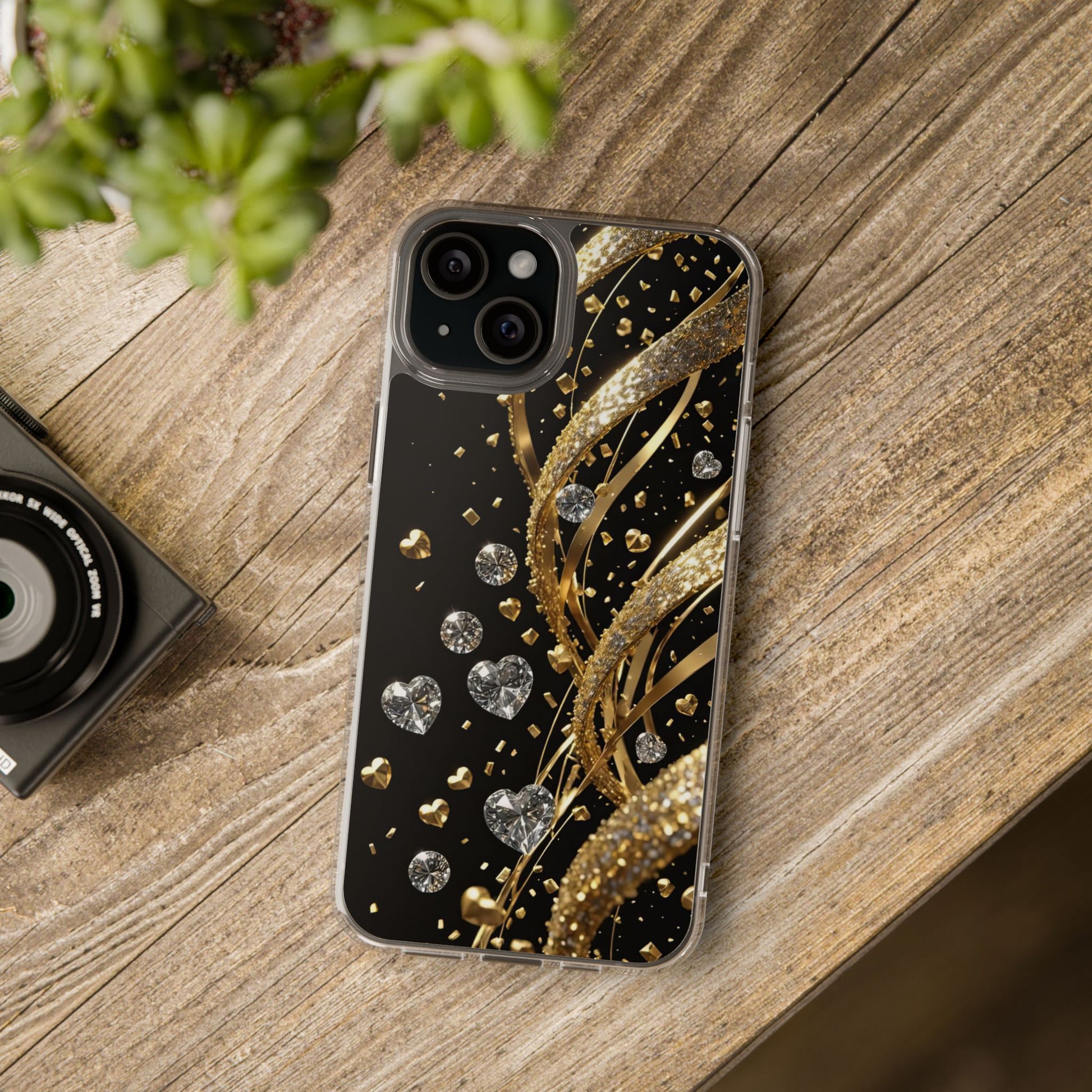 Shine bright with the Gleaming Heart Clear Case, designed to bring elegance and charm to your iPhone. Featuring a beautiful gold glitter heart design, this case combines stylish aesthetics with dependable everyday protection. Crafted from durable, lightweight materials, it guards against scratches and minor impacts while maintaining a sleek, slim profile. The glittering finish adds a touch of luxury, and the case is fully compatible with wireless charging for modern convenience. Perfect for anyone who loves fashionable, feminine accessories - great as a gift or a statement piece for your own phone.