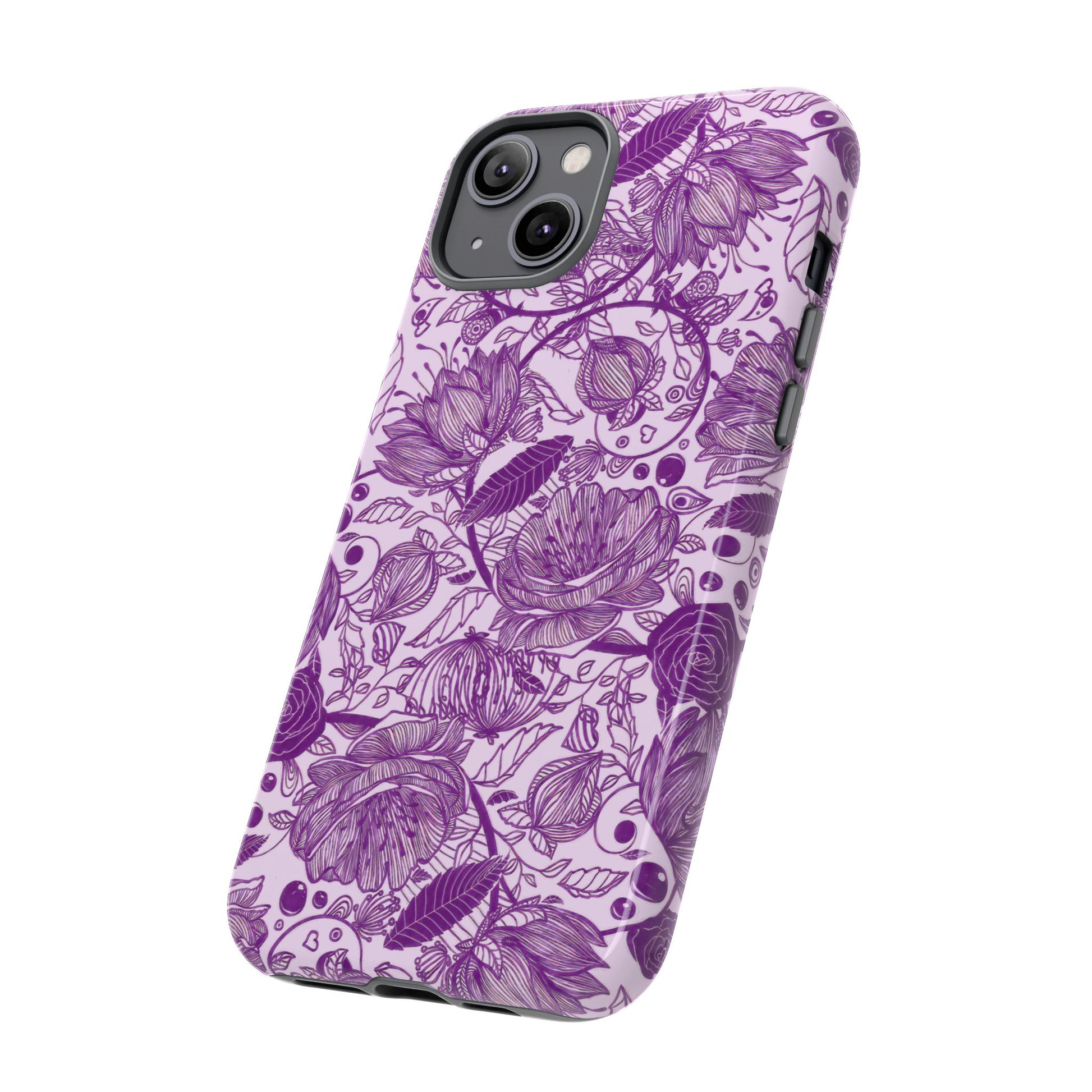 "Graphical Garden: Purple Edition Tough Cases" presents a vibrant collection of phone cases featuring striking purple floral designs and intricate patterns. Each case combines artistic visuals with robust protection, ensuring your device stays safe while making a bold statement. The unique graphics celebrate nature’s beauty, perfect for those who love to express their style through eye-catching, colorful accessories. Ideal for anyone looking to blend artistry with functionality!