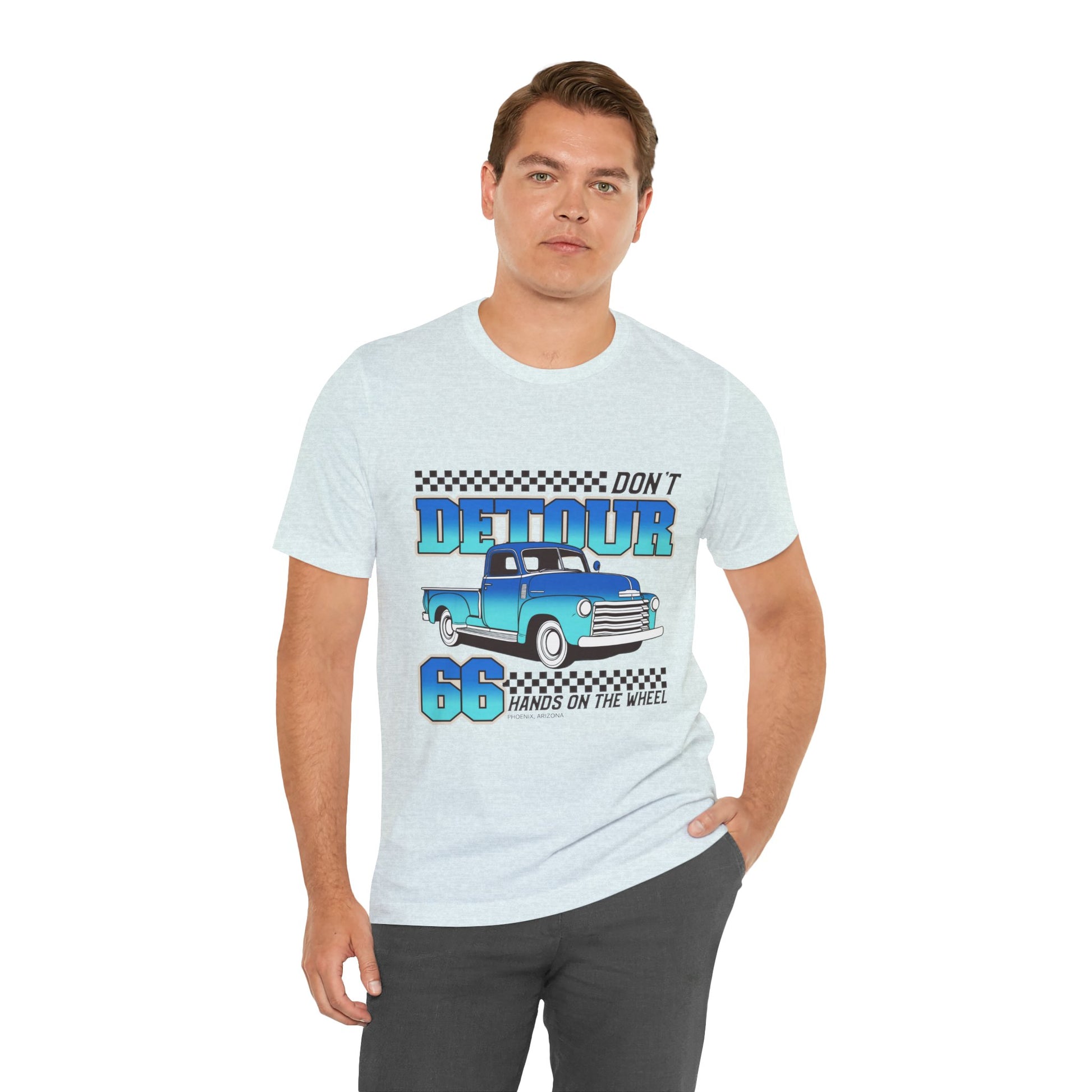 Hands On The Wheel Tee that exudes a modern and edgy vibe, perfect for casual outings or social events. Ideal for individuals who appreciate unique designs and want to stand out. Perfect for gifting on birthdays, holidays, or special occasions.