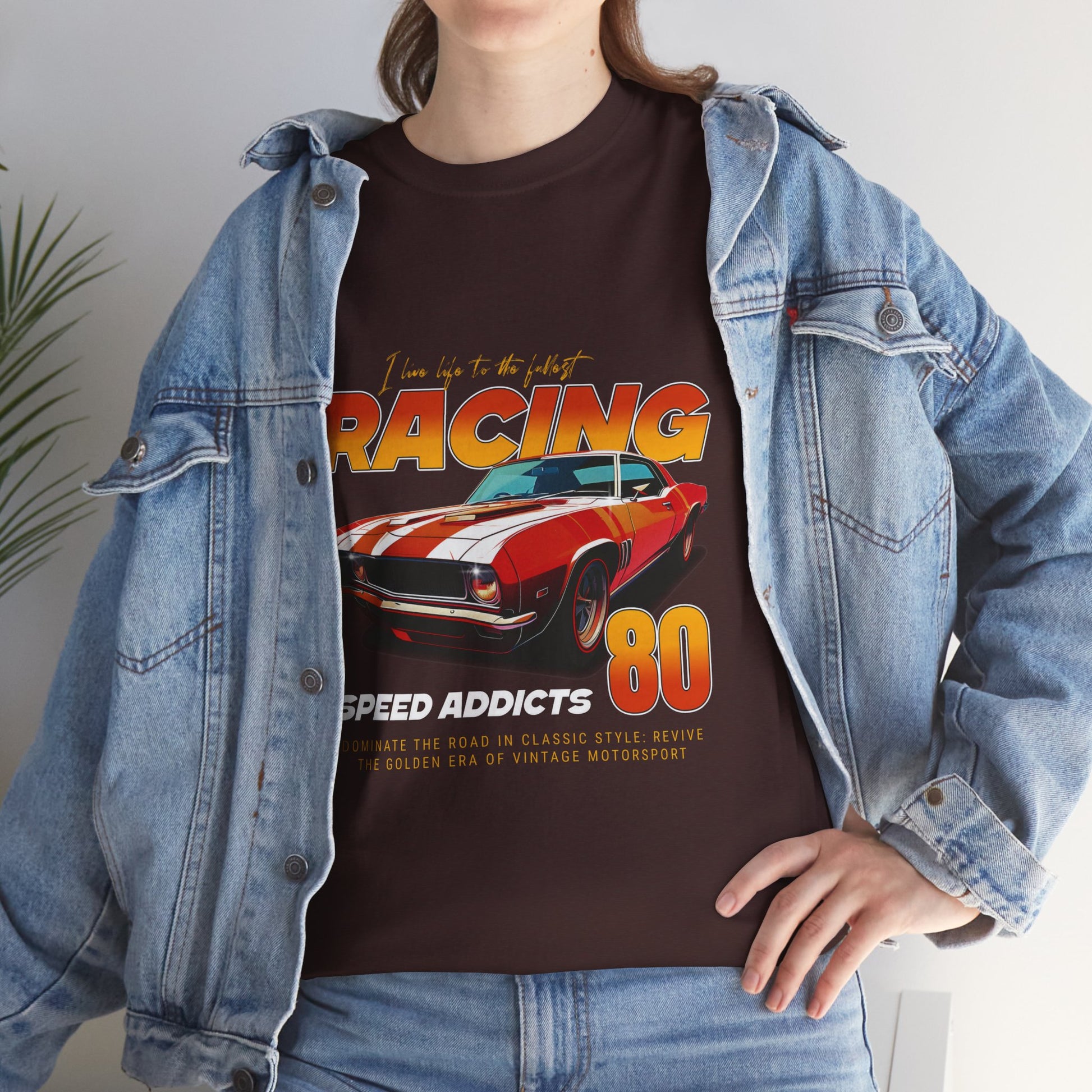 Camiseta de manga corta unisex para adictos a la velocidad que vivo la vida al máximo