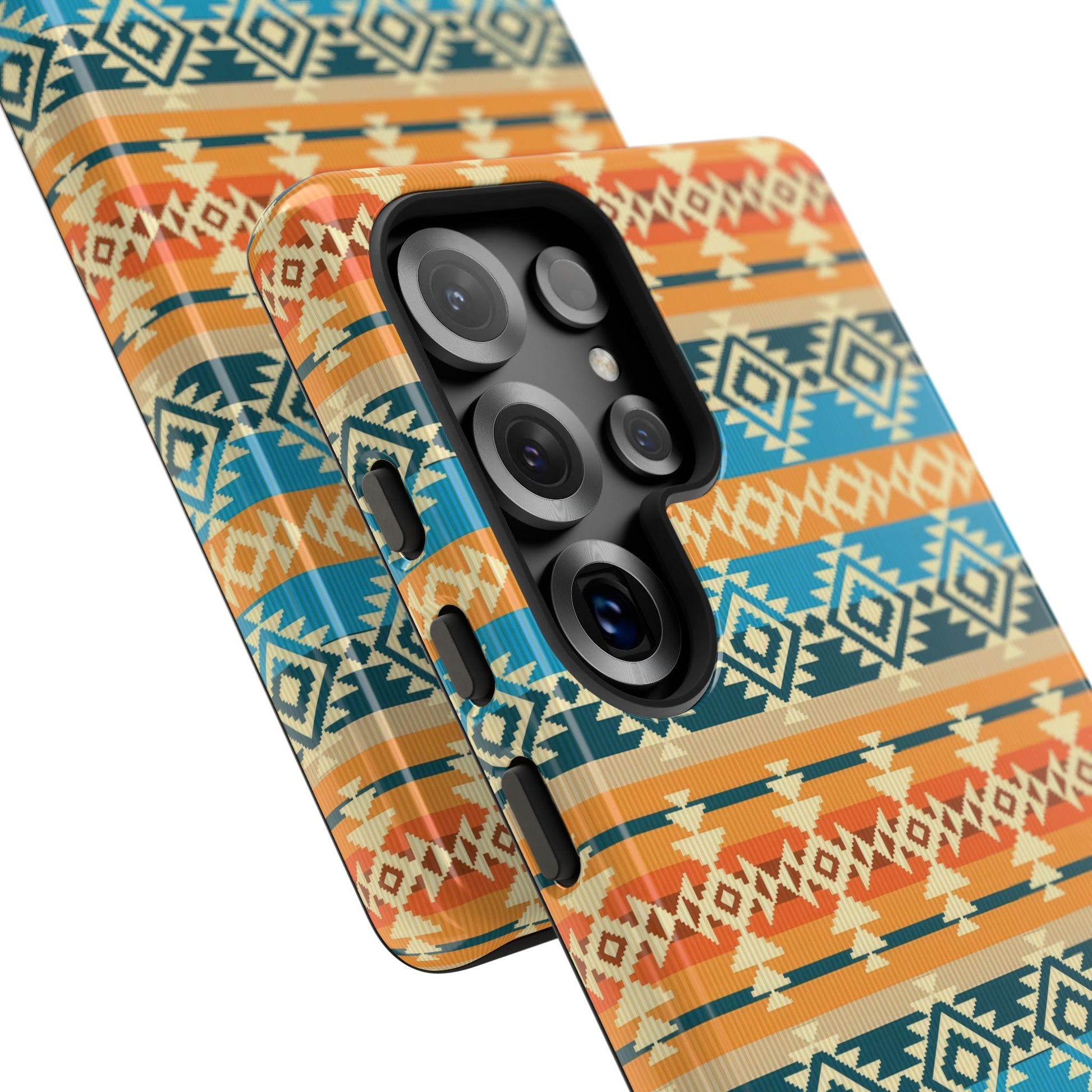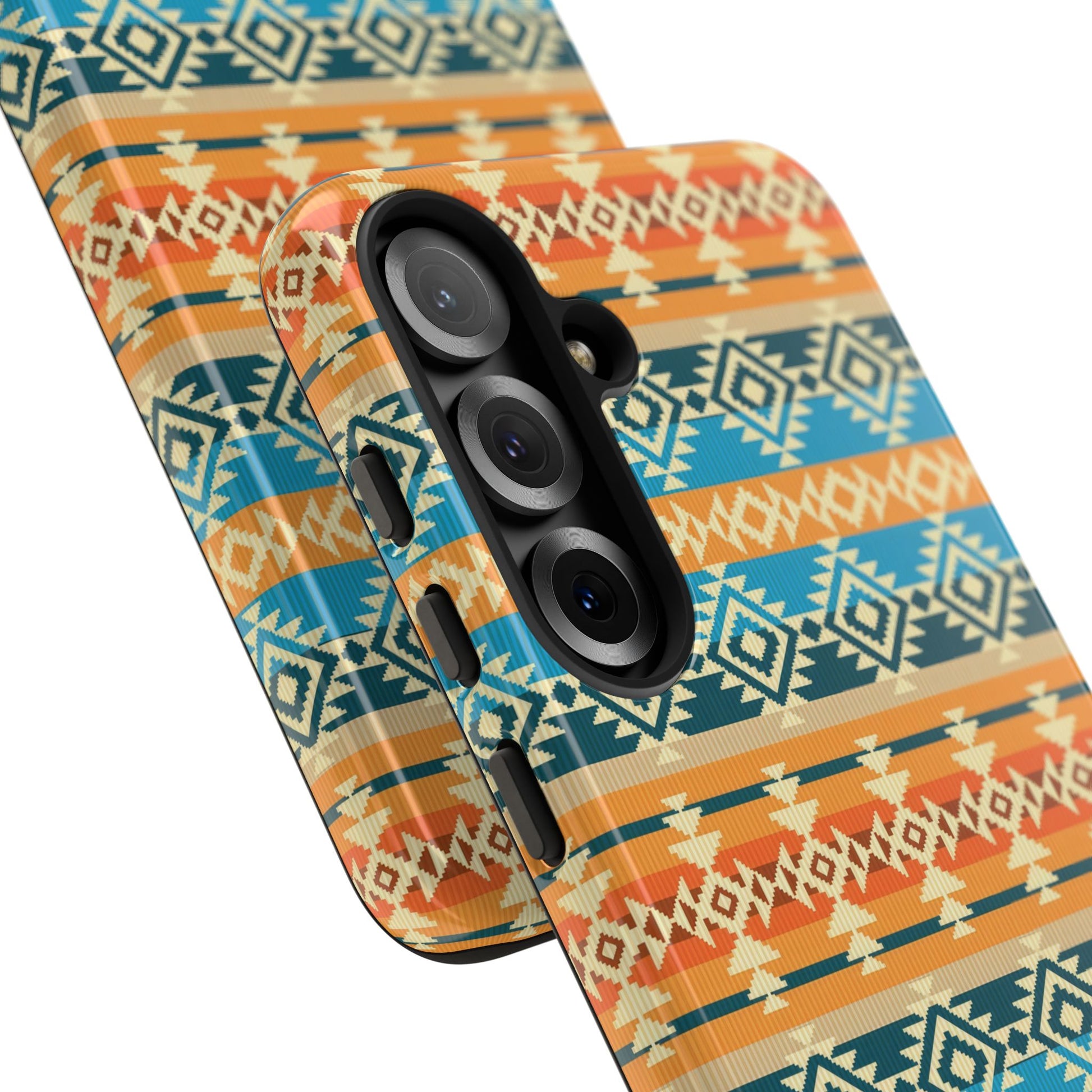 Indian Summer Impact-Resistant Case is a durable and flexible phone case with a glossy or matte surface that features vibrant colors and a full-wrap print. It provides protection against scratches and minor bumps while supporting wireless charging. Perfect for those looking to add a pop of color and style to their phone while keeping it safe.