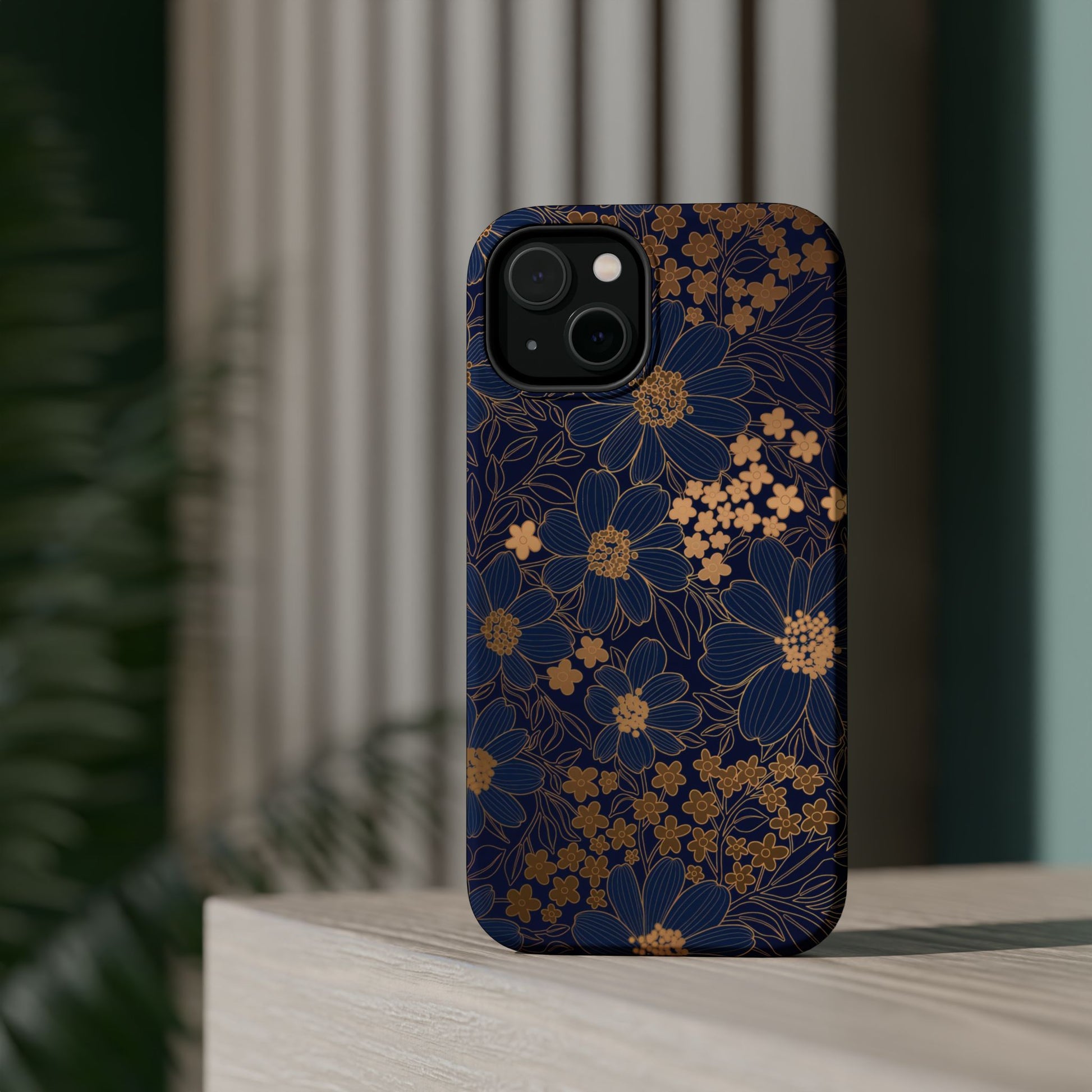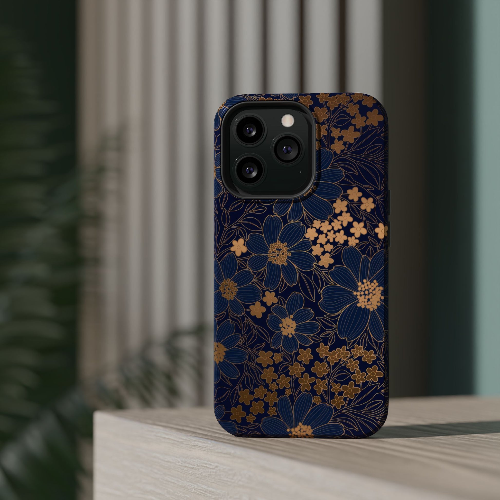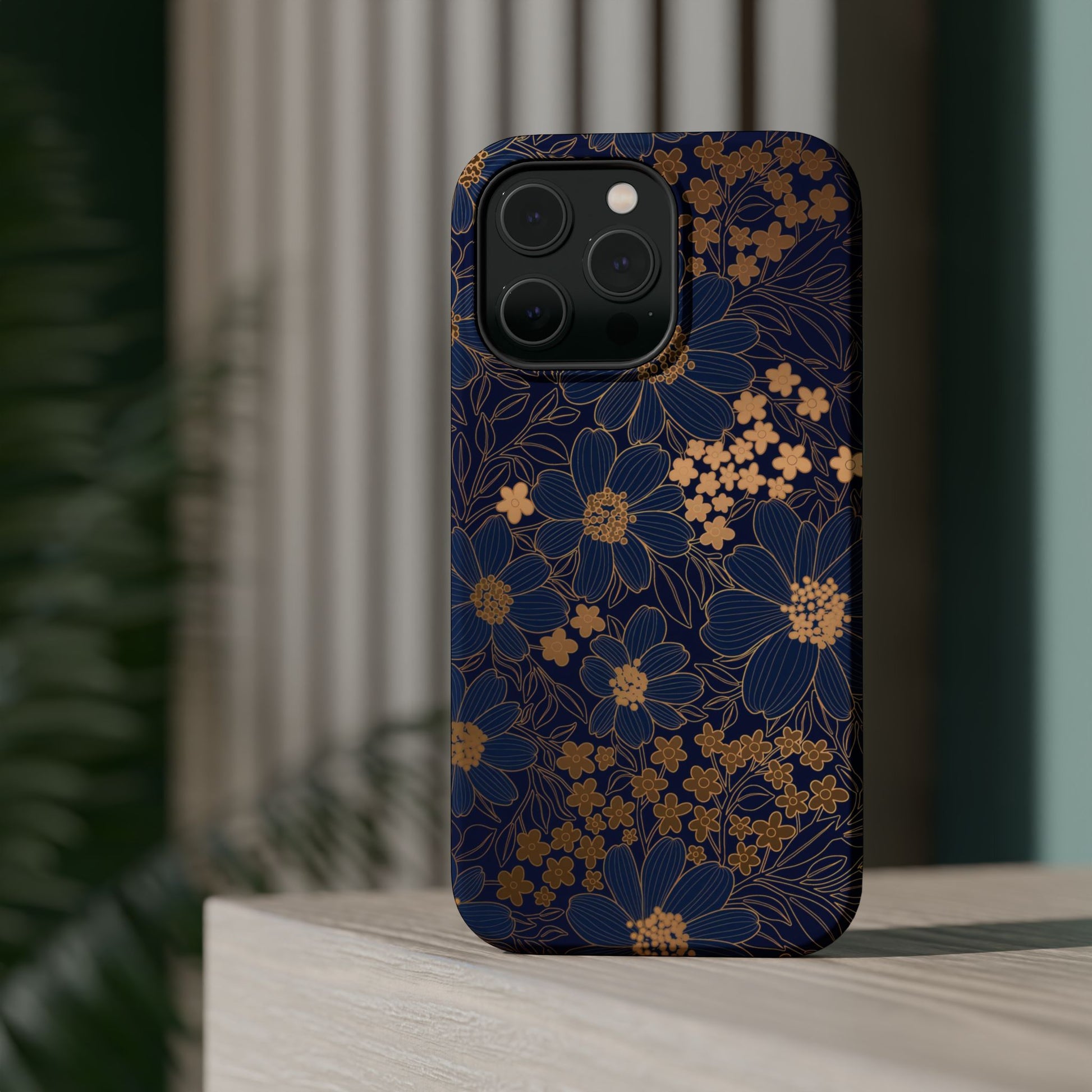 Luxury Serial Magnetic Phone Case, Golden Floral