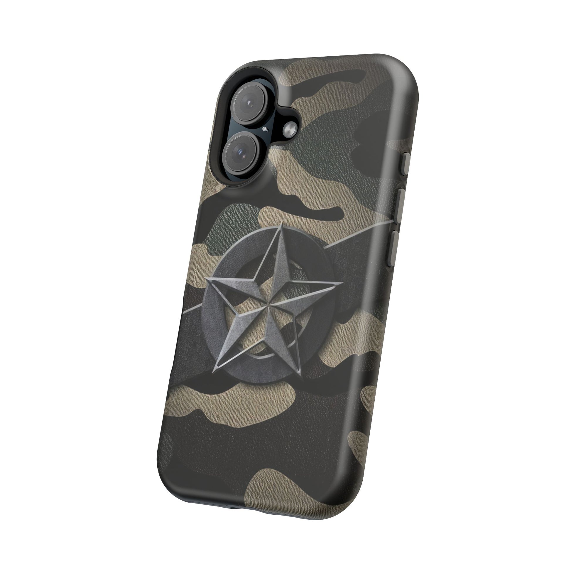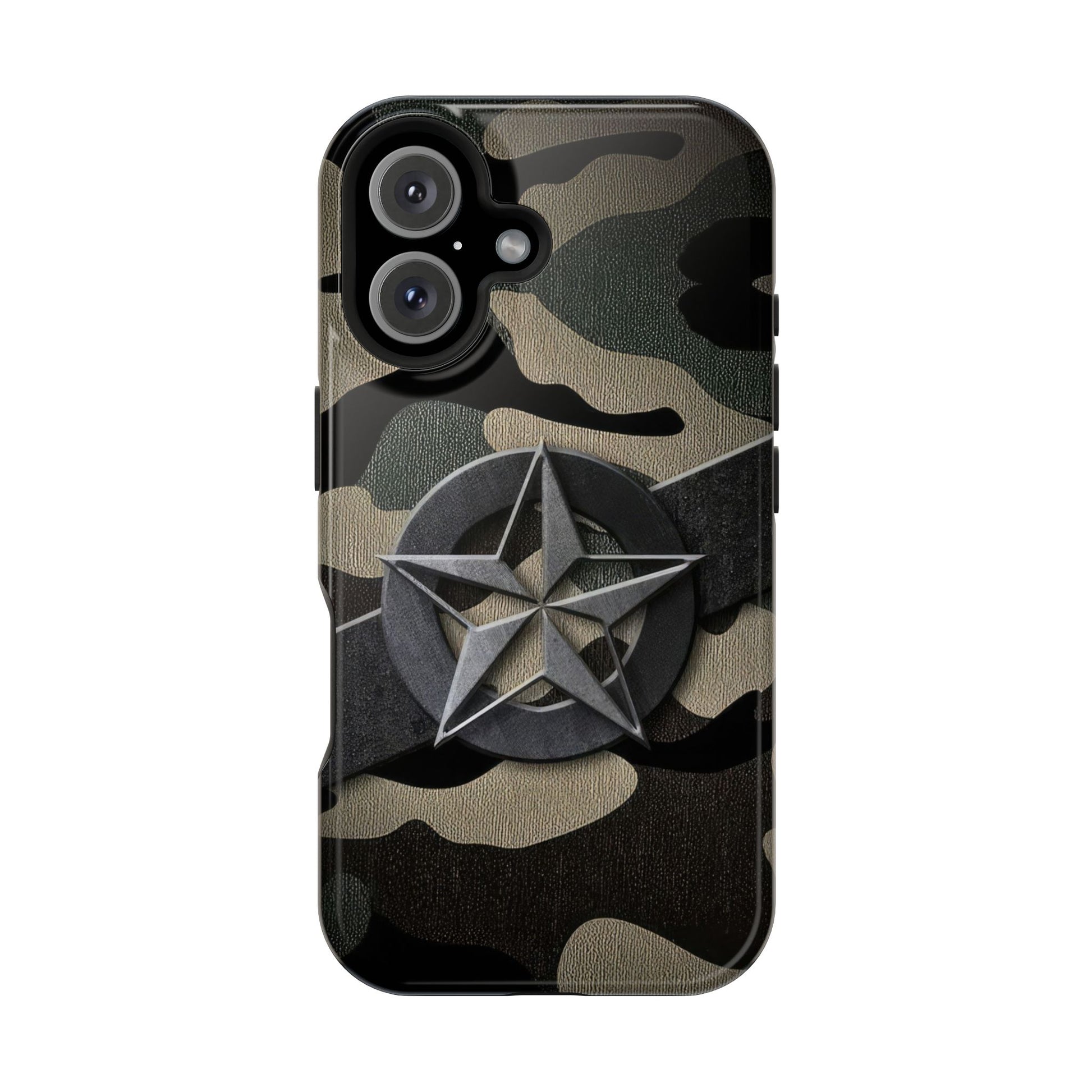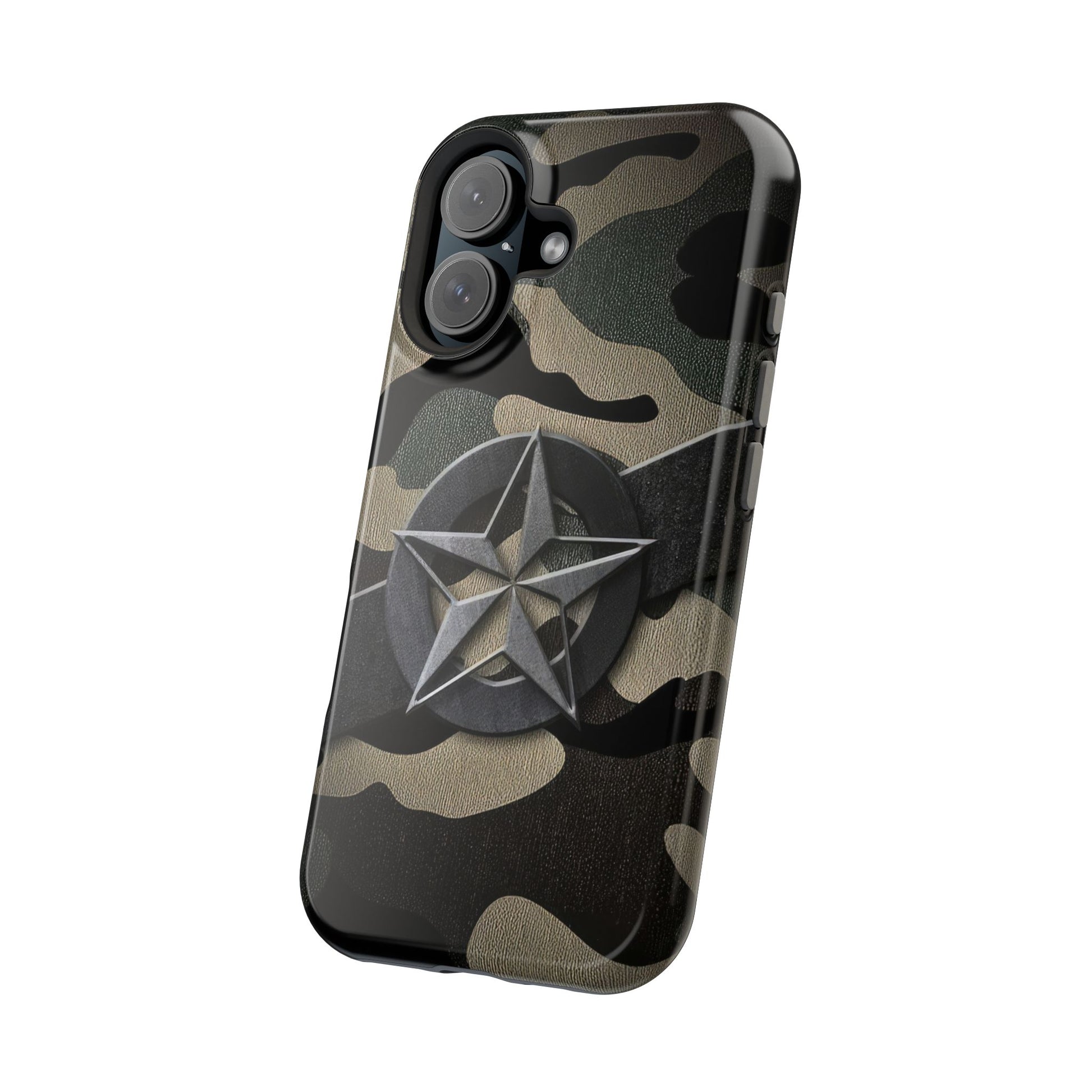 The Jakers Military Camouflage Phone Case is perfect for those who love rugged and durable designs. With dual-layer polycarbonate plastic and an inner TPU liner, this case provides extra durability and protection for your iPhone 16 15 14 13 Pro/Max/Plus/Mini. The vibrant colors and photo-realistic print quality make your phone stand out in style. This case also features an embedded magnet for easy compatibility with magnetic accessories.