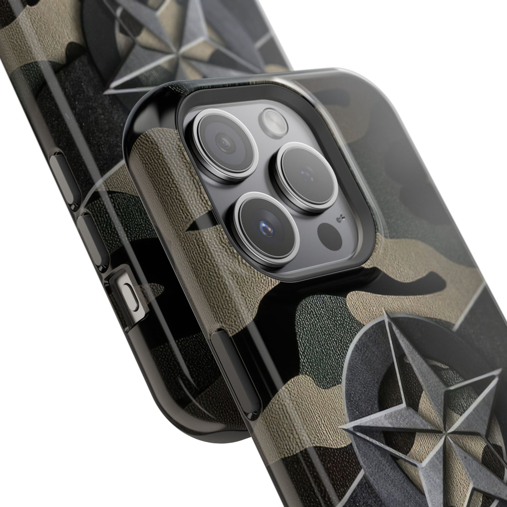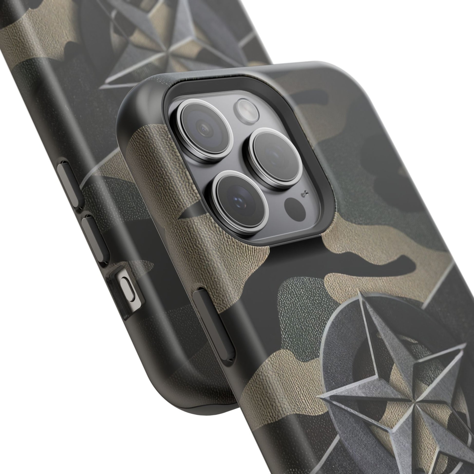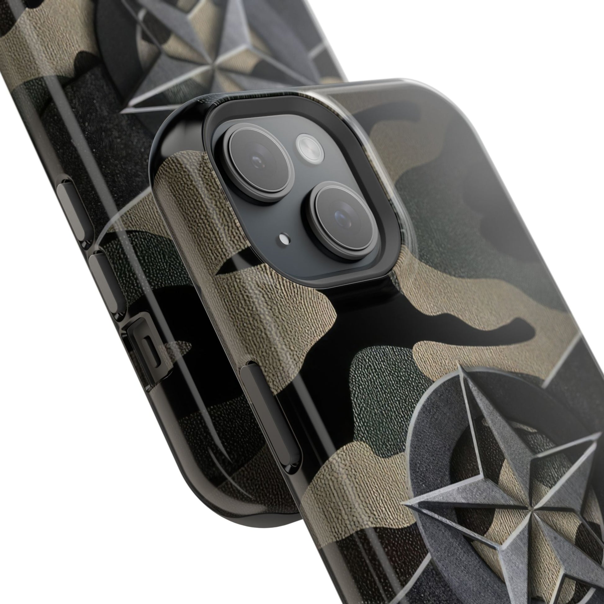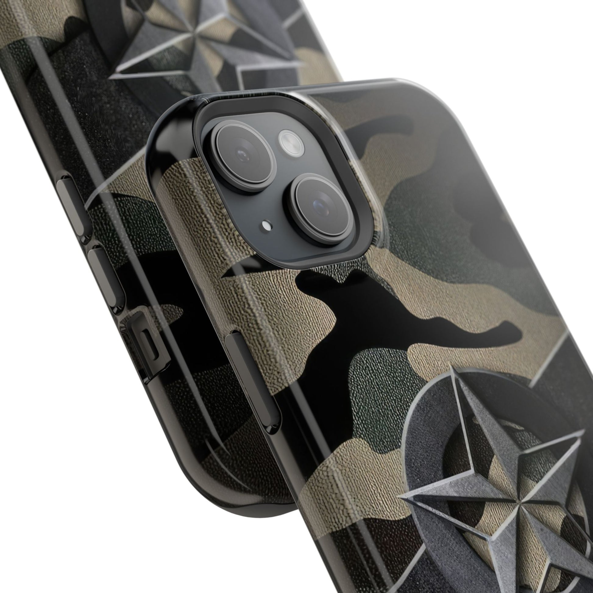 The Jakers Military Camouflage Phone Case is perfect for those who love rugged and durable designs. With dual-layer polycarbonate plastic and an inner TPU liner, this case provides extra durability and protection for your iPhone 16 15 14 13 Pro/Max/Plus/Mini. The vibrant colors and photo-realistic print quality make your phone stand out in style. This case also features an embedded magnet for easy compatibility with magnetic accessories.