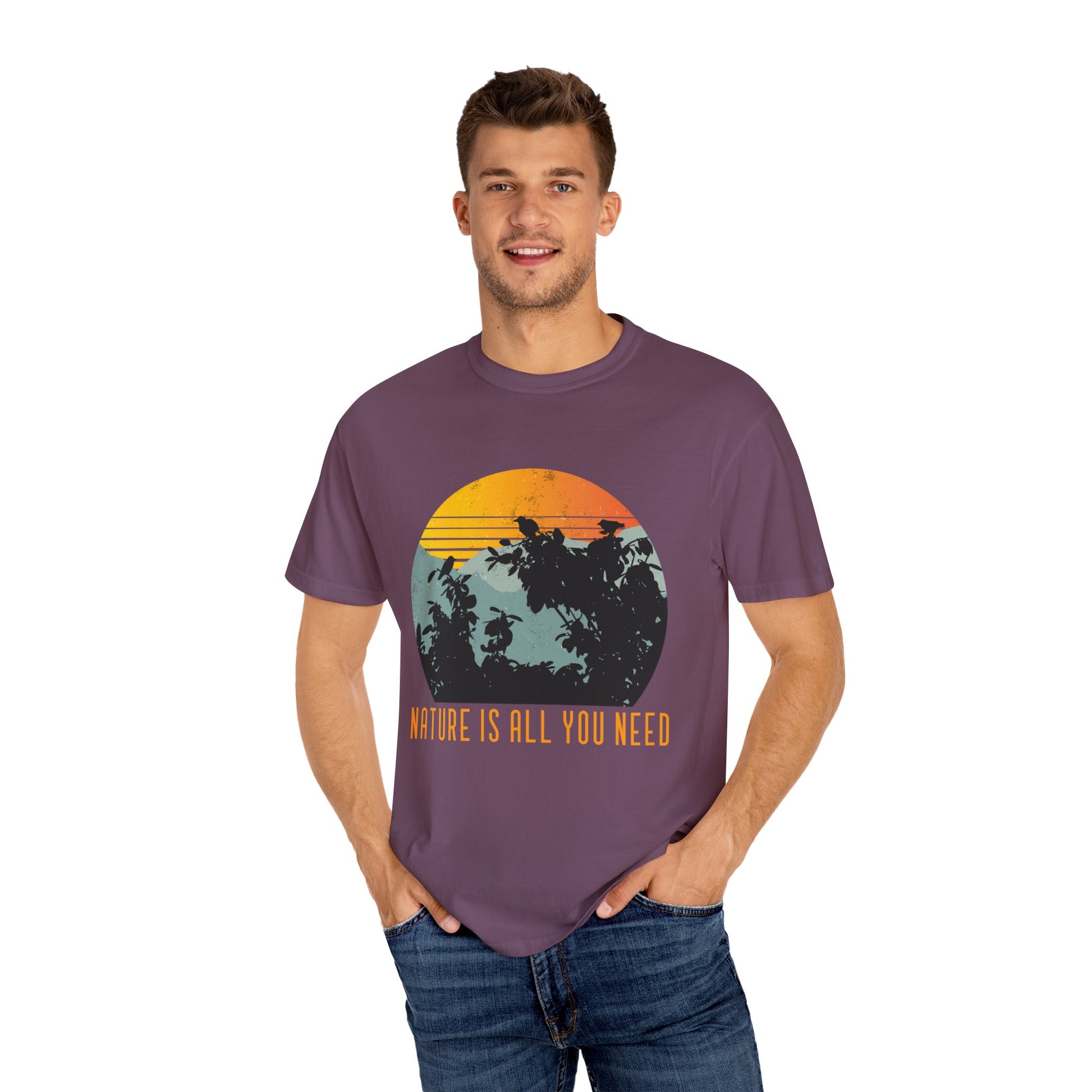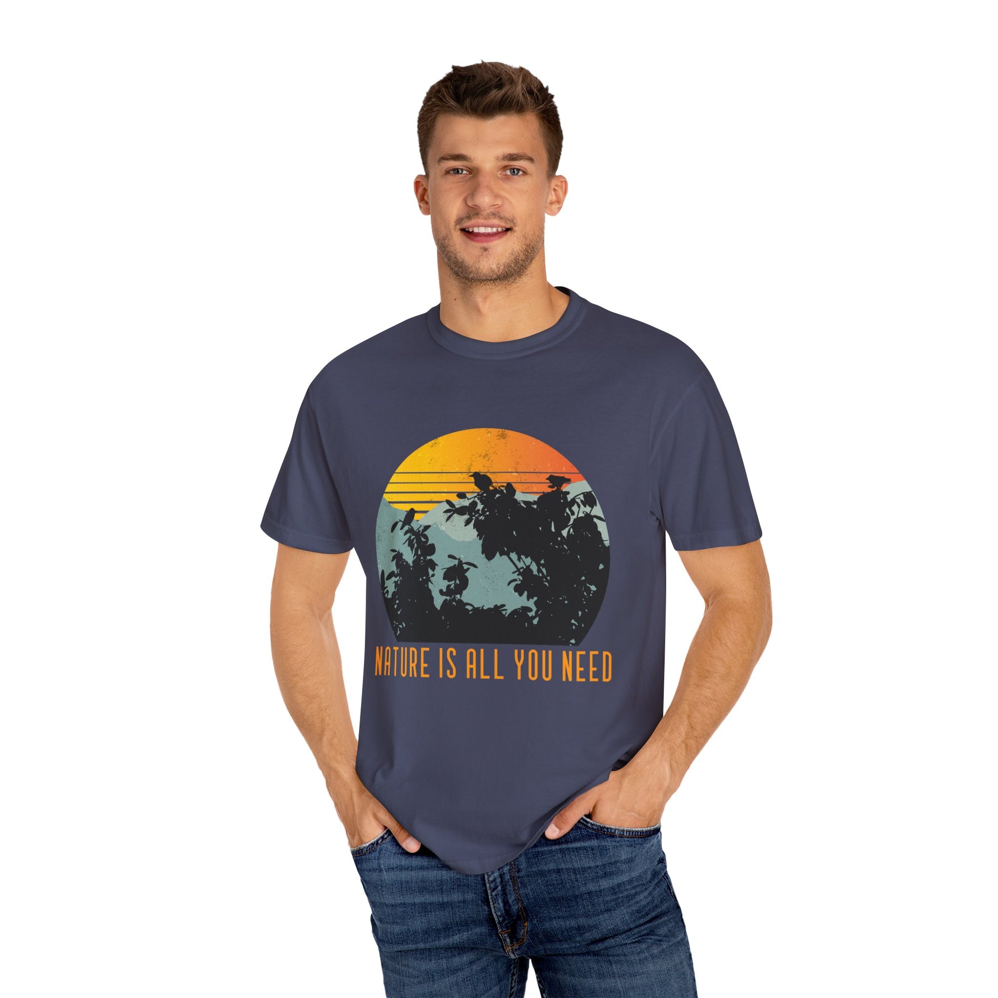 The "Nature Is All You Need" Unisex Garment-Dyed T-shirt is perfect for nature lovers and outdoor enthusiasts. Made from soft, high-quality cotton with a relaxed, vintage-inspired fit, this pre-washed tee offers a comfortable feel and vibrant, long-lasting colors. The garment-dyed process gives it a unique, worn-in look, while its durable construction ensures it stands up to any adventure. Ideal for those who believe in the power and beauty of nature.