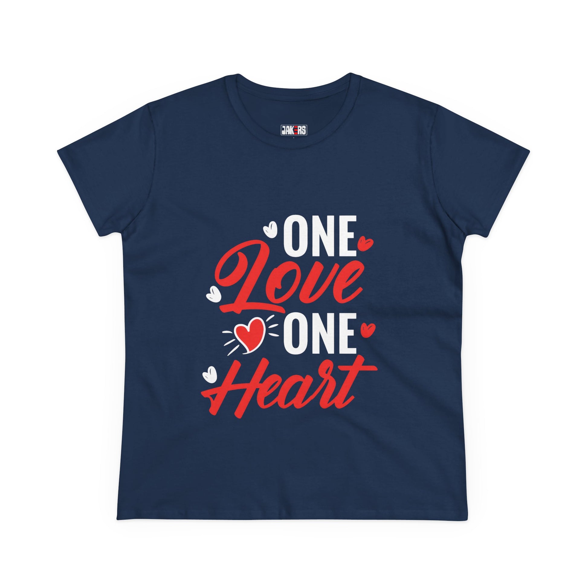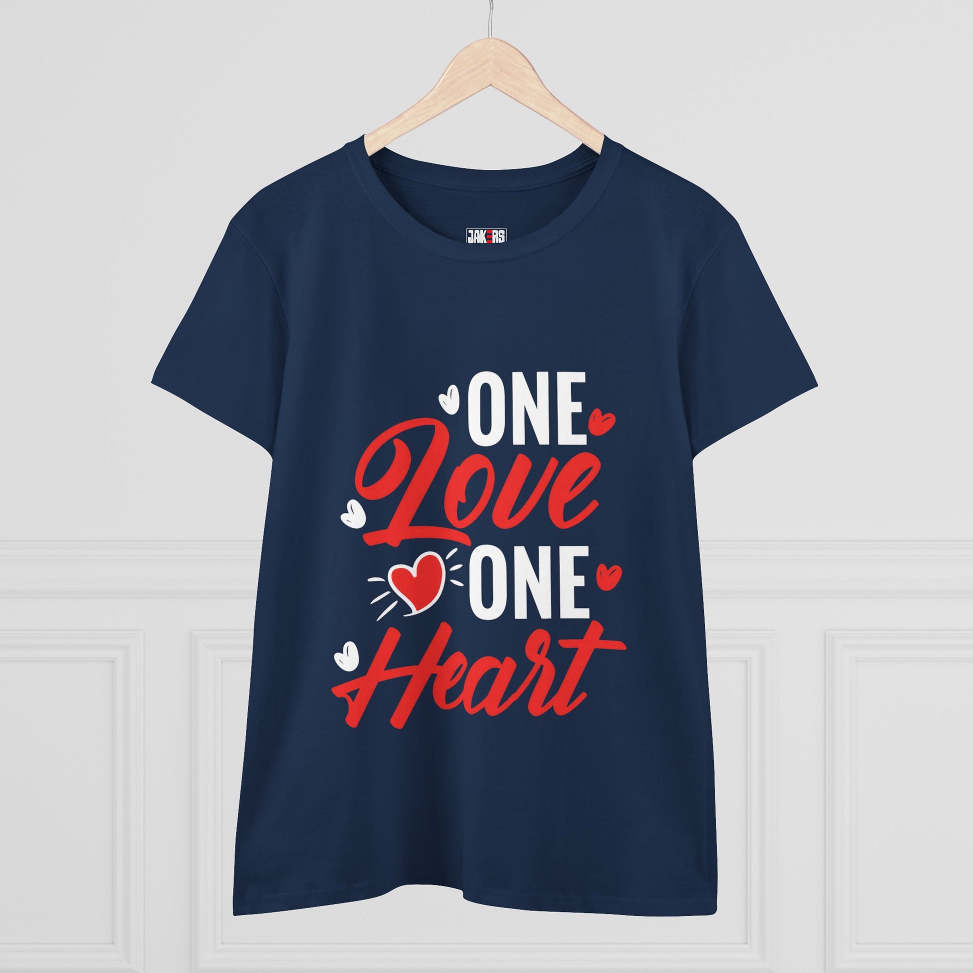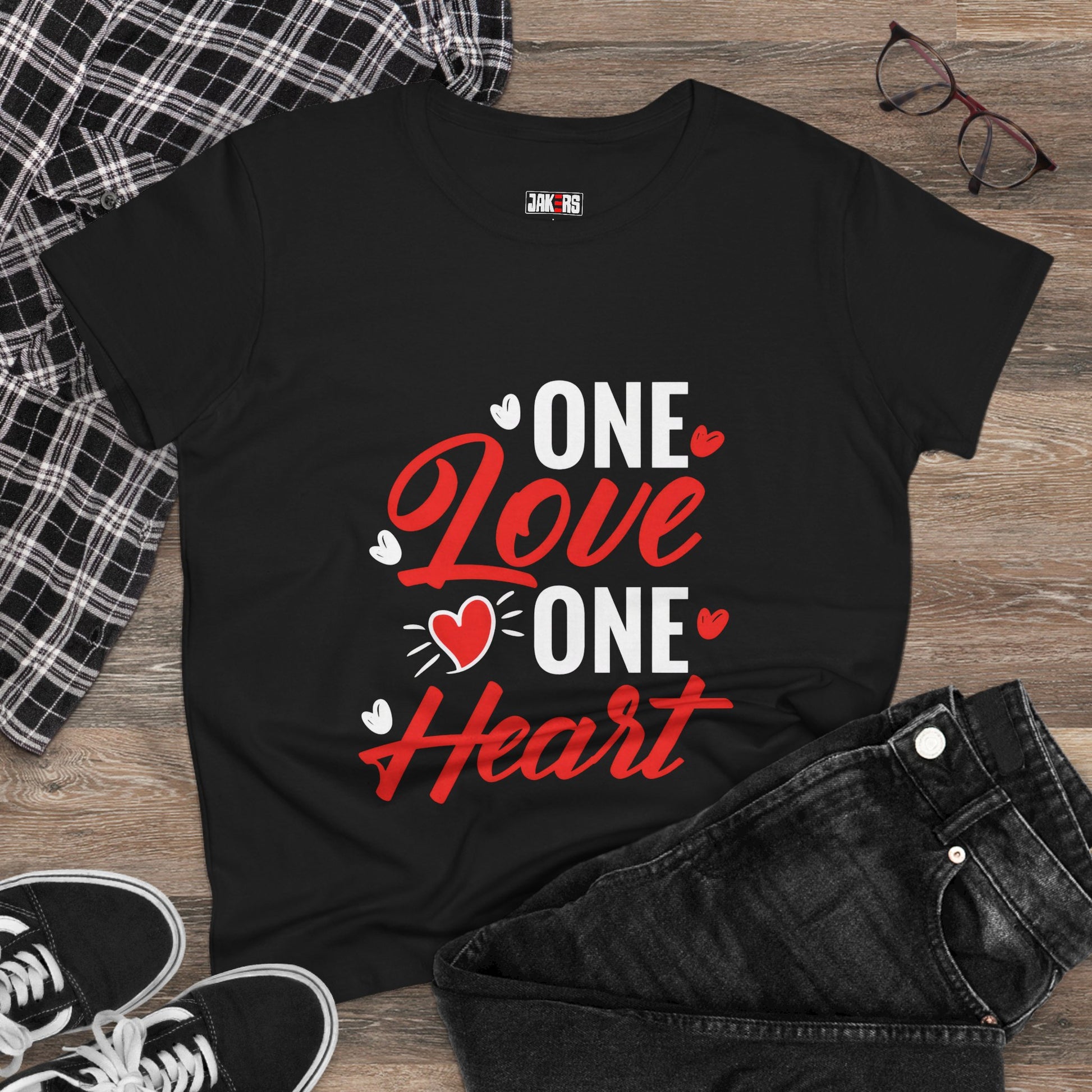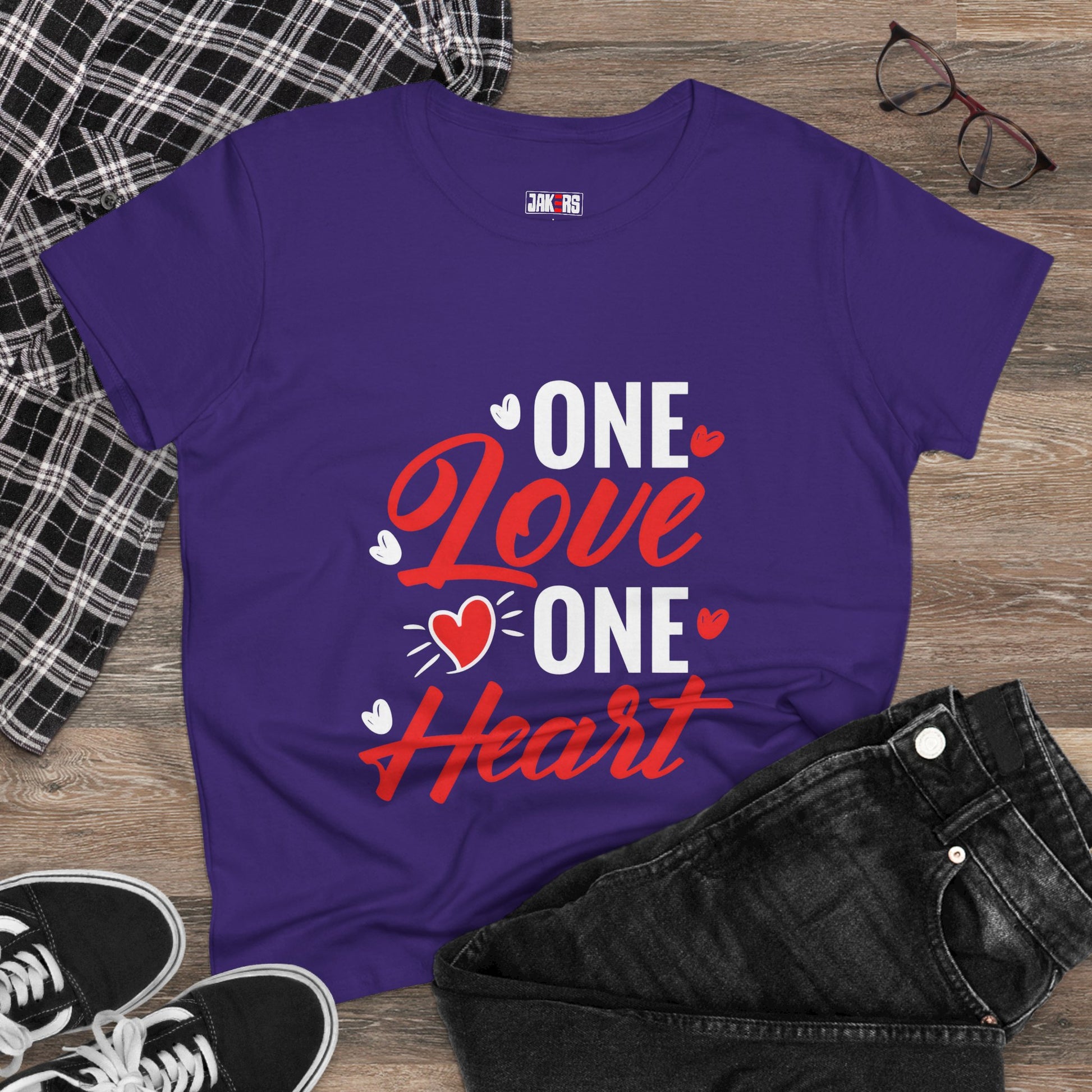 One Love One Heart Women's Midweight Cotton Tee - Cute, Casual Valentine's Apparel