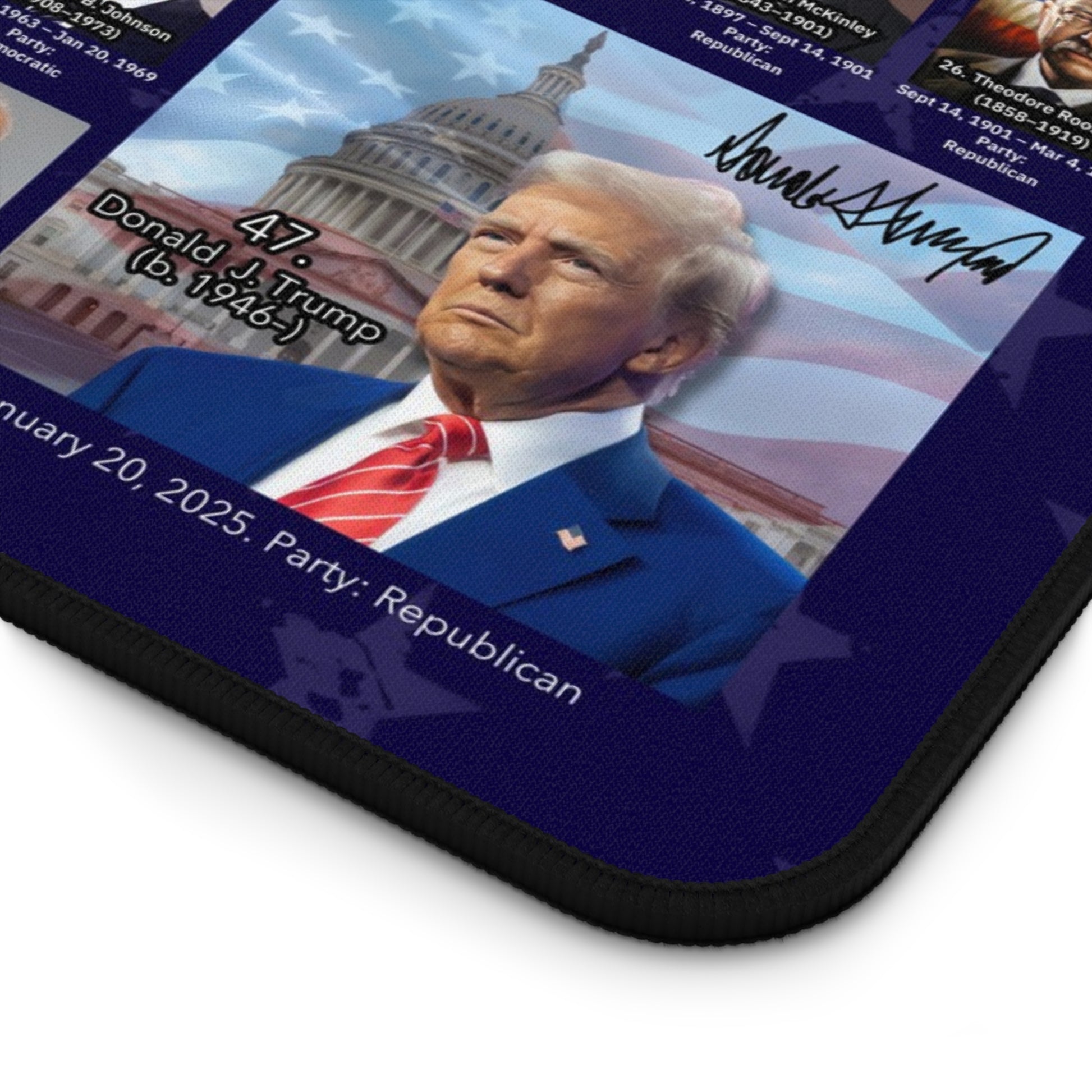 This US Presidents Desk Mat features vibrant colors and a non-slip bottom, making it perfect for use as a supportive surface for writing, typing, or crafting. It is relevant to history buffs, students, and office workers, and is ideal for Presidents' Day, Independence Day, or any patriotic occasion.