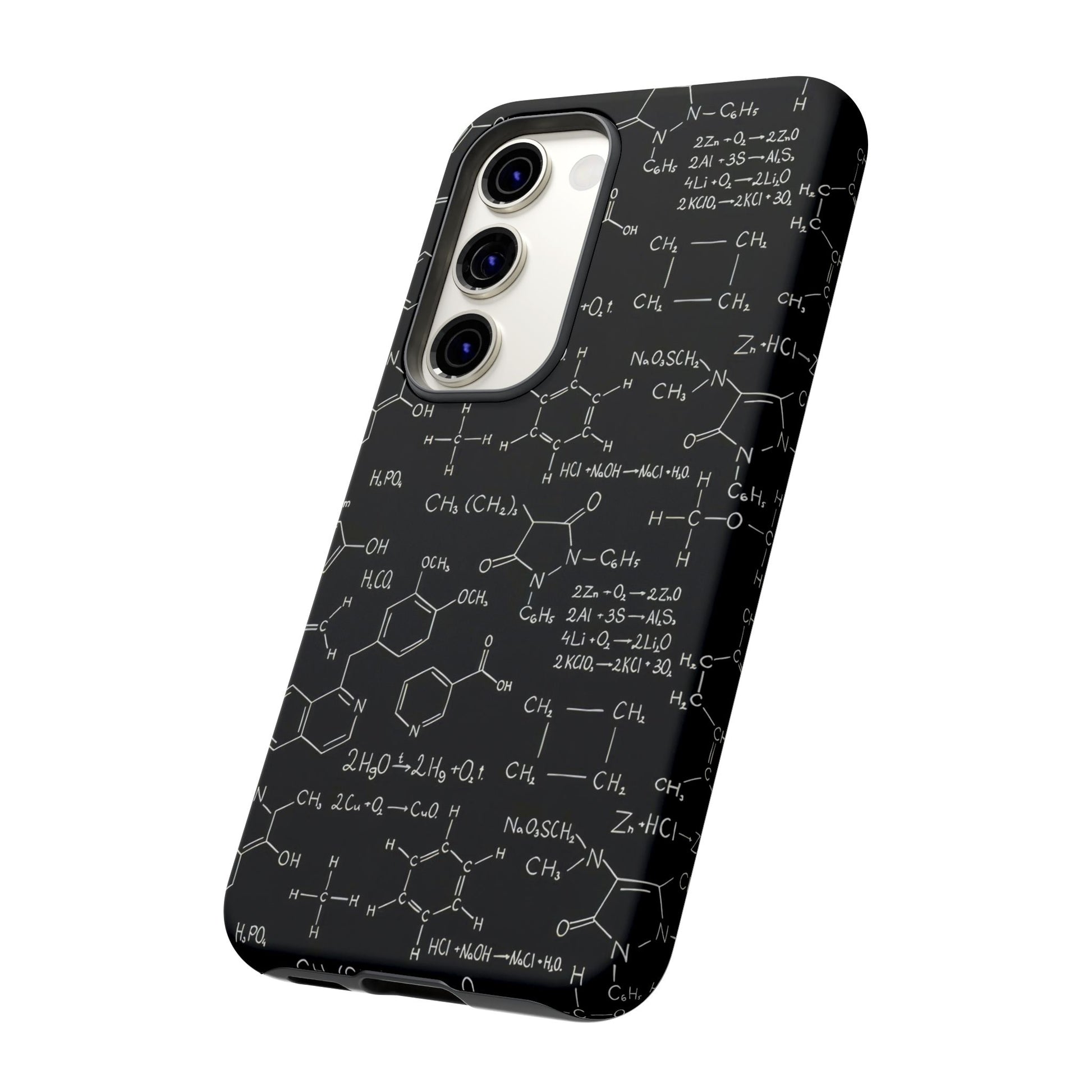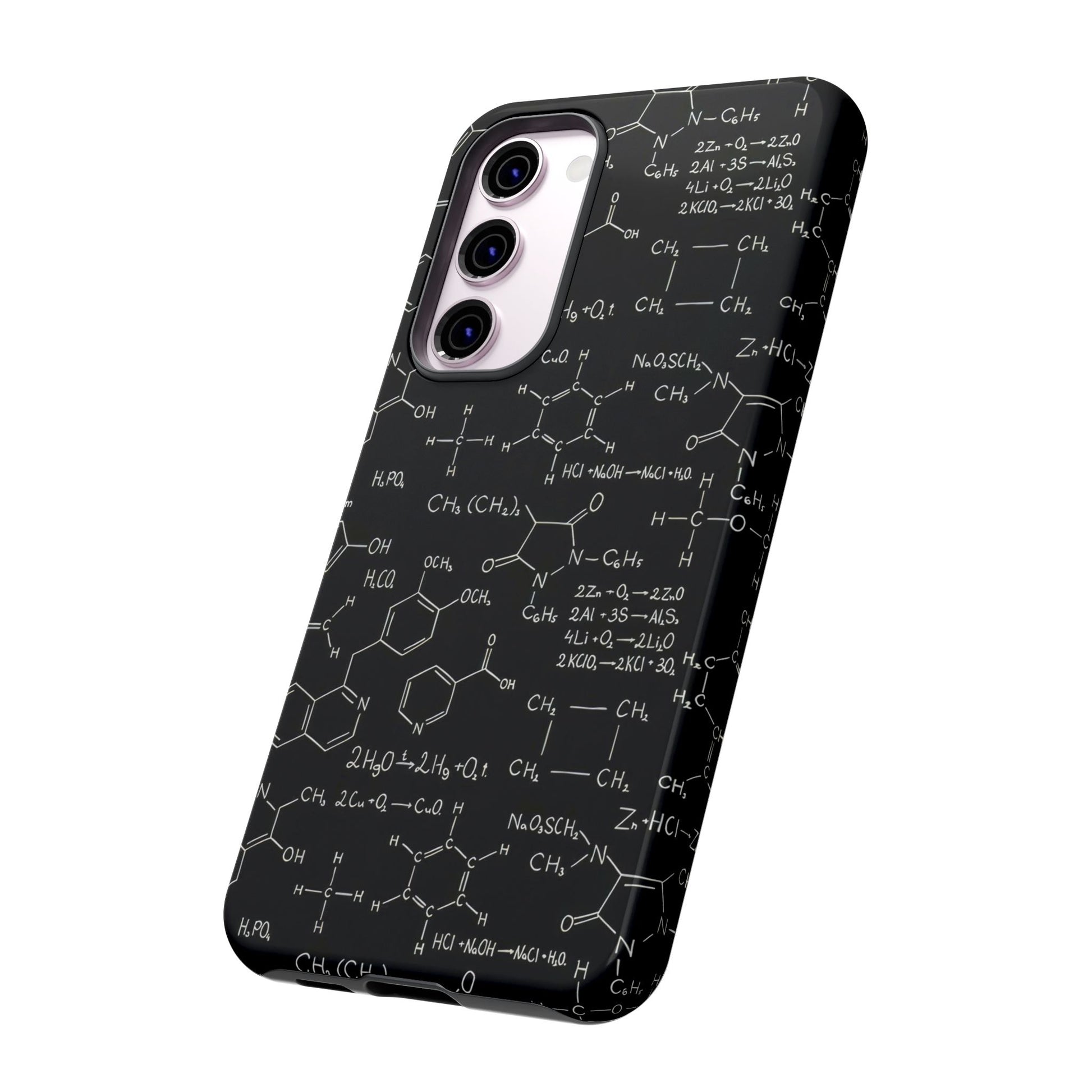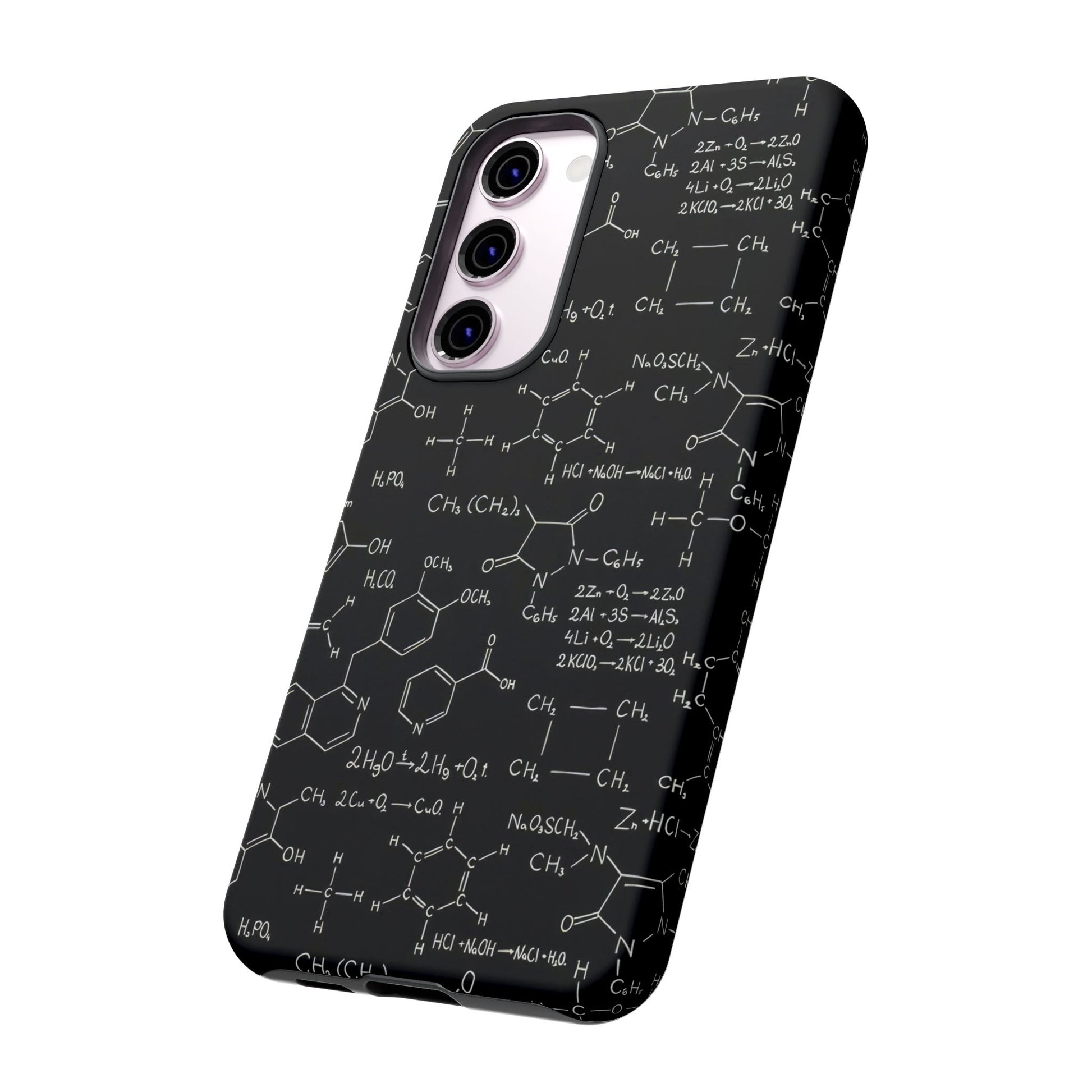 Introducing Science Scribbles Tough Cases, featuring dynamic designs of chemical compounds and formulas on a blackboard background. These cases combine style and durability, perfect for science enthusiasts who want to showcase their passion while keeping their devices protected. Embrace your love for science with every call and text!