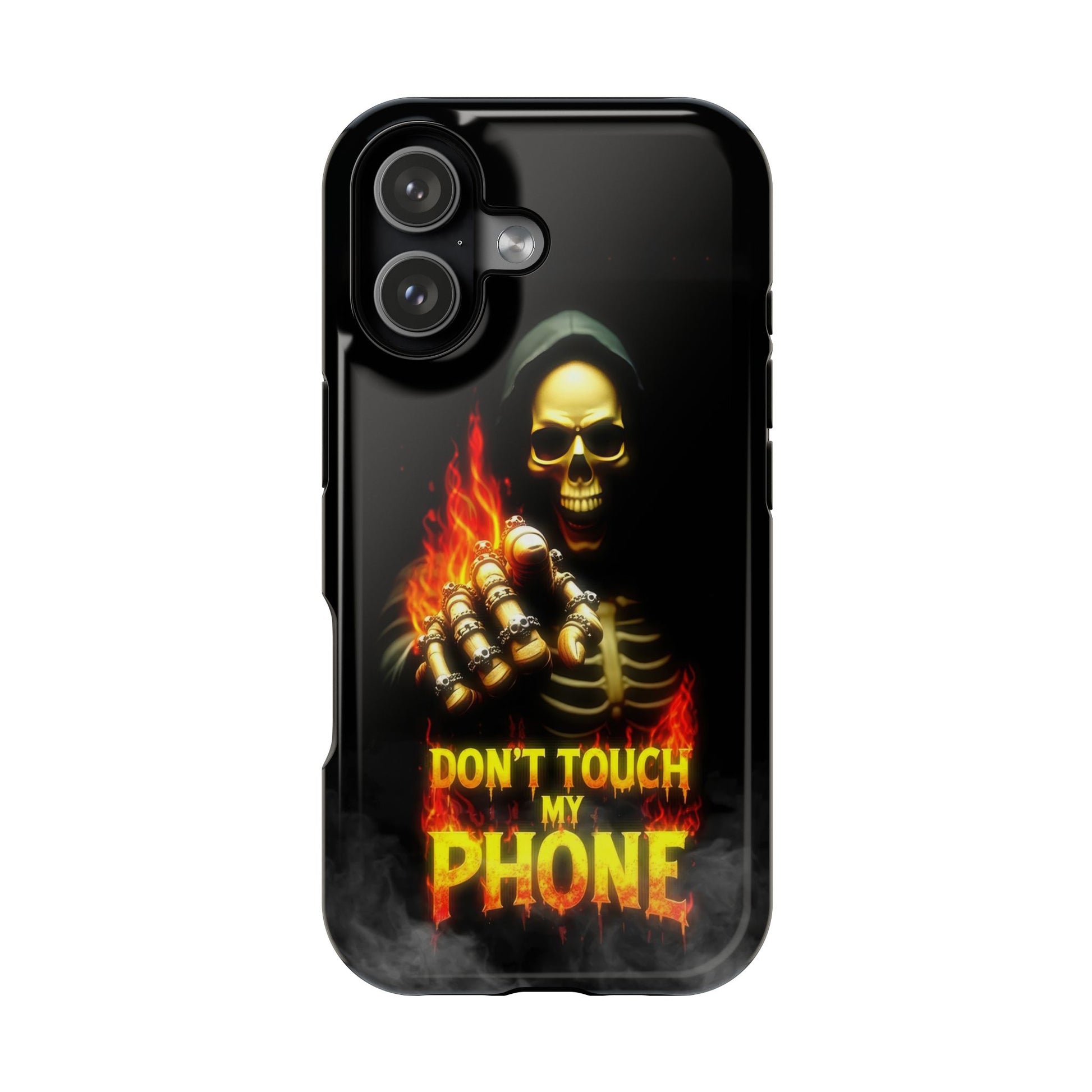 Introducing the Skull Design Impact-Resistant iPhone Case—the perfect blend of style and protection. Designed for those who want to make a bold statement, this case features a striking "Don't Touch My Phone" design that grabs attention and showcases your personality. With its impact-resistant build, it keeps your phone safe from everyday drops and scratches. Vibrant colors and a high-quality print ensure long-lasting appeal. Ideal for busy professionals, students, or trendsetters, it’s the perfect gift for anyone who values unique, functional accessories. Show off your bold side while protecting your device!