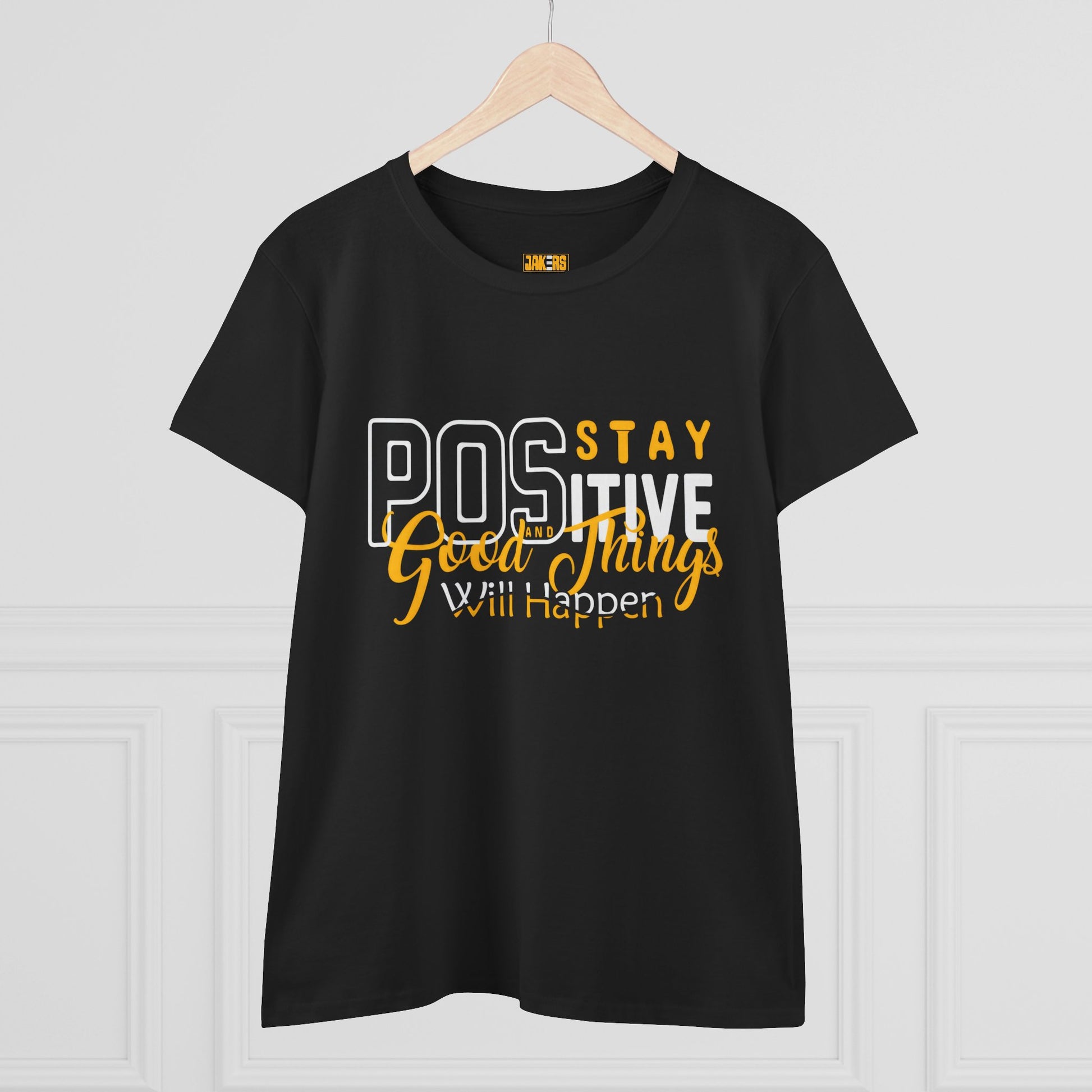 The Stay Positive Women's Cotton Tee is an inspirational, motivational t-shirt that combines comfort and style—perfect for spreading positivity wherever you go.