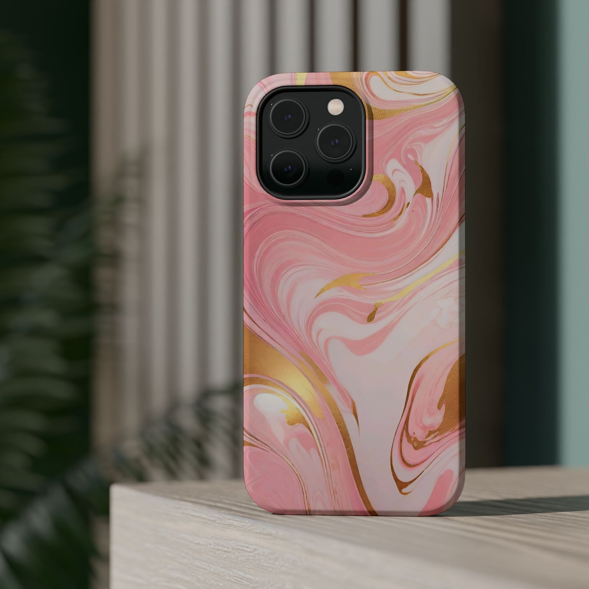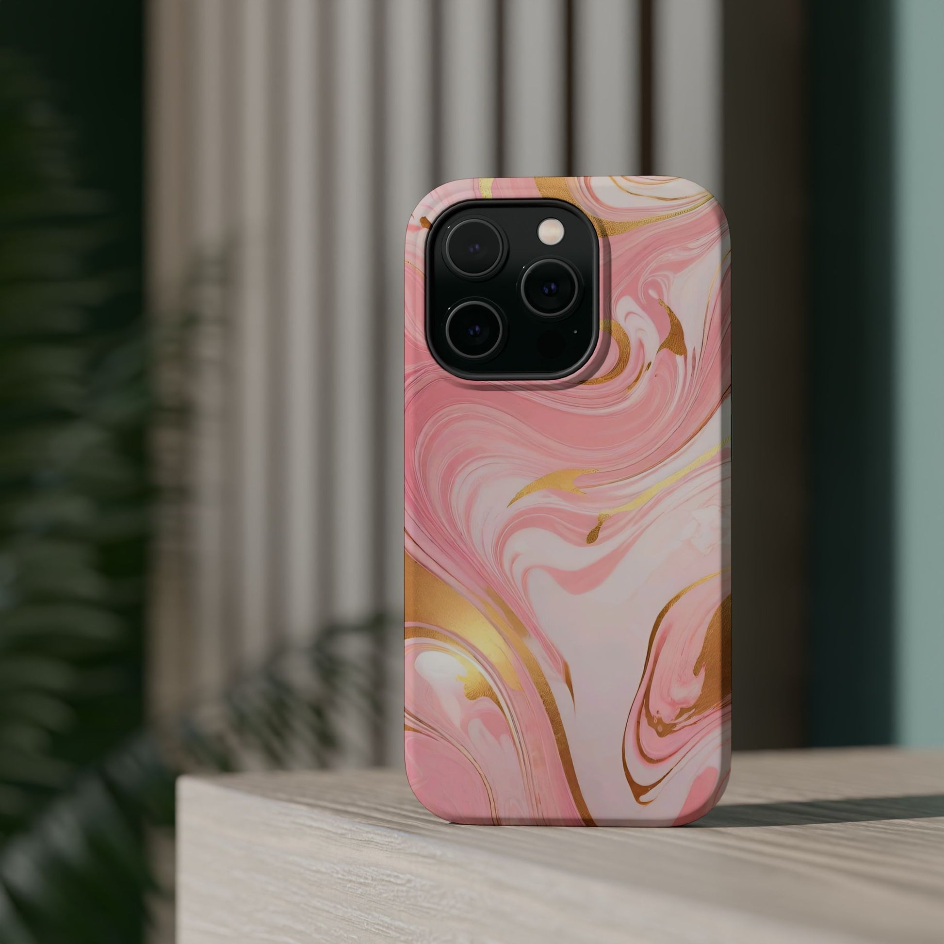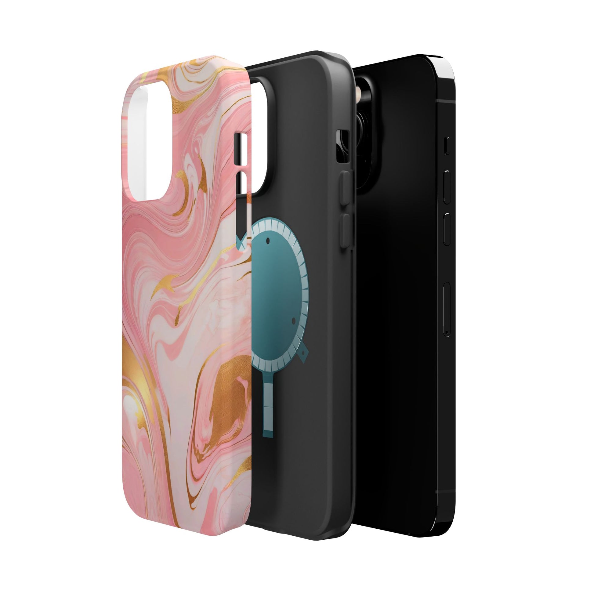 Stylish Magnetic Phone Case, Pink Marble Protective Cover