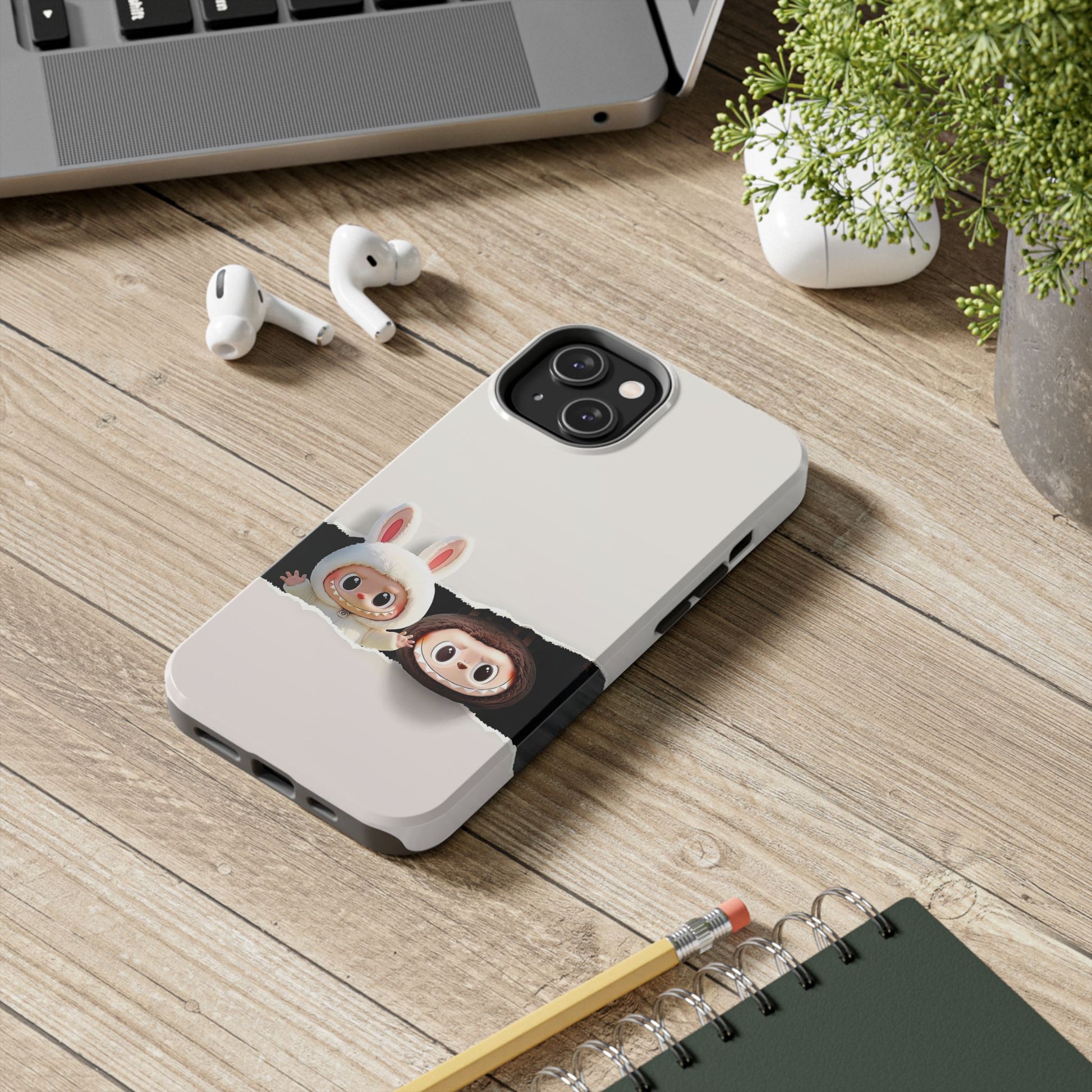 The Monsters Tough Case for iPhone Models and Variations is a dual-layer protective cover with a playful design, making it a cute mobile accessory. Perfect for those who want to keep their phones safe in a fun and stylish way. Ideal for Halloween, birthdays, and everyday use.