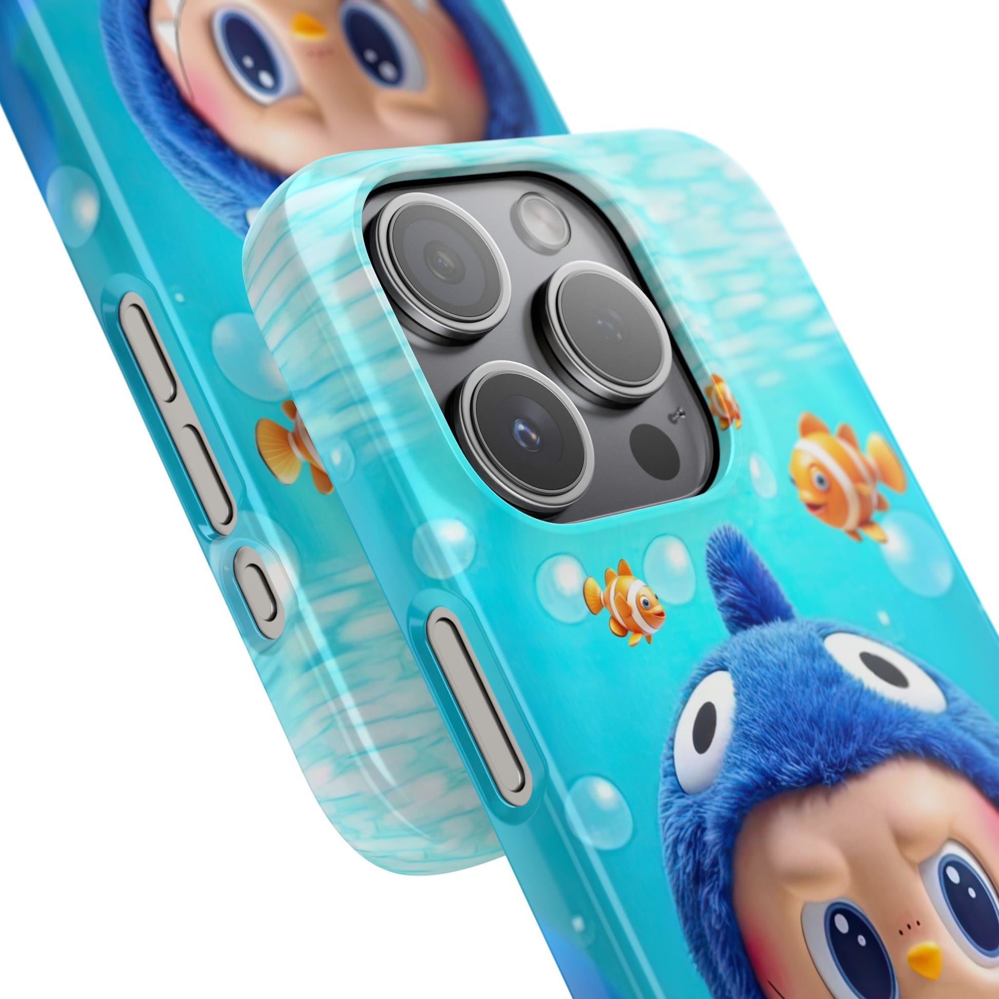 The Monsters Underwater Snap Case for iPhone Models is a whimsical phone cover with a playful design, adding a fun and creative touch to your mobile accessory collection. It is perfect for those who enjoy unique and imaginative designs. This case can be a great gift for Halloween or birthdays, especially for individuals who love quirky and colorful accessories.