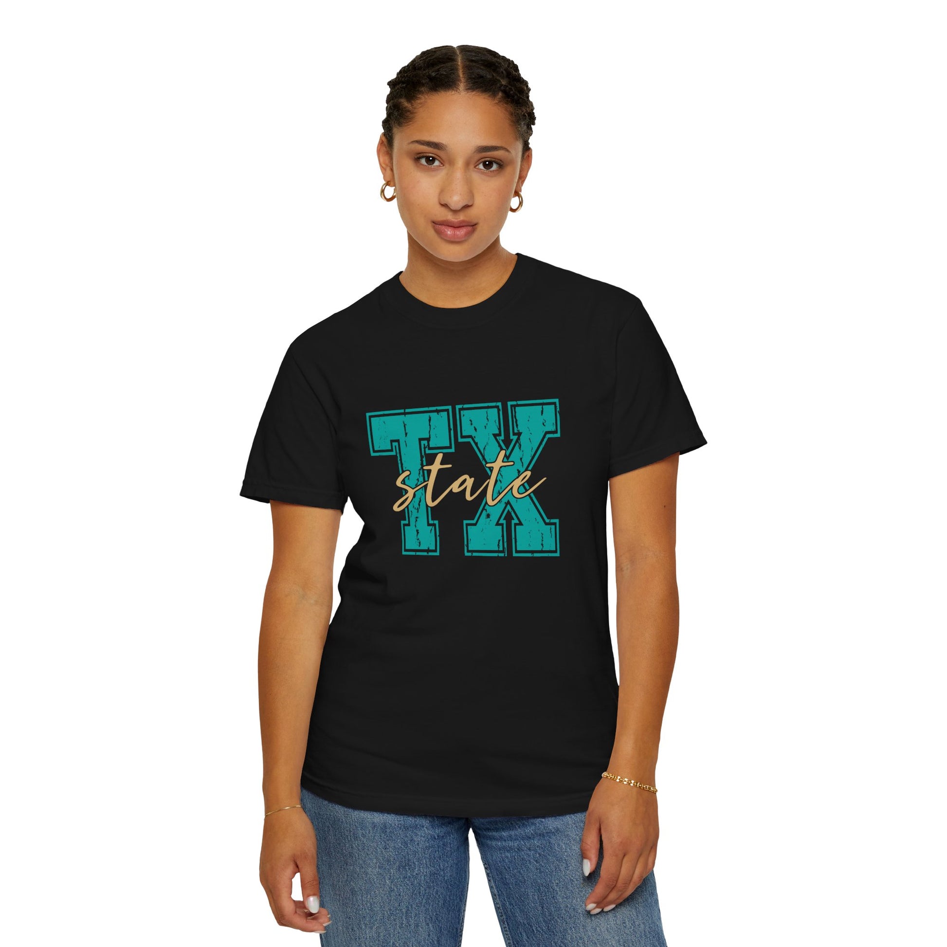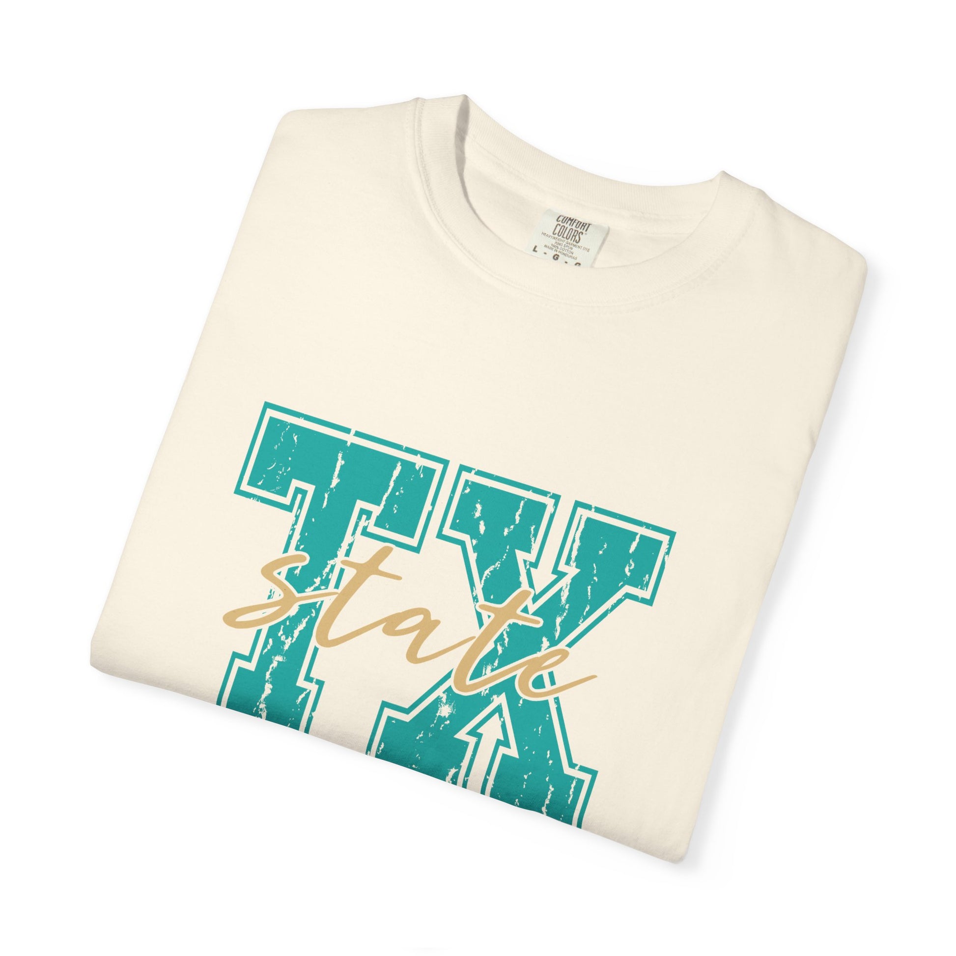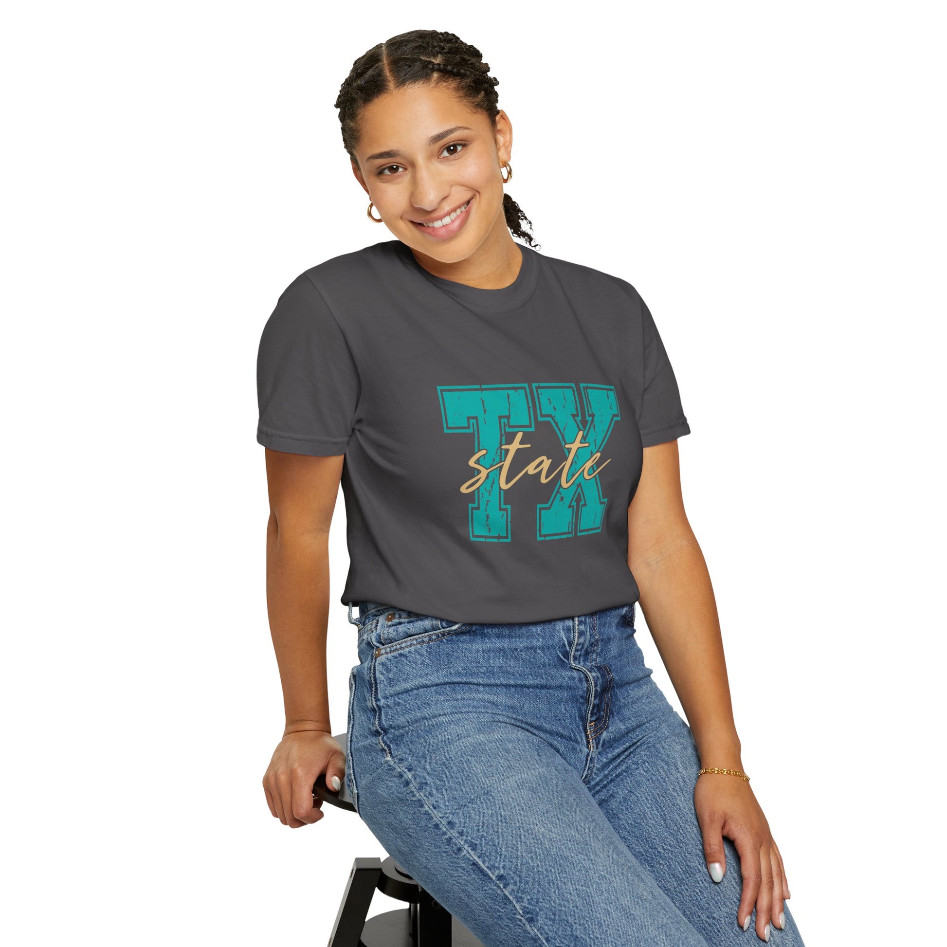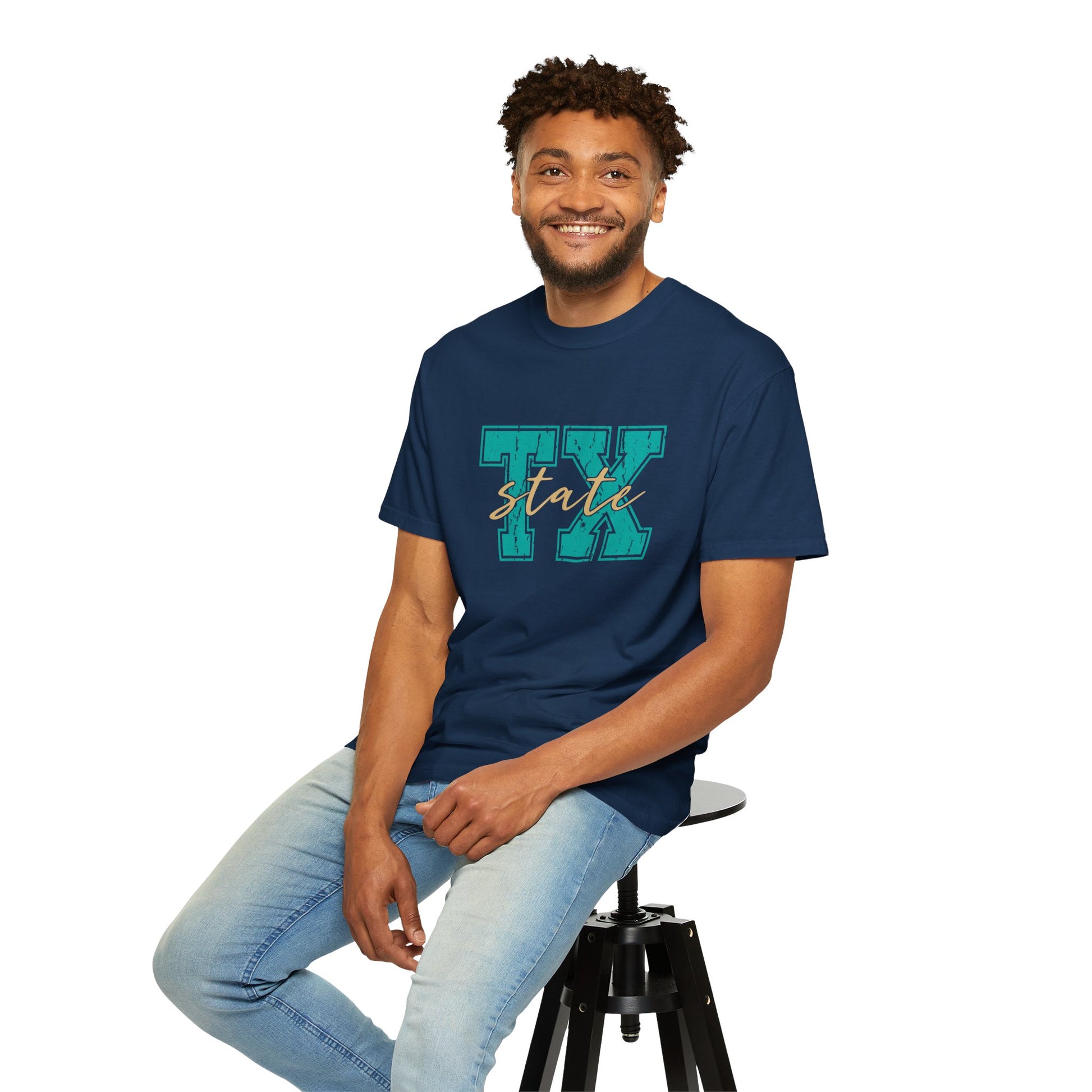 The "TX State" Unisex Garment-Dyed T-shirt is a stylish tribute to Texas pride. Made from soft, high-quality cotton, this pre-washed tee offers a relaxed, vintage-inspired fit with rich, long-lasting colors. The unique garment-dyed process gives it a distinct, worn-in look, while its comfortable construction makes it perfect for everyday wear. Show off your love for the Lone Star State in comfort and style with this effortlessly cool tee.