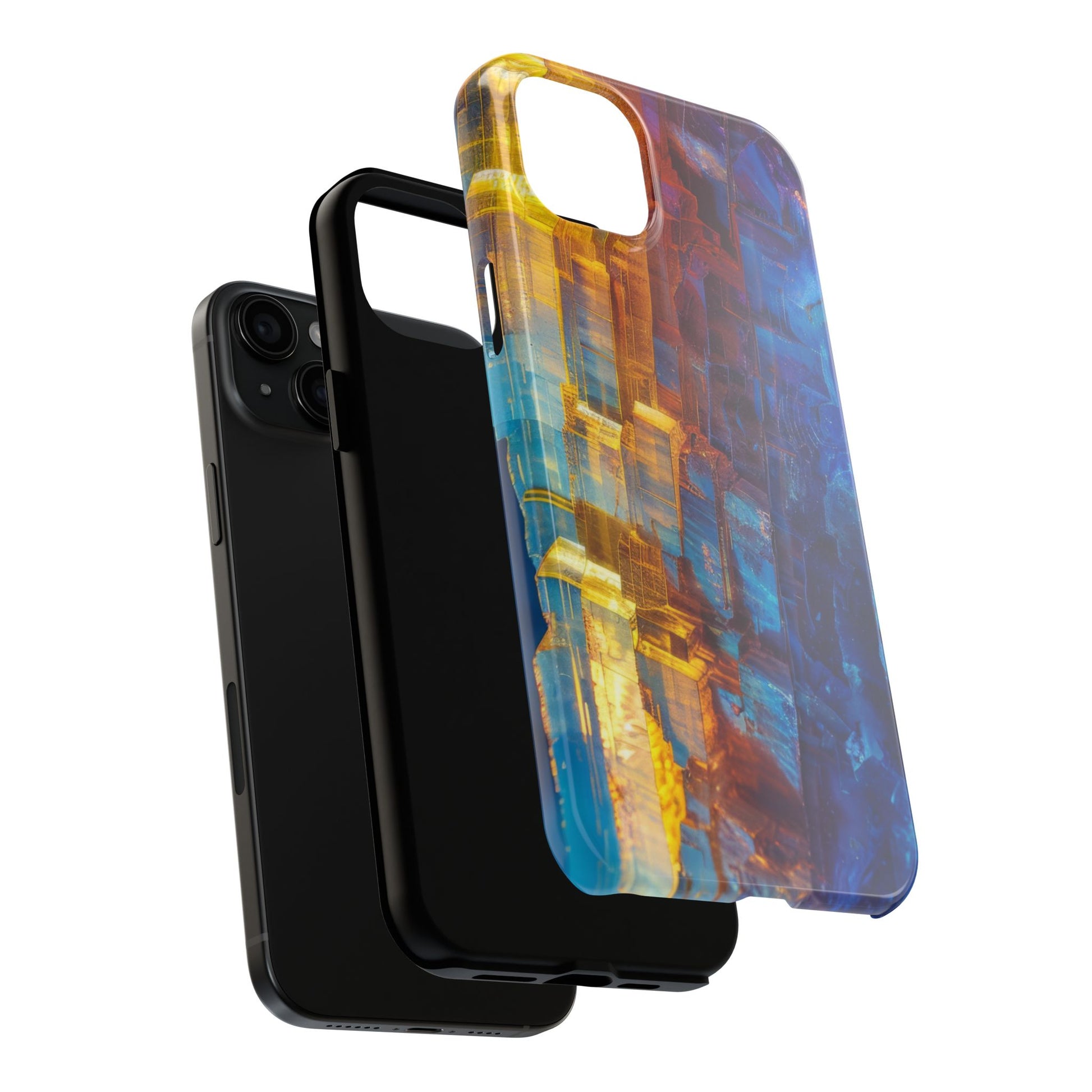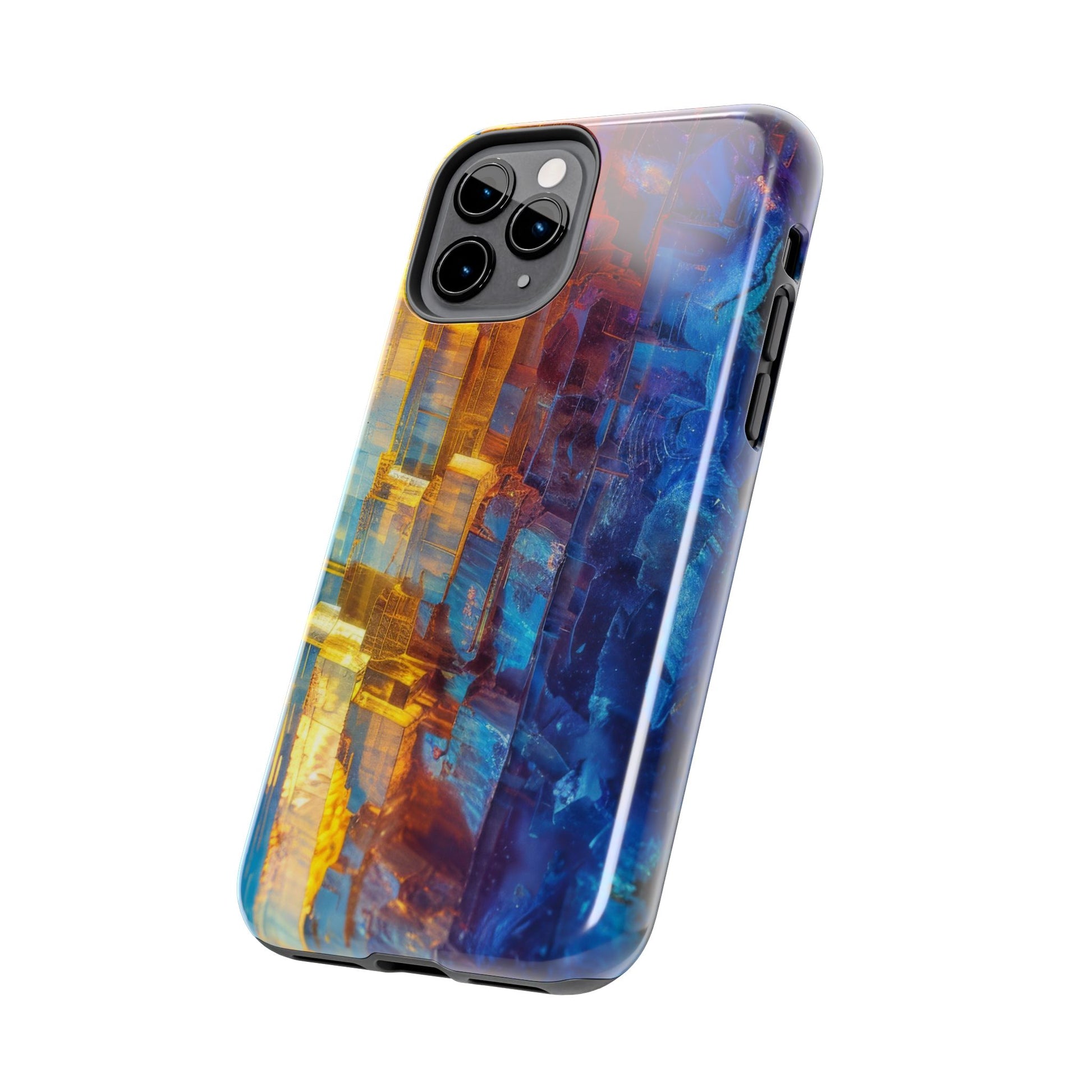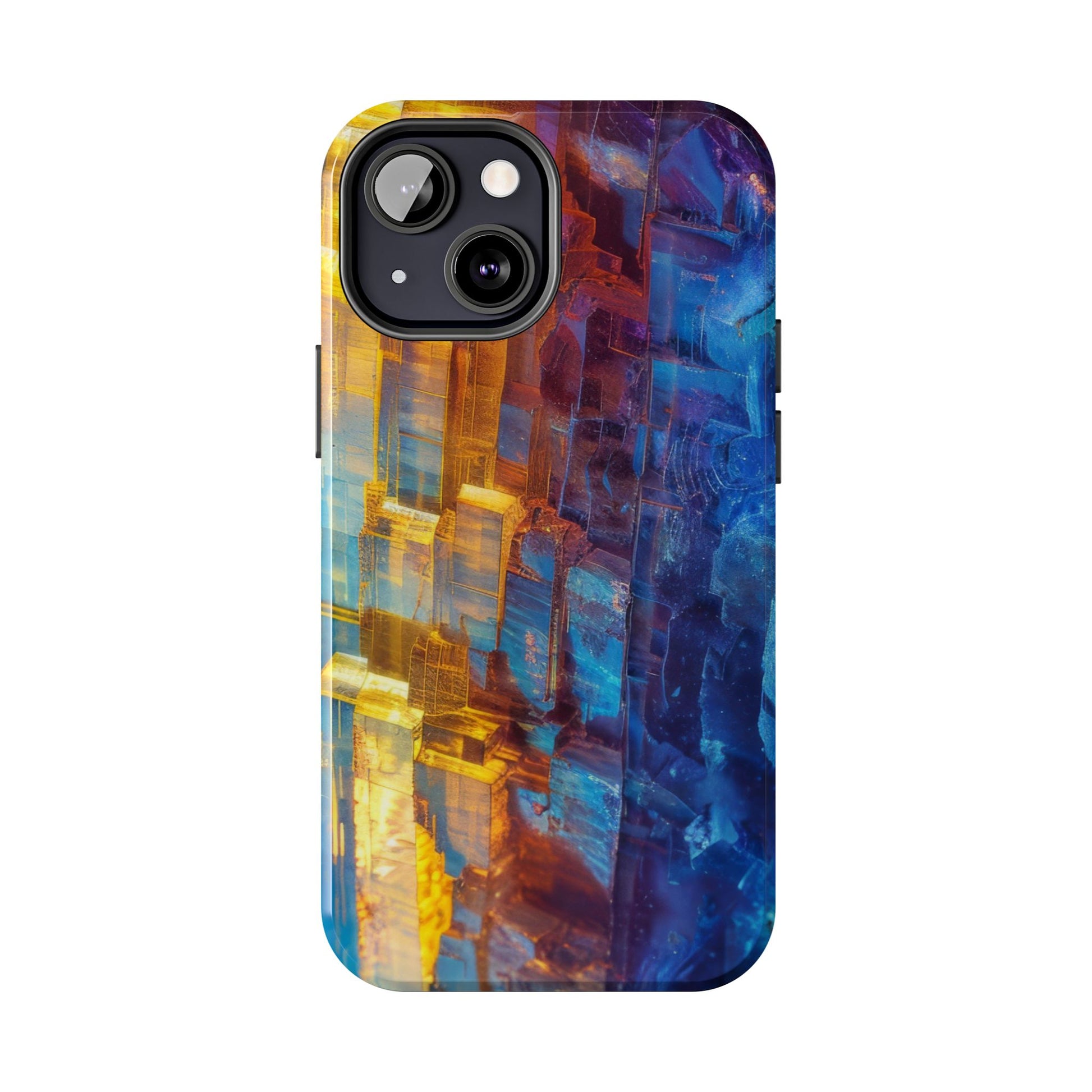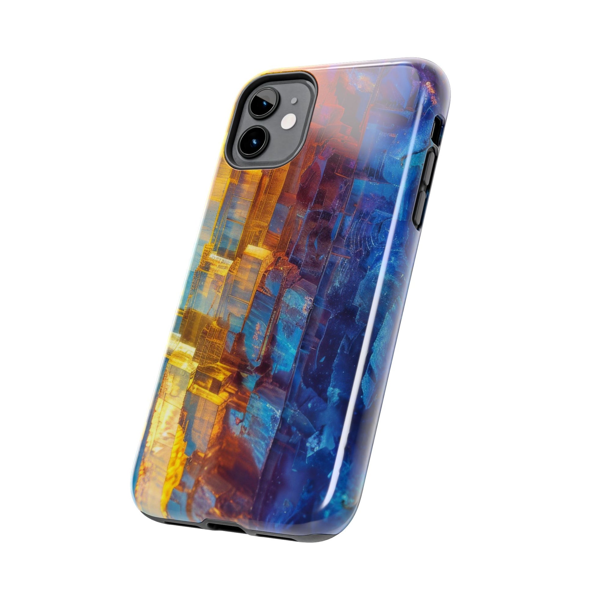Transform your phone with our Vibrant Tough iPhone Case, featuring a captivating crystal design that blends striking shades of blue and orange. This eye-catching case combines style with strength, offering superior protection while making your device stand out. Perfect for those who love bold colors and want their phone to reflect their unique personality!