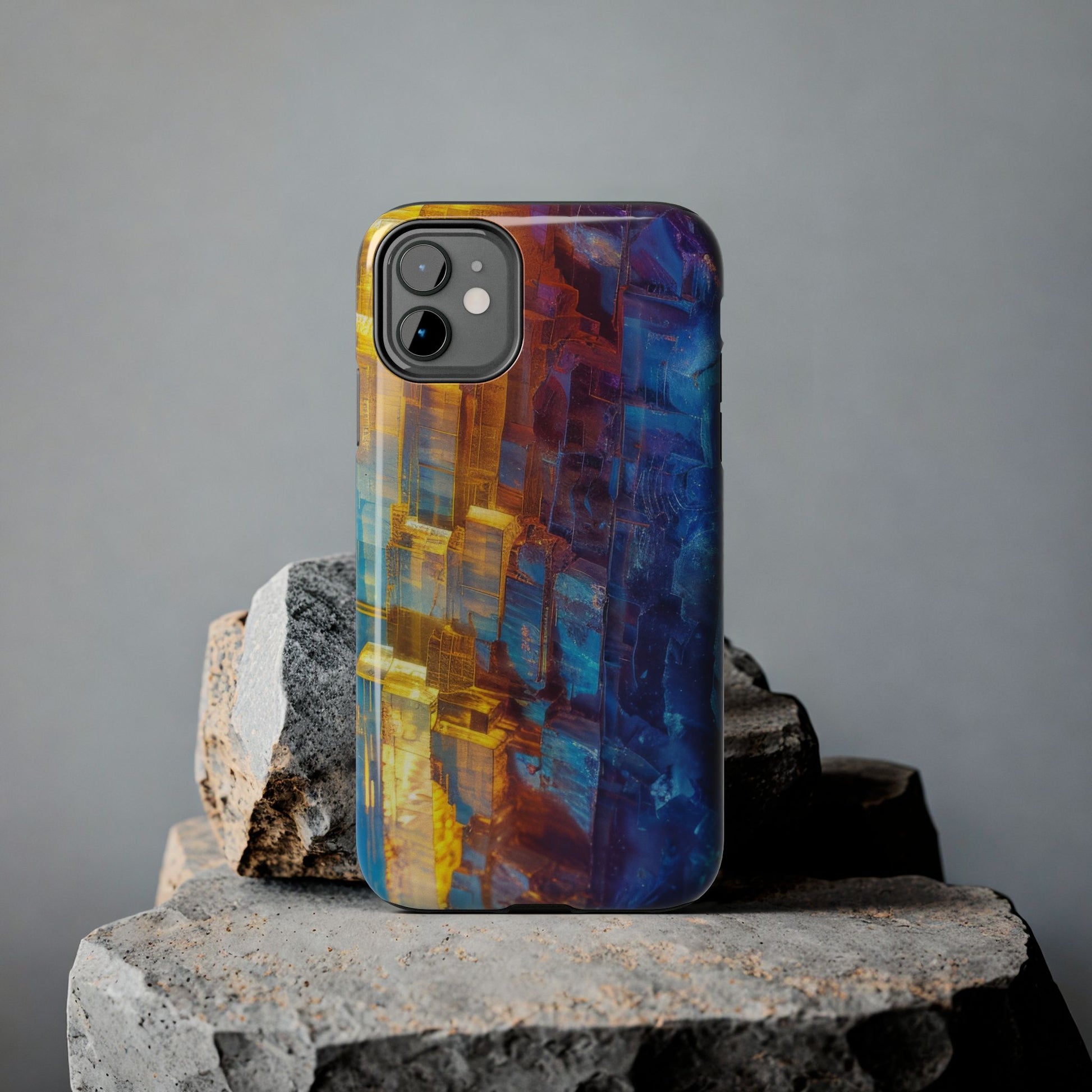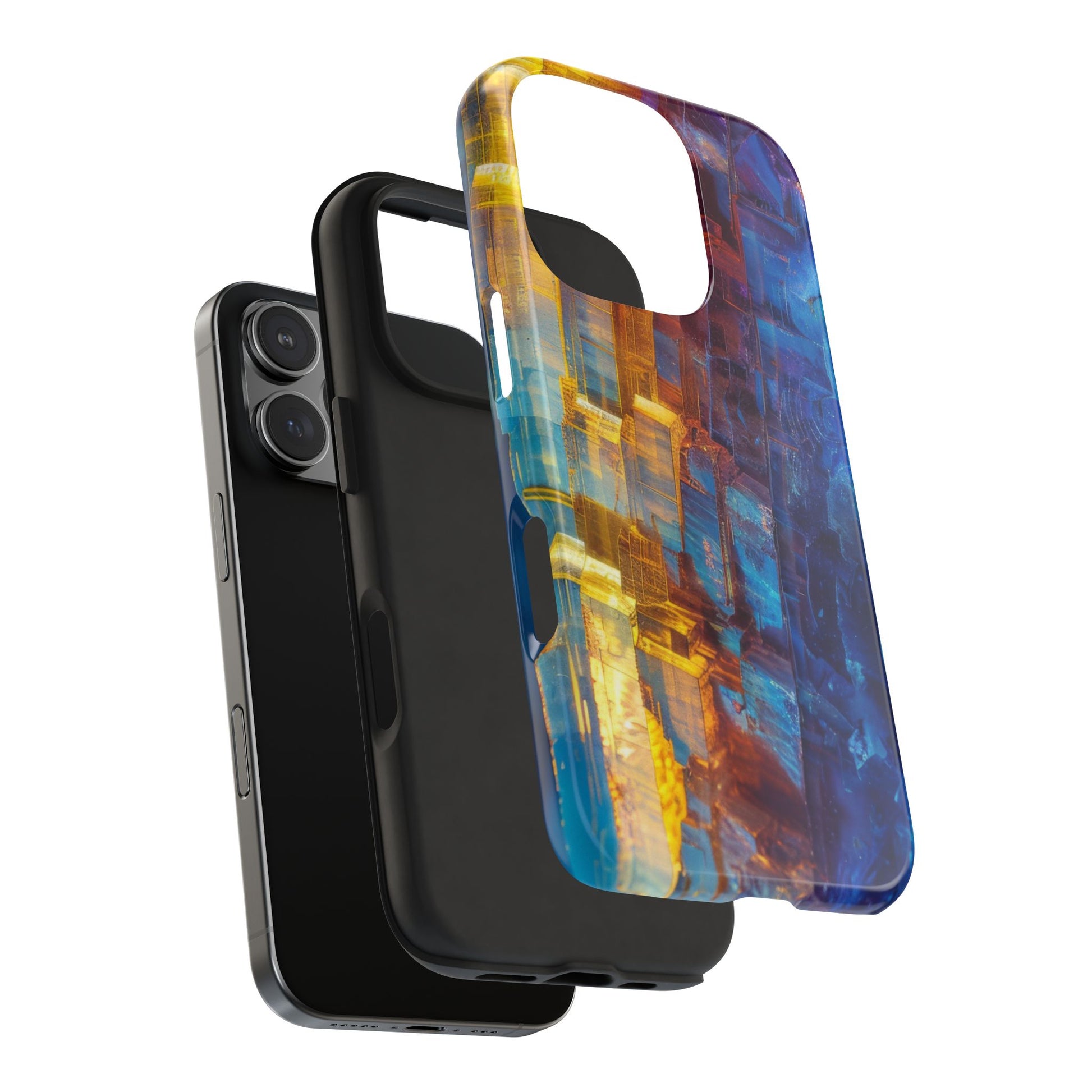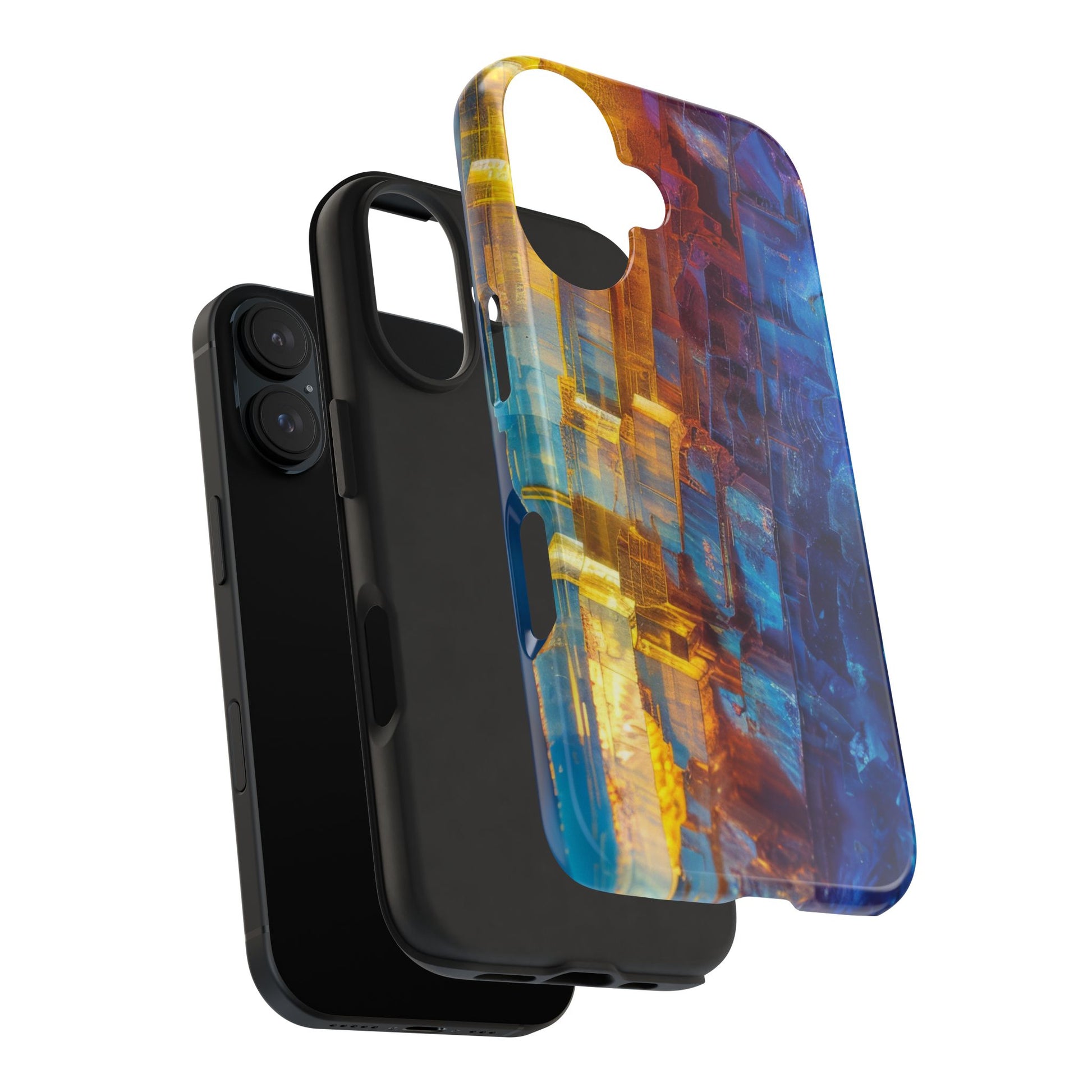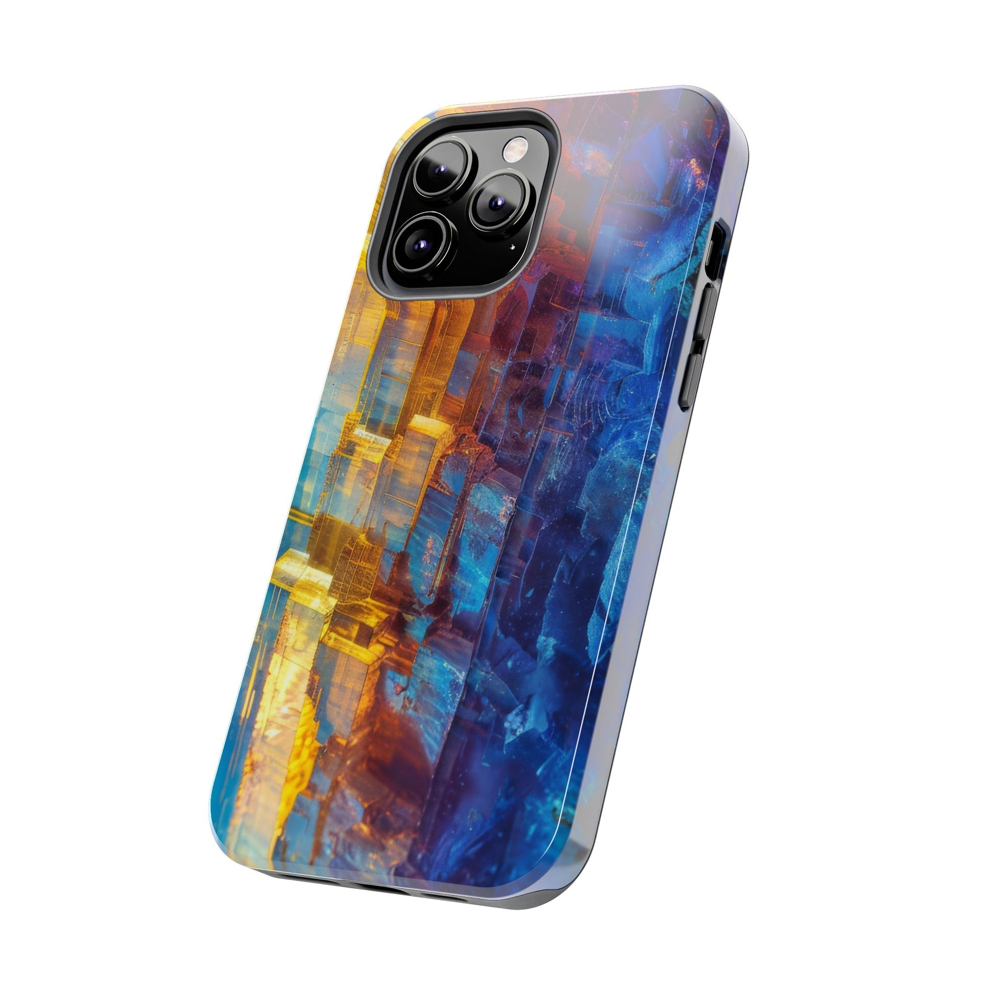 Transform your phone with our Vibrant Tough iPhone Case, featuring a captivating crystal design that blends striking shades of blue and orange. This eye-catching case combines style with strength, offering superior protection while making your device stand out. Perfect for those who love bold colors and want their phone to reflect their unique personality!