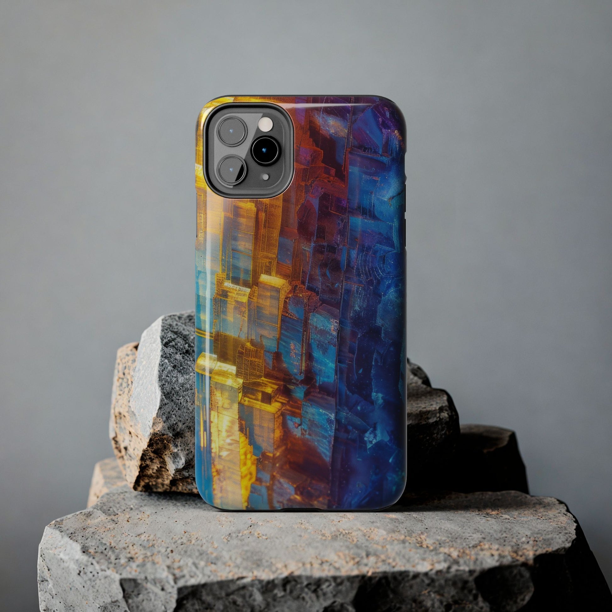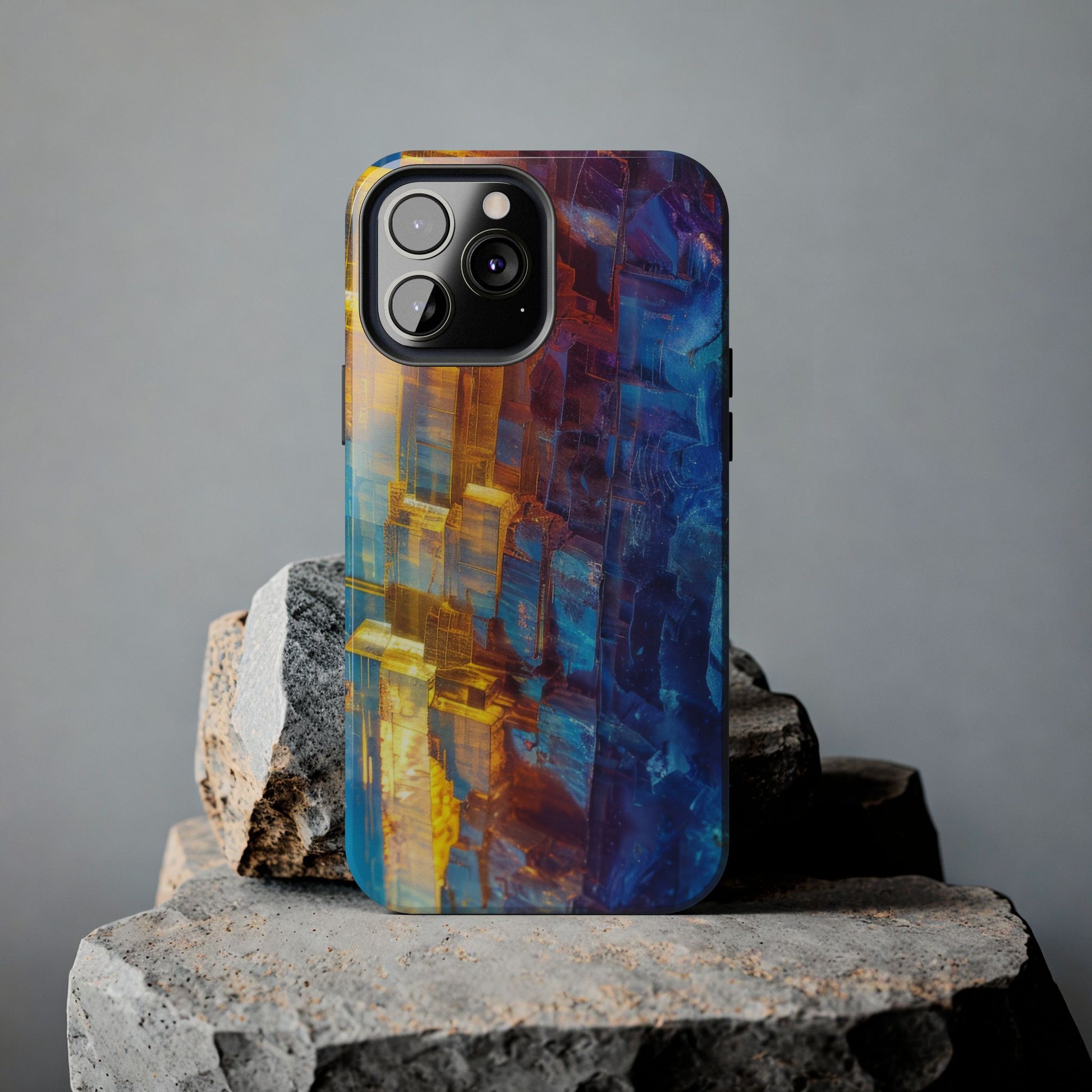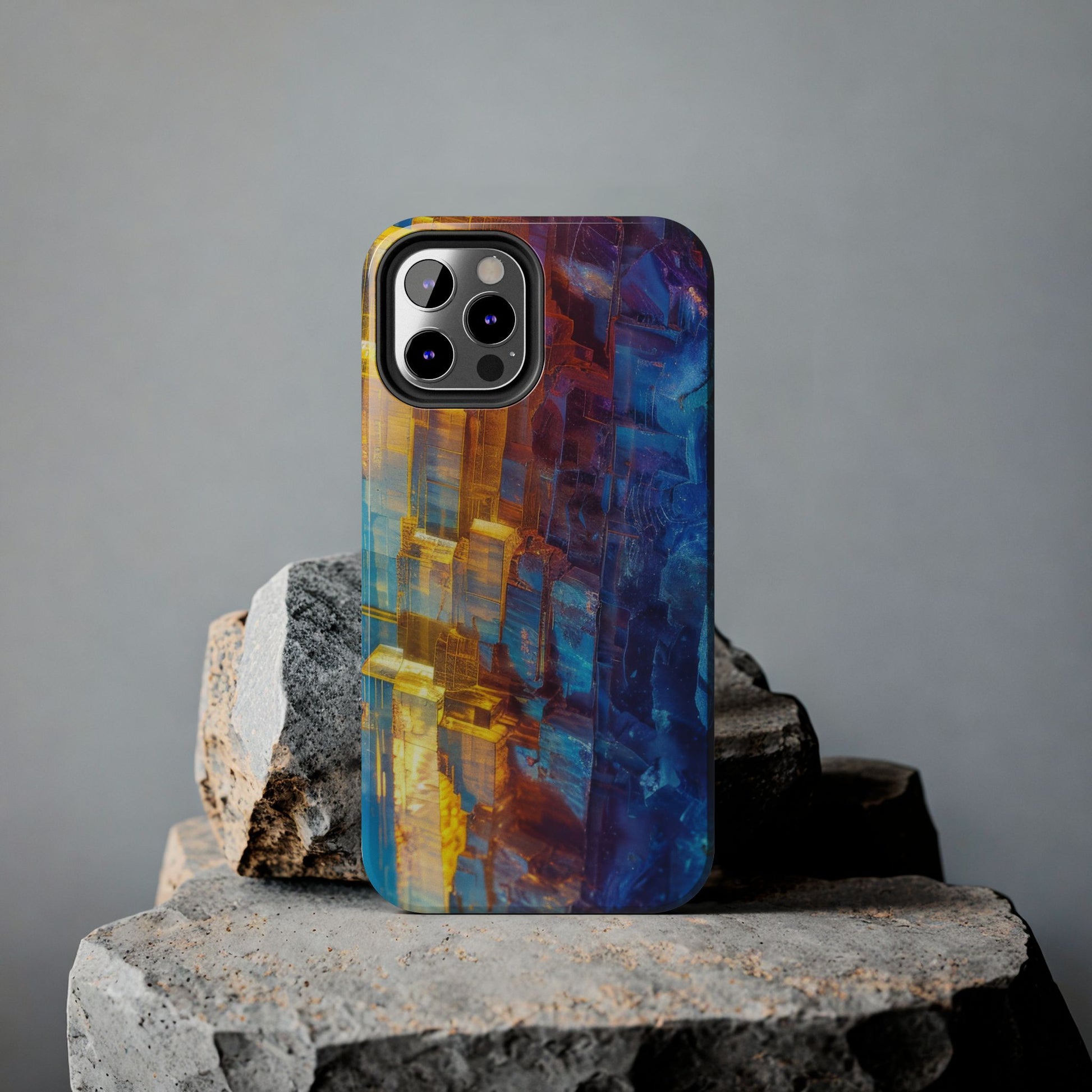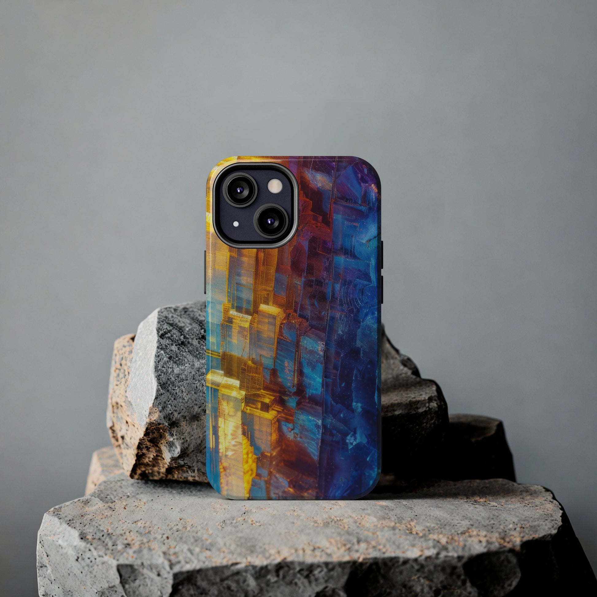 Transform your phone with our Vibrant Tough iPhone Case, featuring a captivating crystal design that blends striking shades of blue and orange. This eye-catching case combines style with strength, offering superior protection while making your device stand out. Perfect for those who love bold colors and want their phone to reflect their unique personality!
