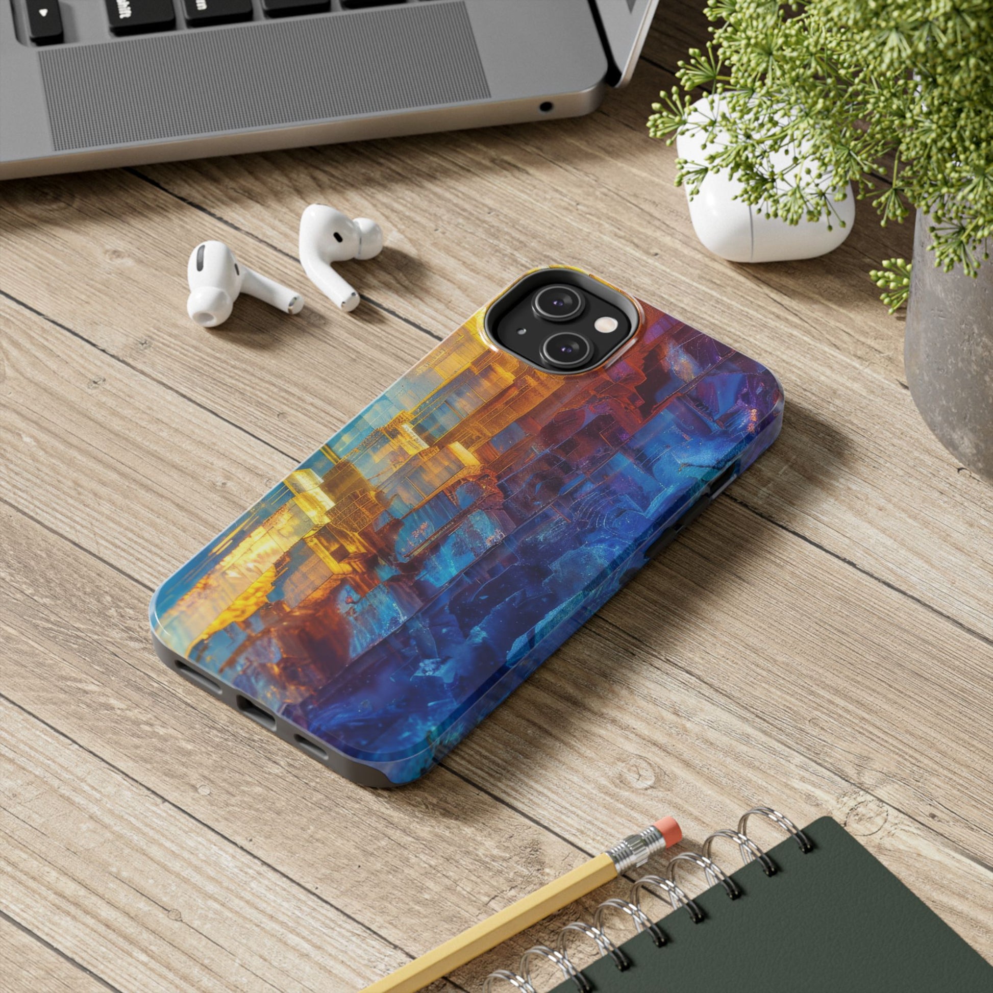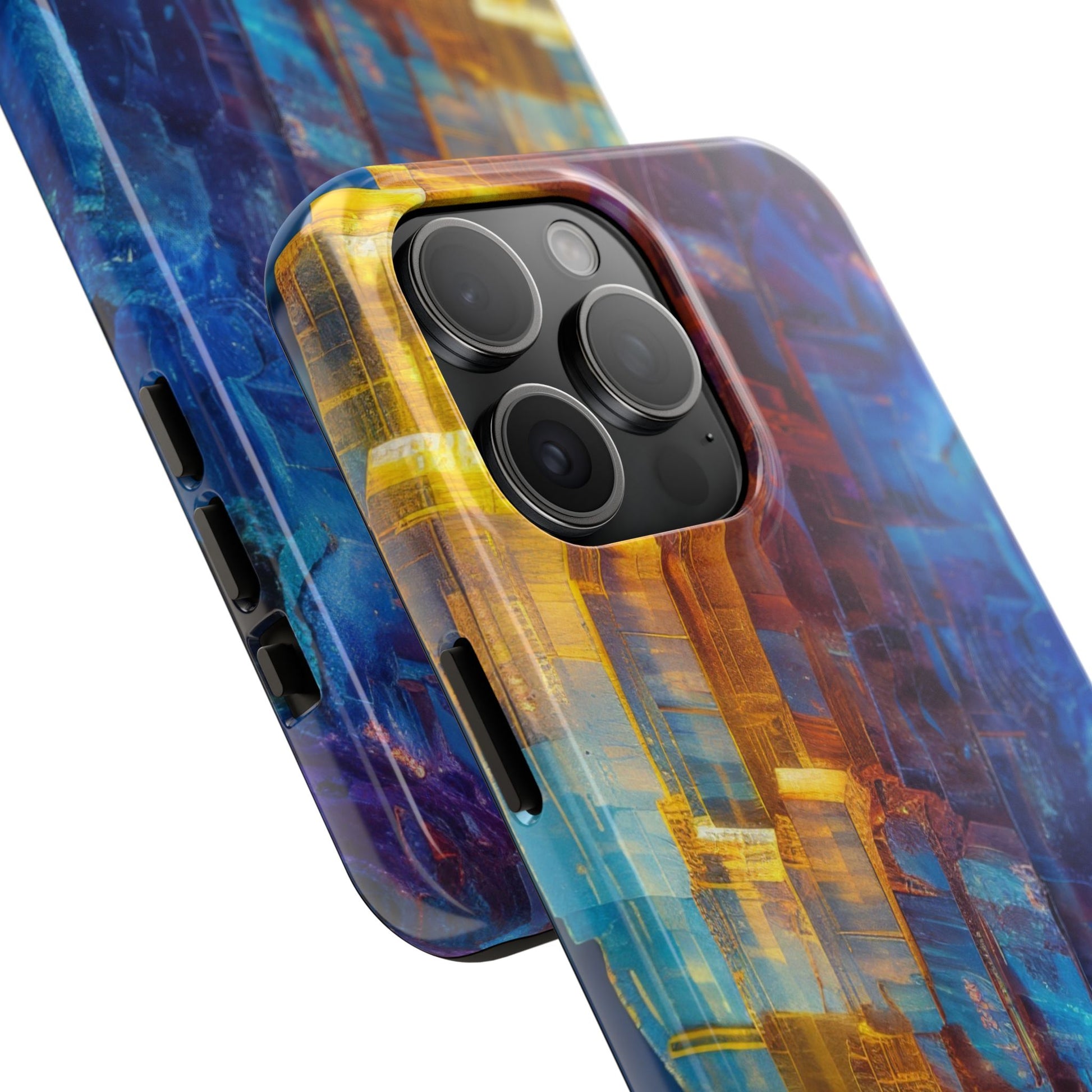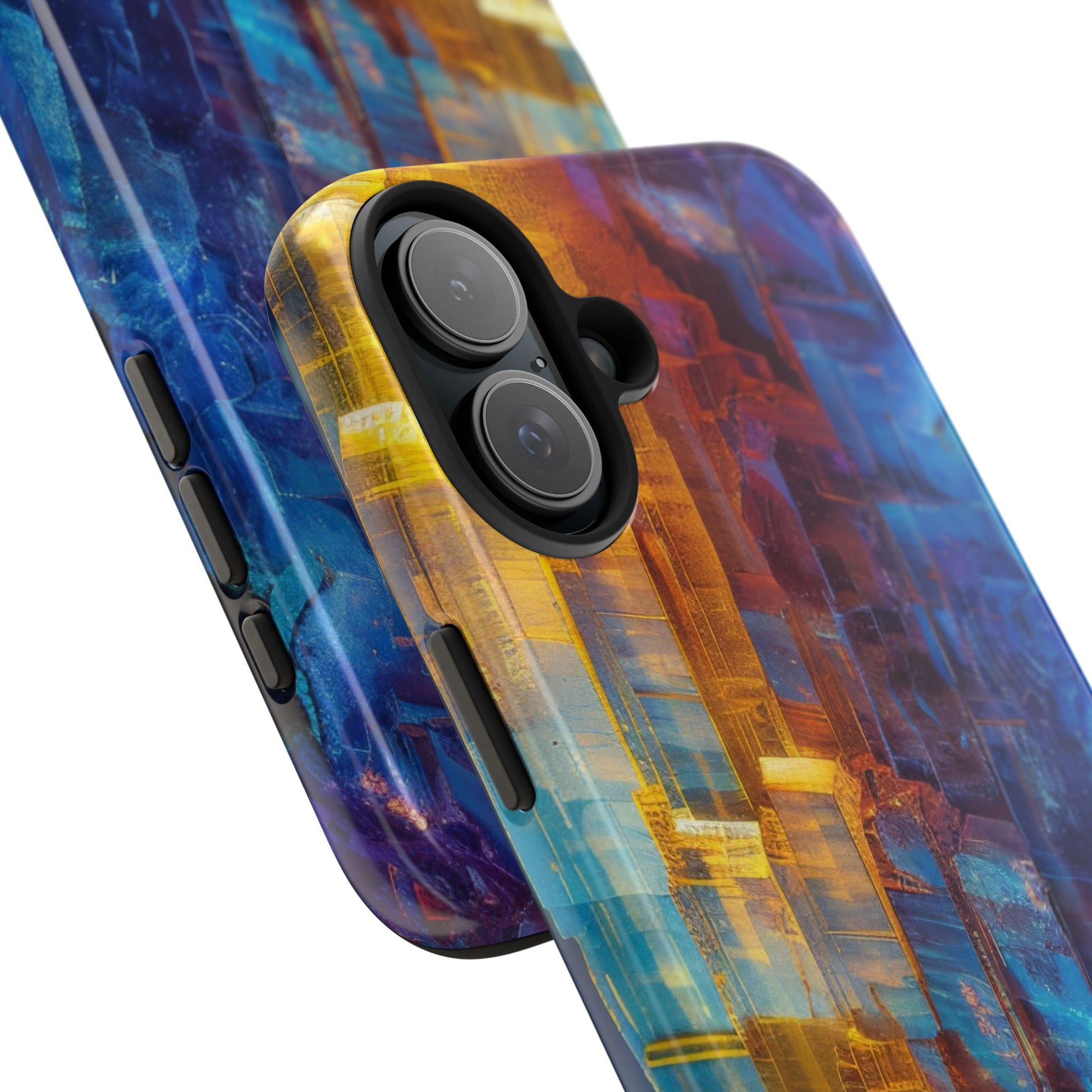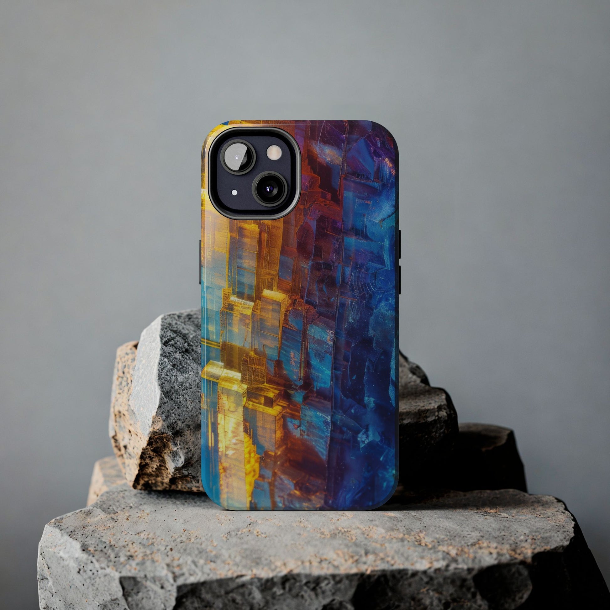 Transform your phone with our Vibrant Tough iPhone Case, featuring a captivating crystal design that blends striking shades of blue and orange. This eye-catching case combines style with strength, offering superior protection while making your device stand out. Perfect for those who love bold colors and want their phone to reflect their unique personality!
