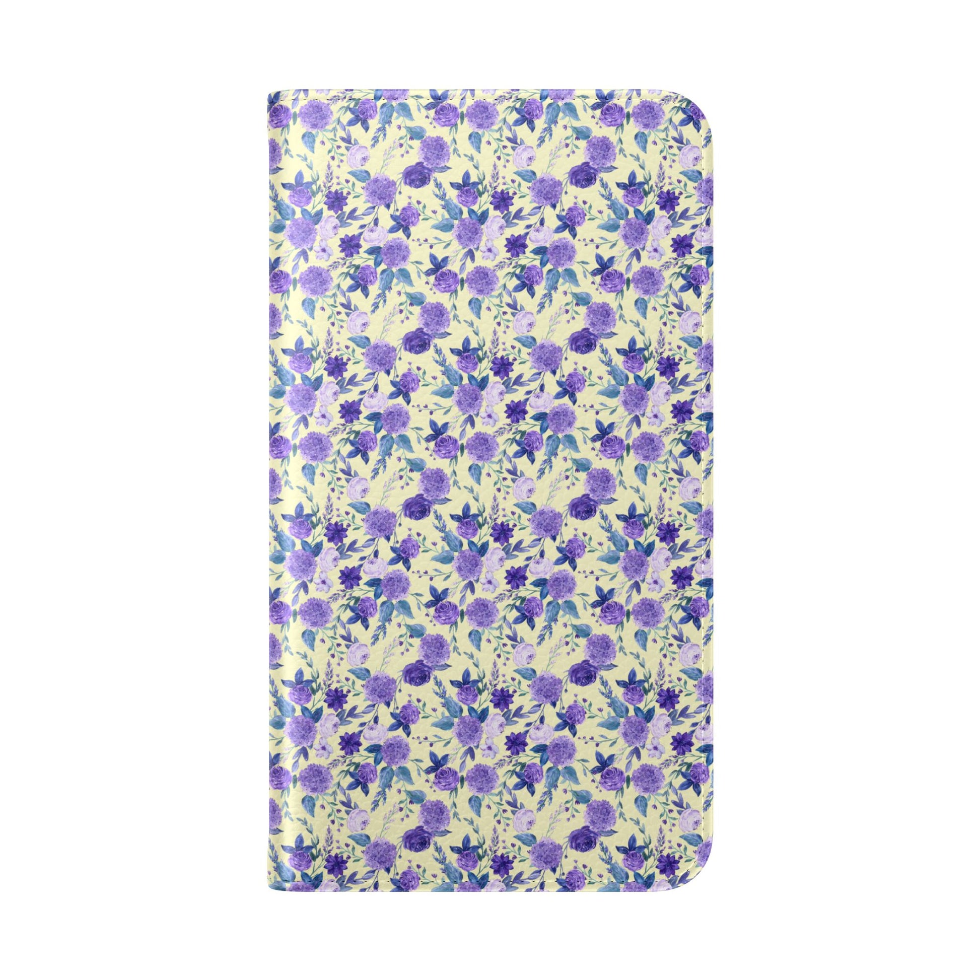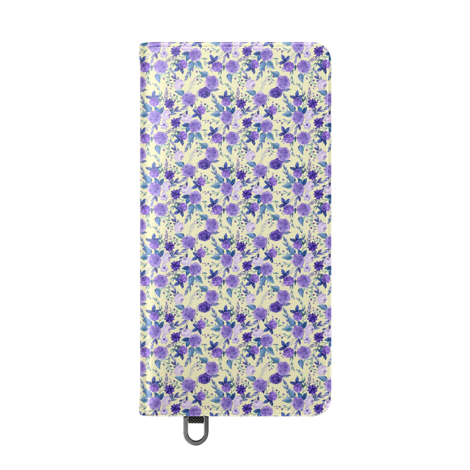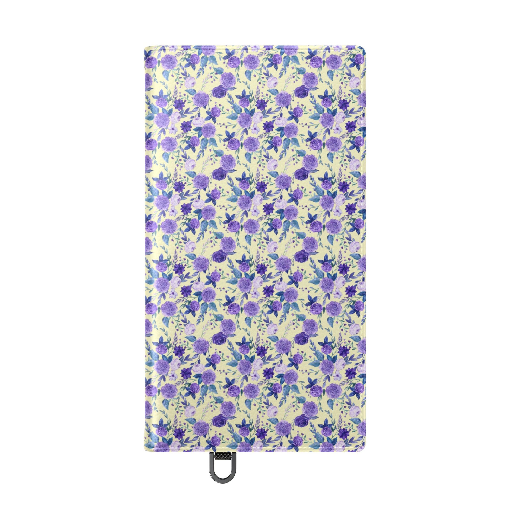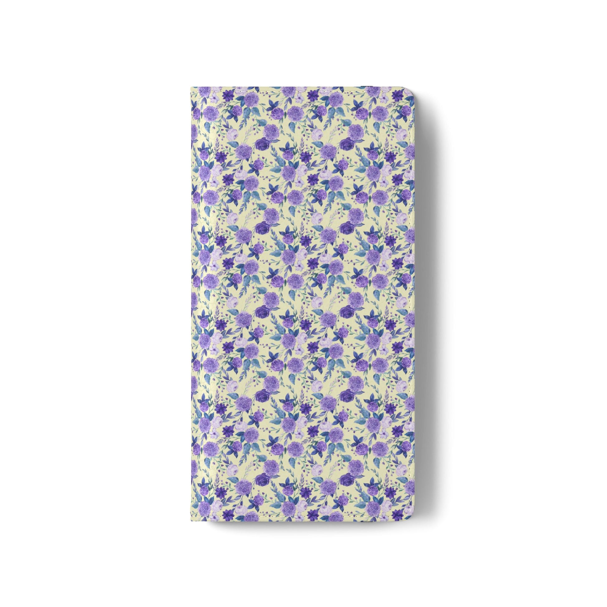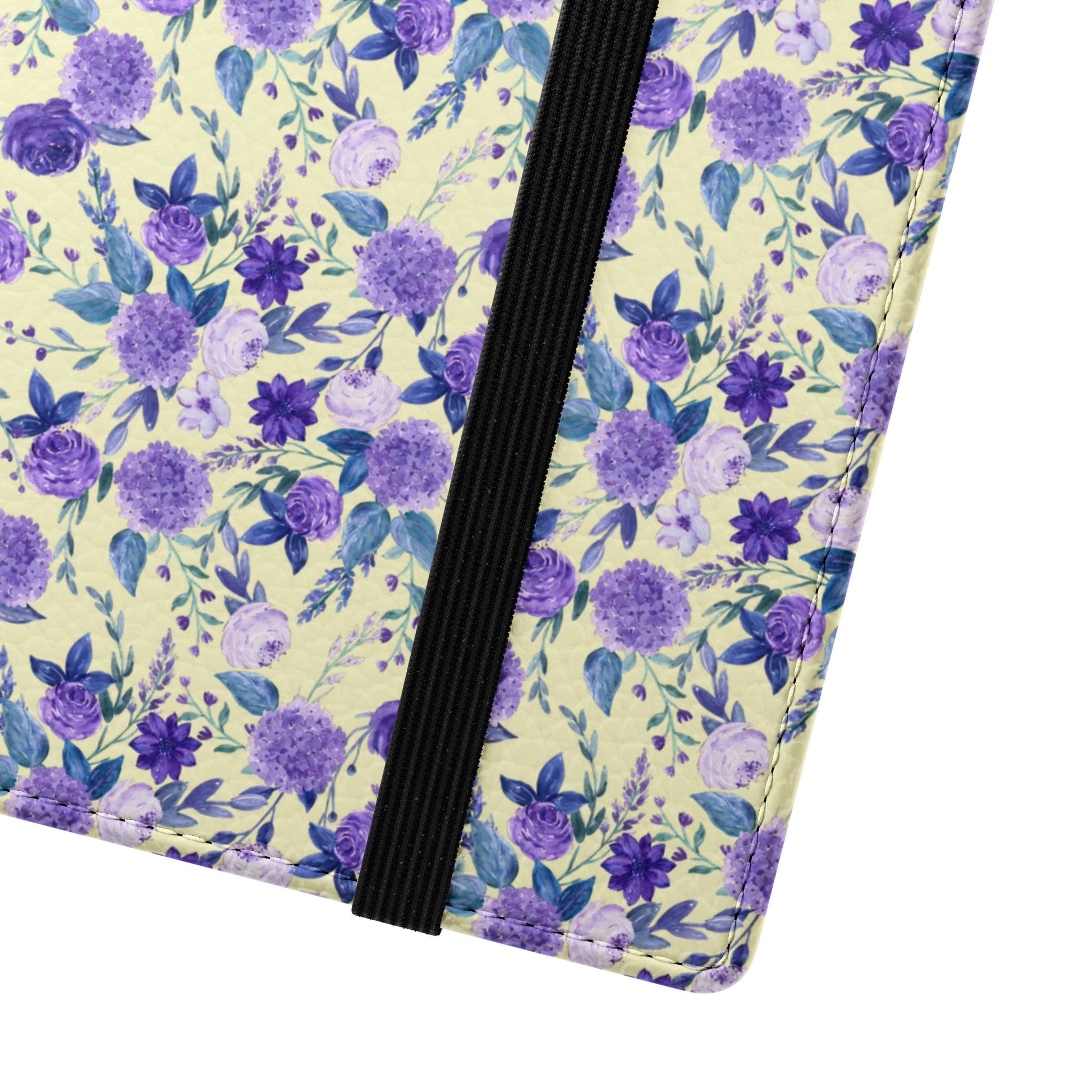 Violet phone cases with convenient compartments for cards and cash. Made from cruelty-free faux leather, perfect for adults. Features a D-ring for straps and stand for media viewing. Ideal for Samsung Galaxy models.