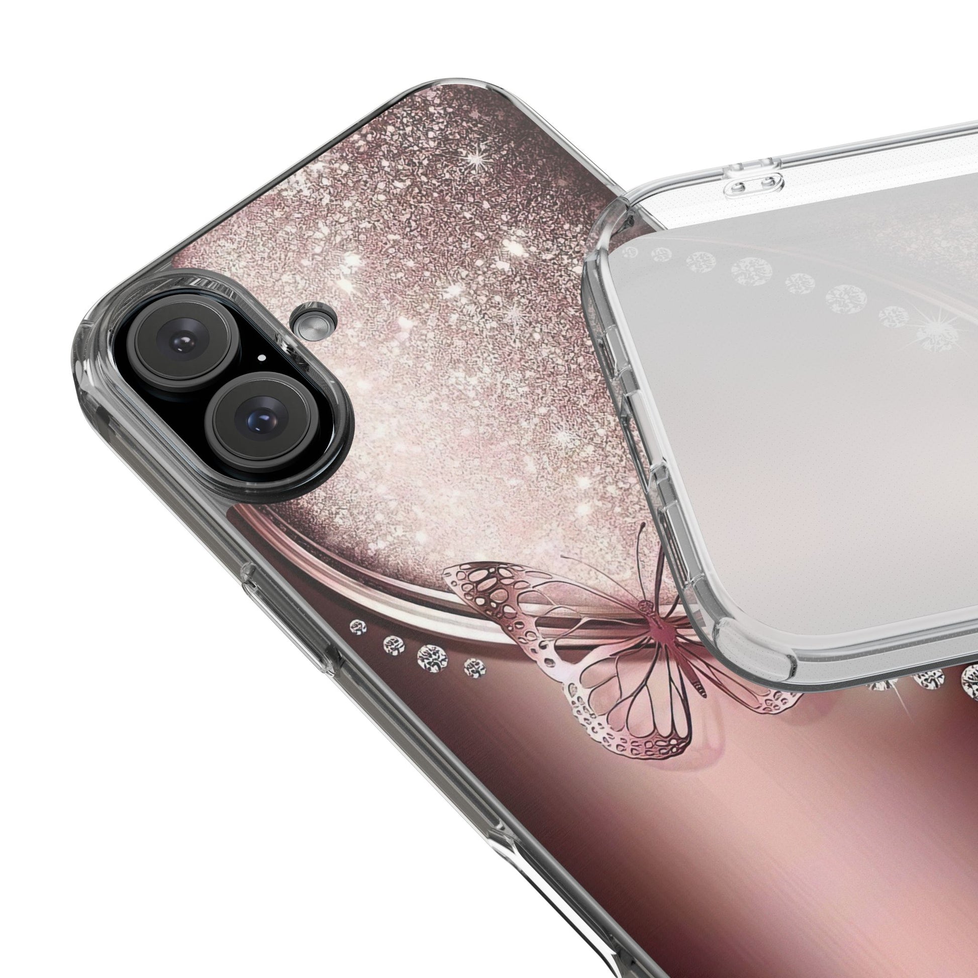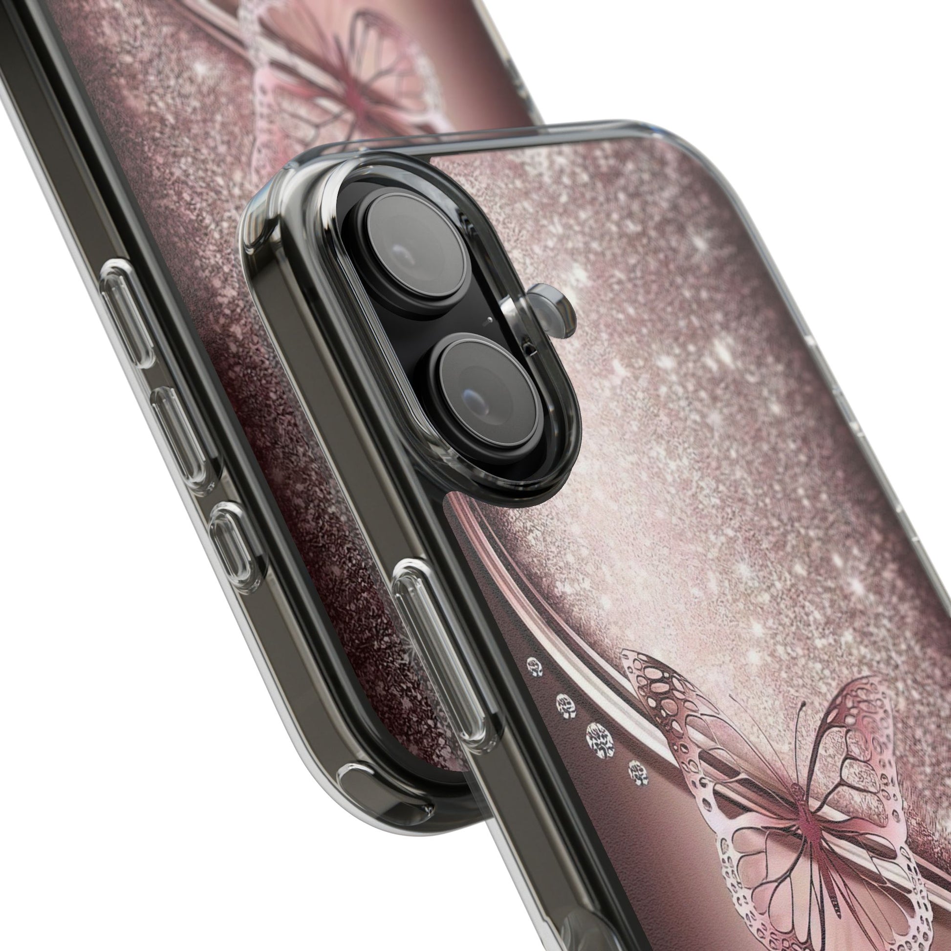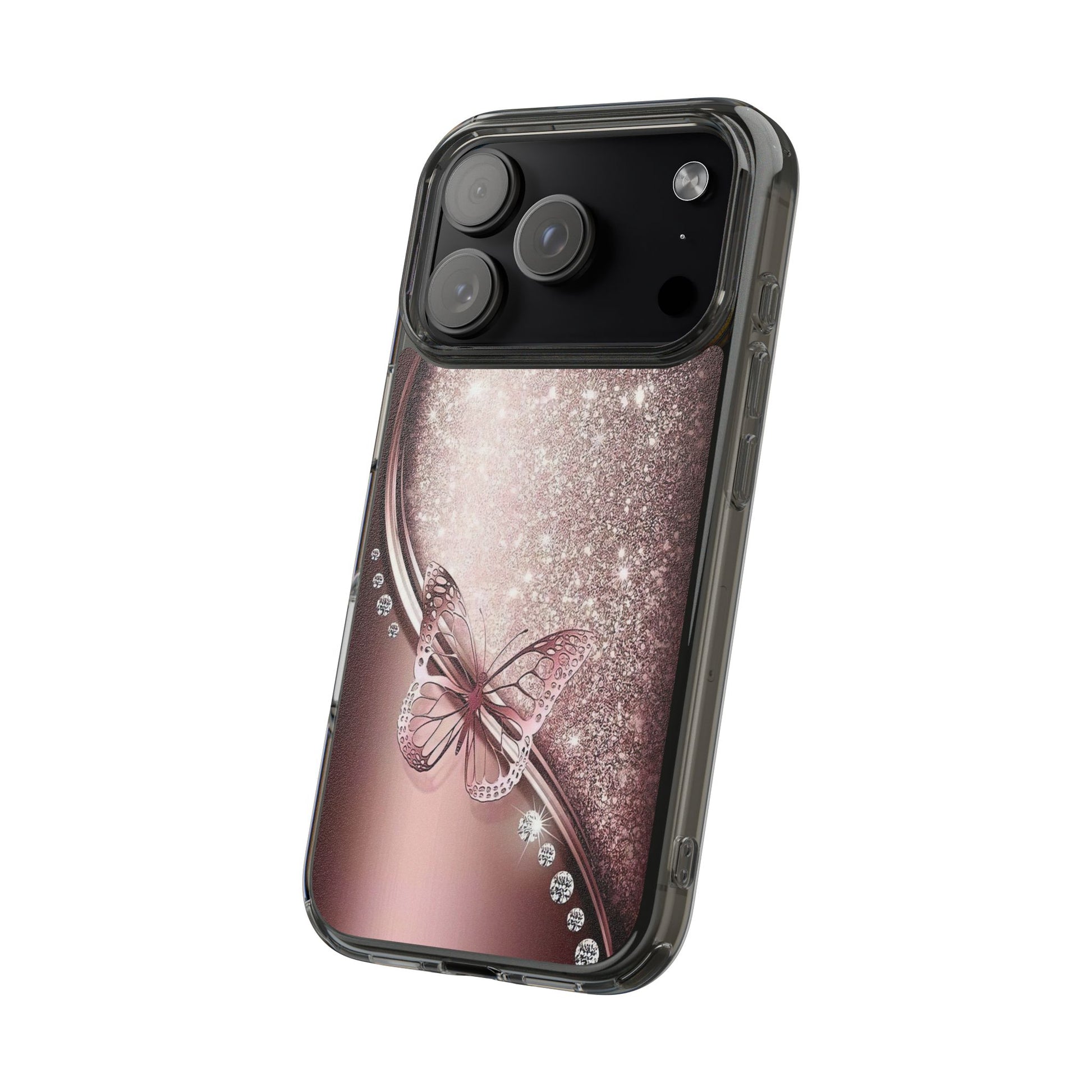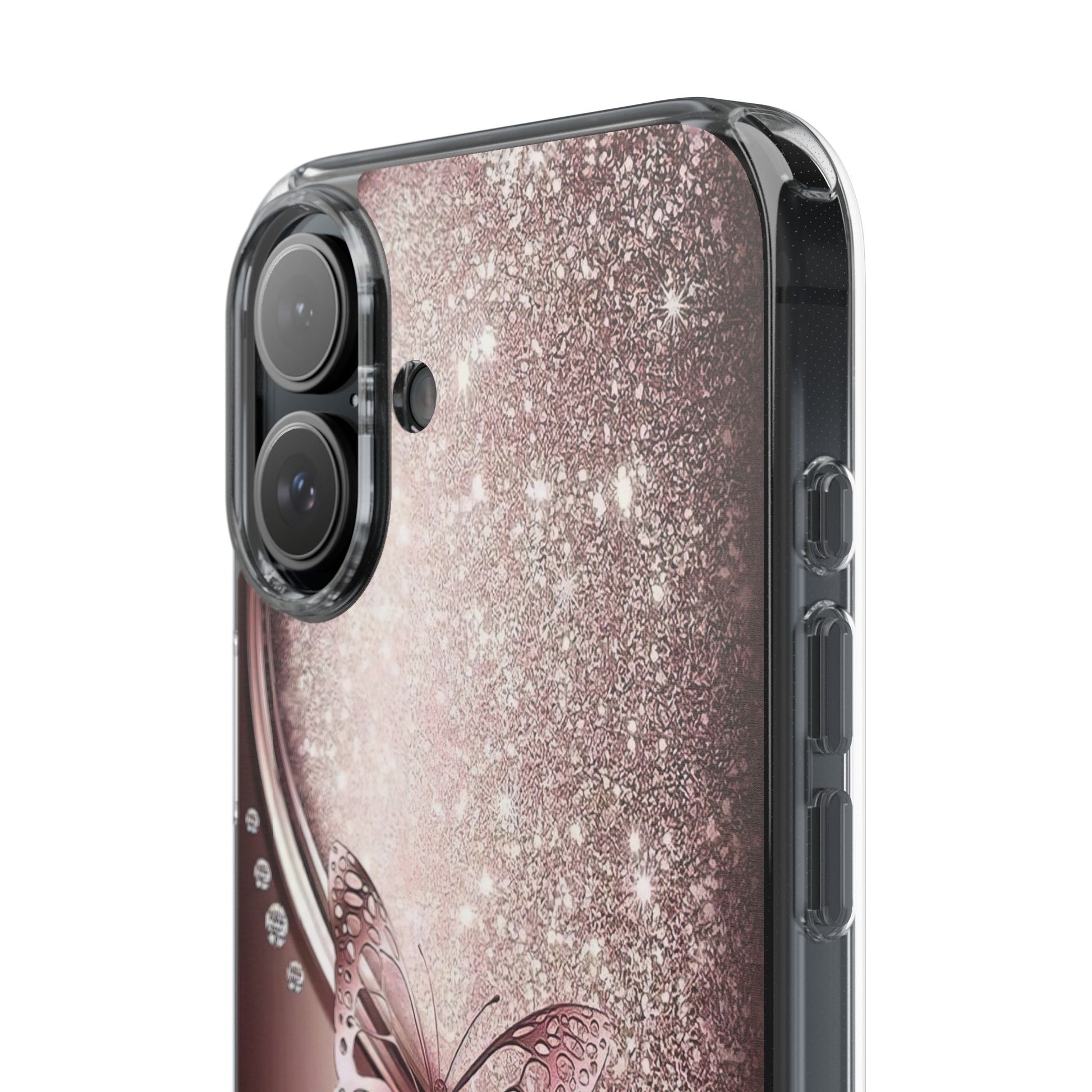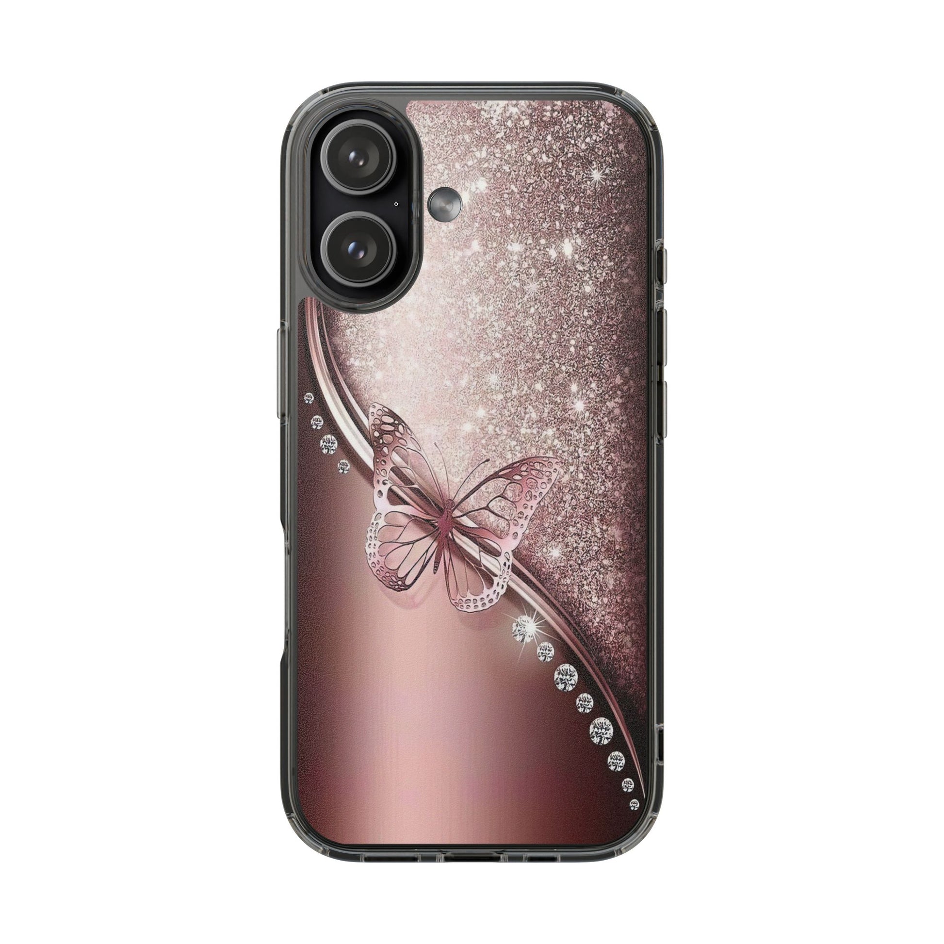 Add a touch of elegance and sparkle to your iPhone with the Elegant Butterfly Clear Case - stylish blend of protection and glamour. Featuring a transparent body with a chic glittery butterfly design, this case enhances your phone’s natural beauty while offering reliable coverage against everyday bumps and scratches. Crafted from durable polycarbonate with vibrant, photorealistic printing, it’s perfect for fashion-forward women who want their tech to shine. Lightweight and slim, it’s wireless charging compatible and fits seamlessly into any lifestyle - whether you're headed to class, the office, or a night out. An ideal gift for birthdays, holidays, or just because.