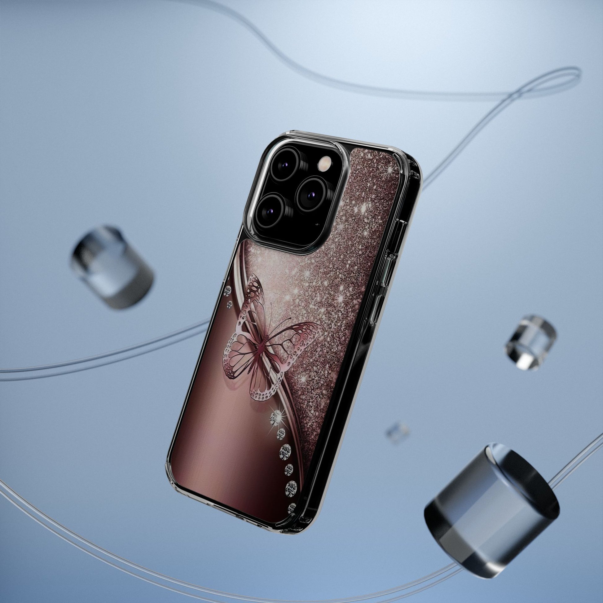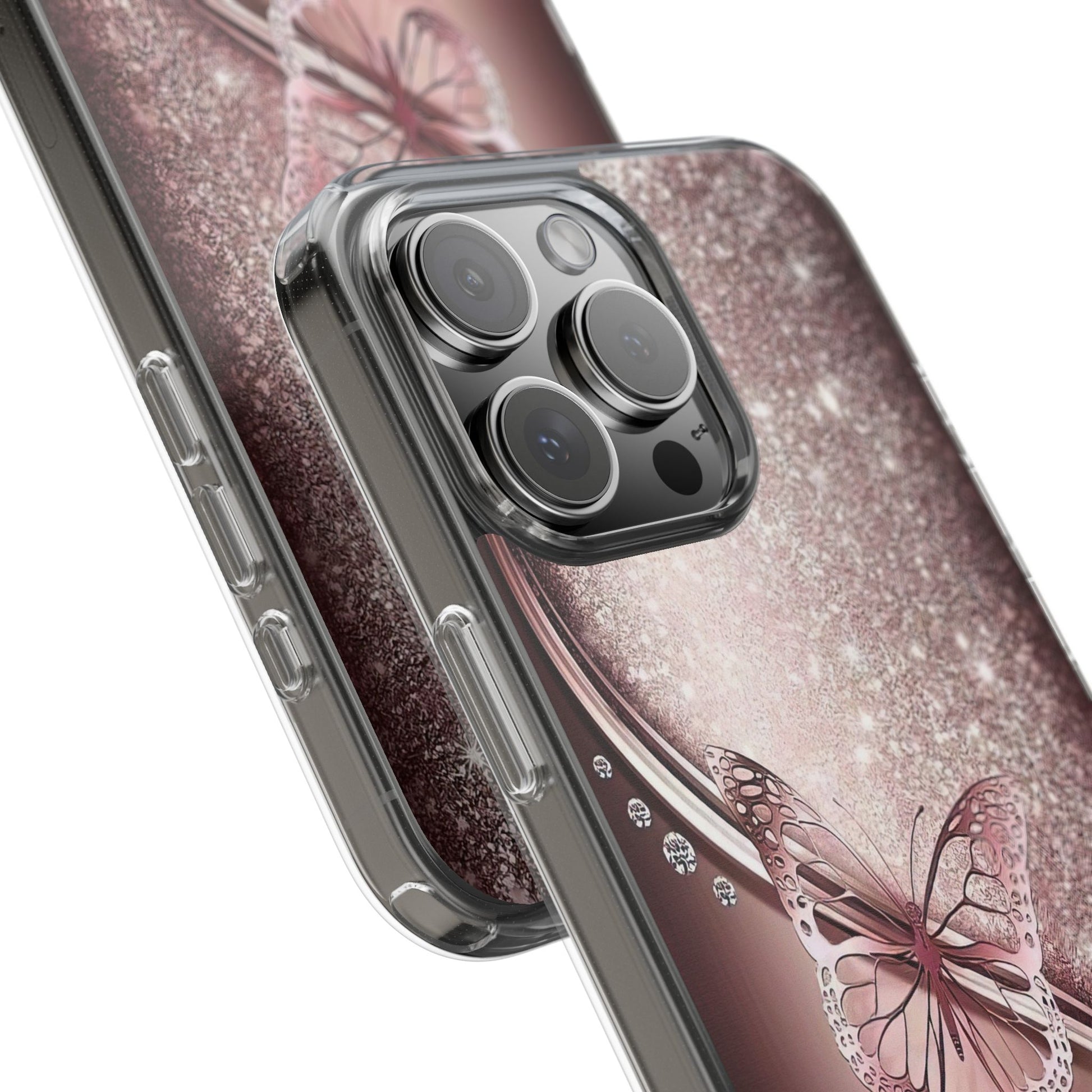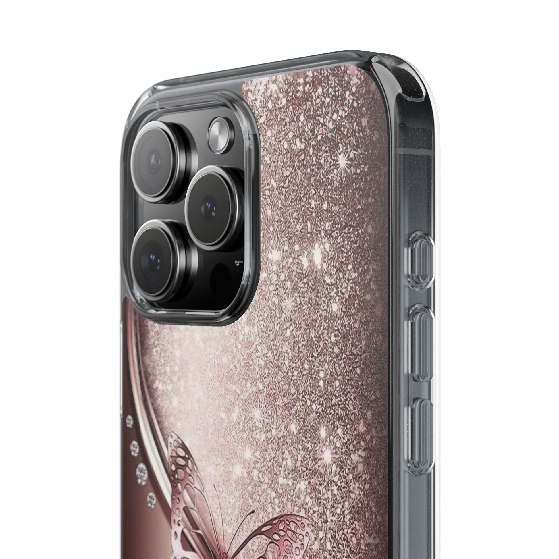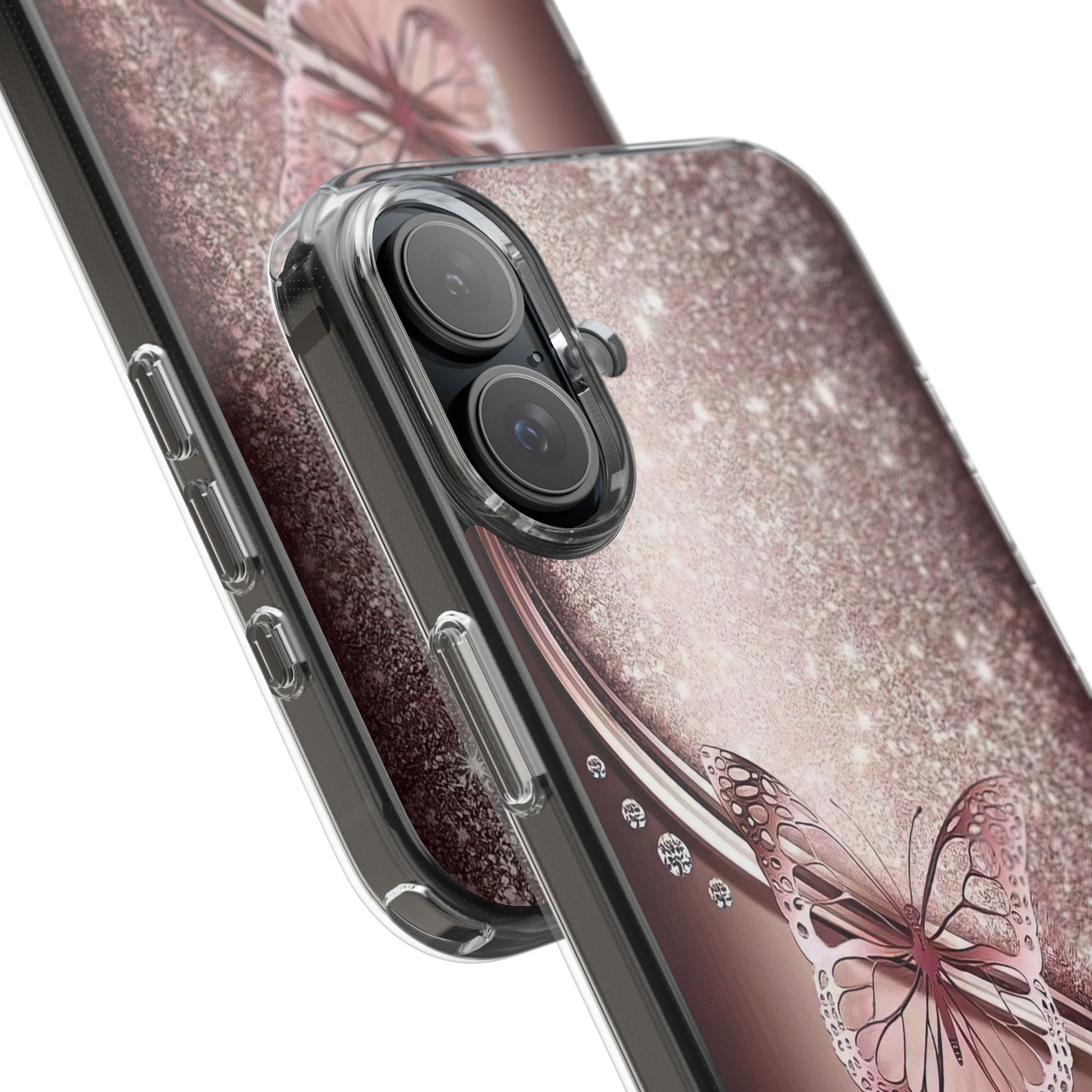 Add a touch of elegance and sparkle to your iPhone with the Elegant Butterfly Clear Case - stylish blend of protection and glamour. Featuring a transparent body with a chic glittery butterfly design, this case enhances your phone’s natural beauty while offering reliable coverage against everyday bumps and scratches. Crafted from durable polycarbonate with vibrant, photorealistic printing, it’s perfect for fashion-forward women who want their tech to shine. Lightweight and slim, it’s wireless charging compatible and fits seamlessly into any lifestyle - whether you're headed to class, the office, or a night out. An ideal gift for birthdays, holidays, or just because.