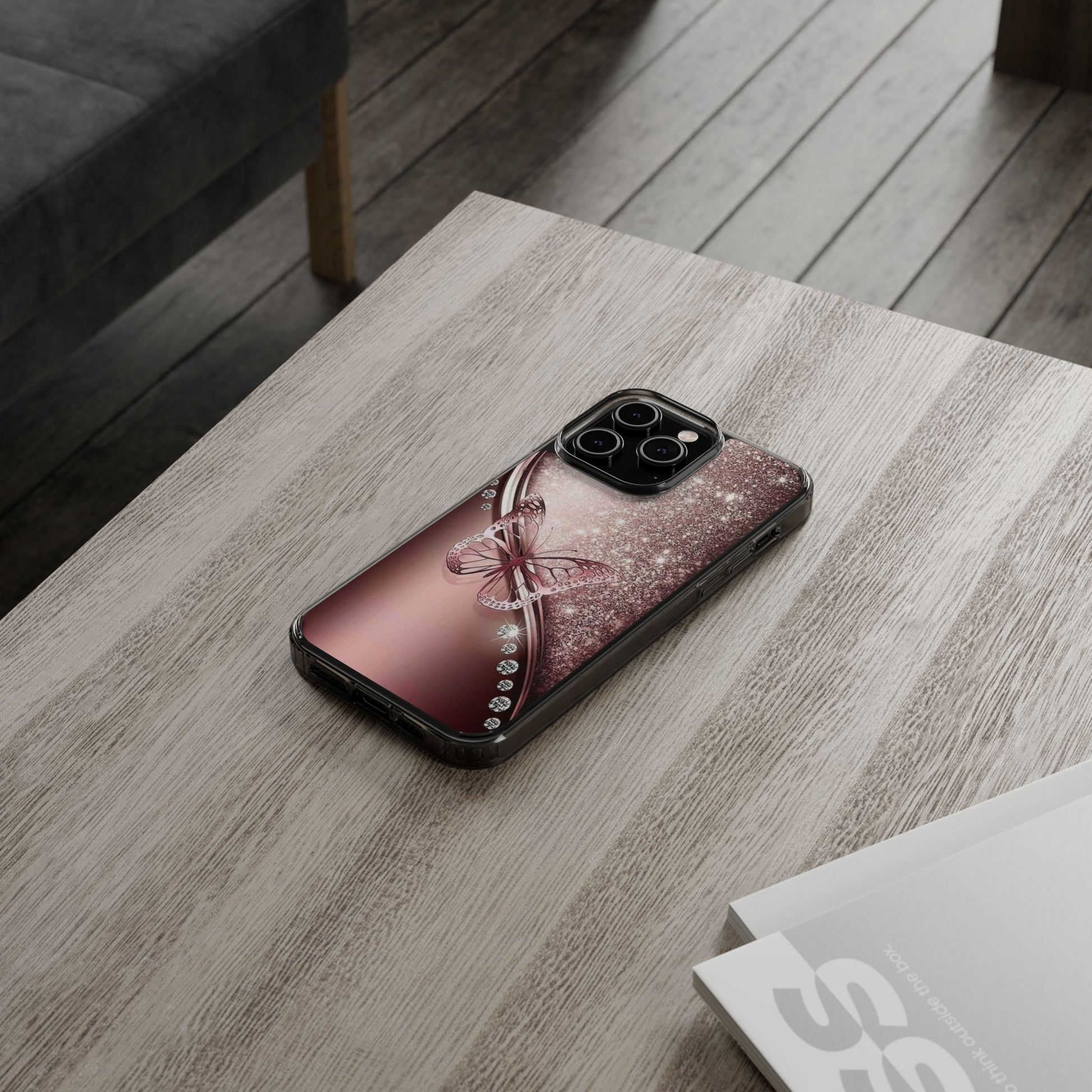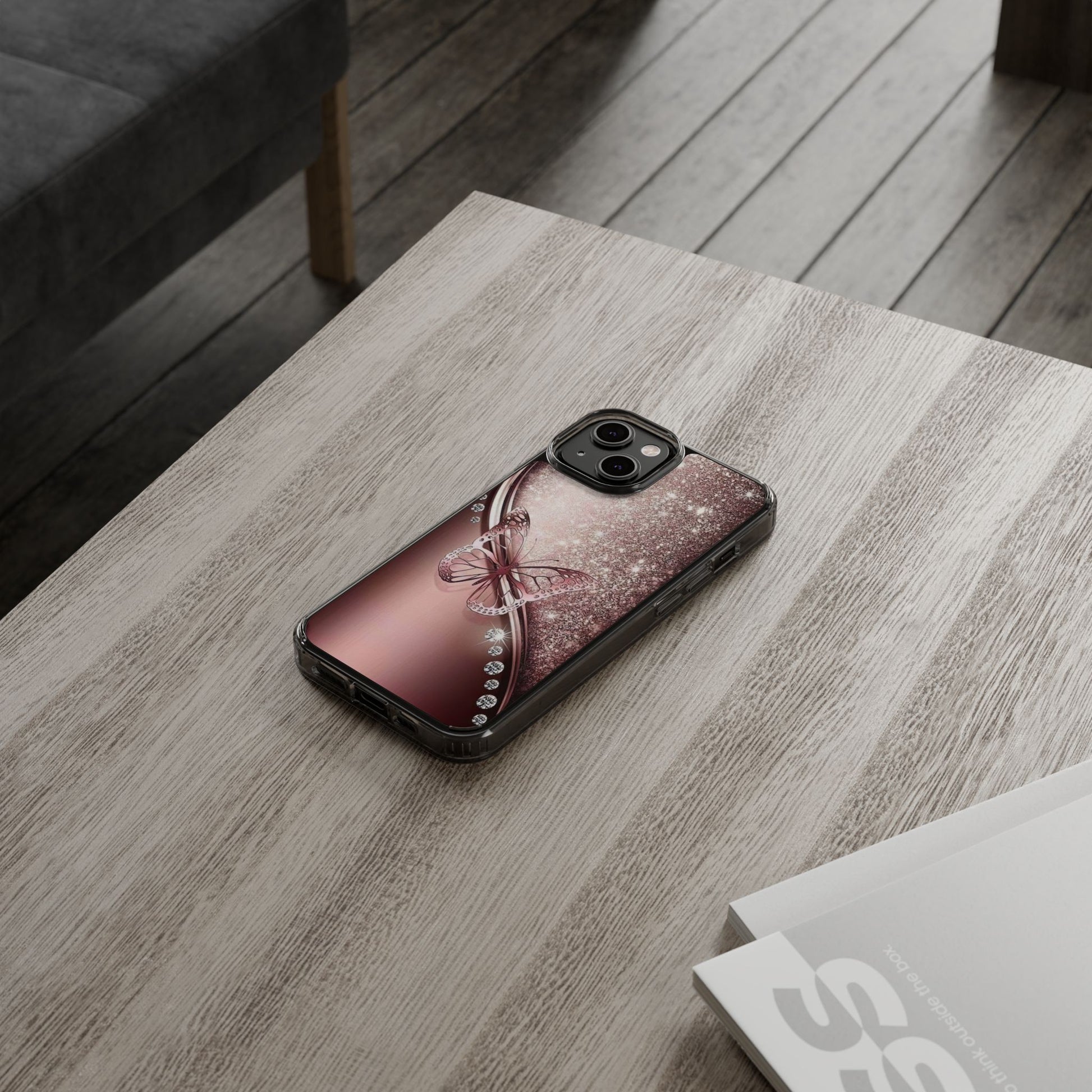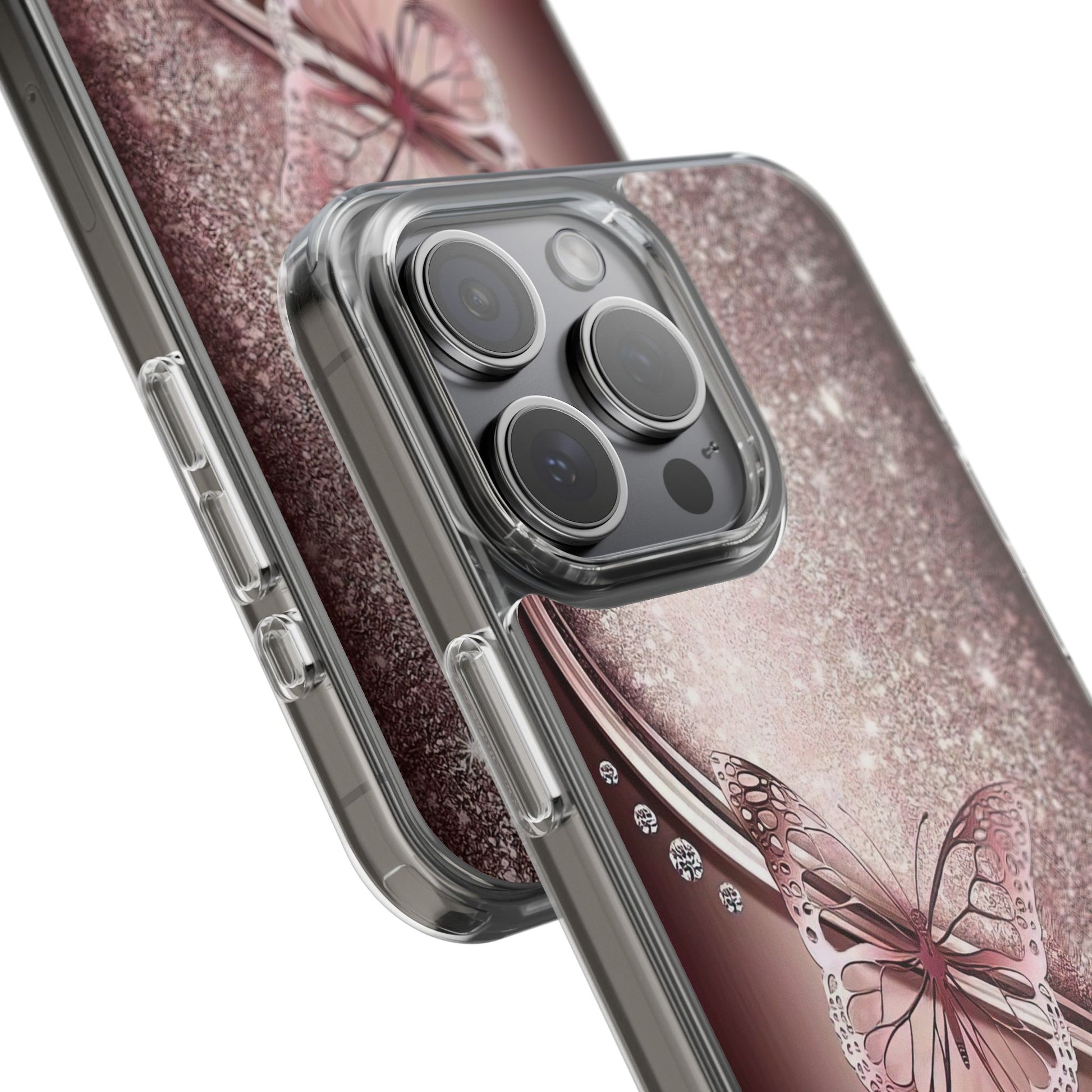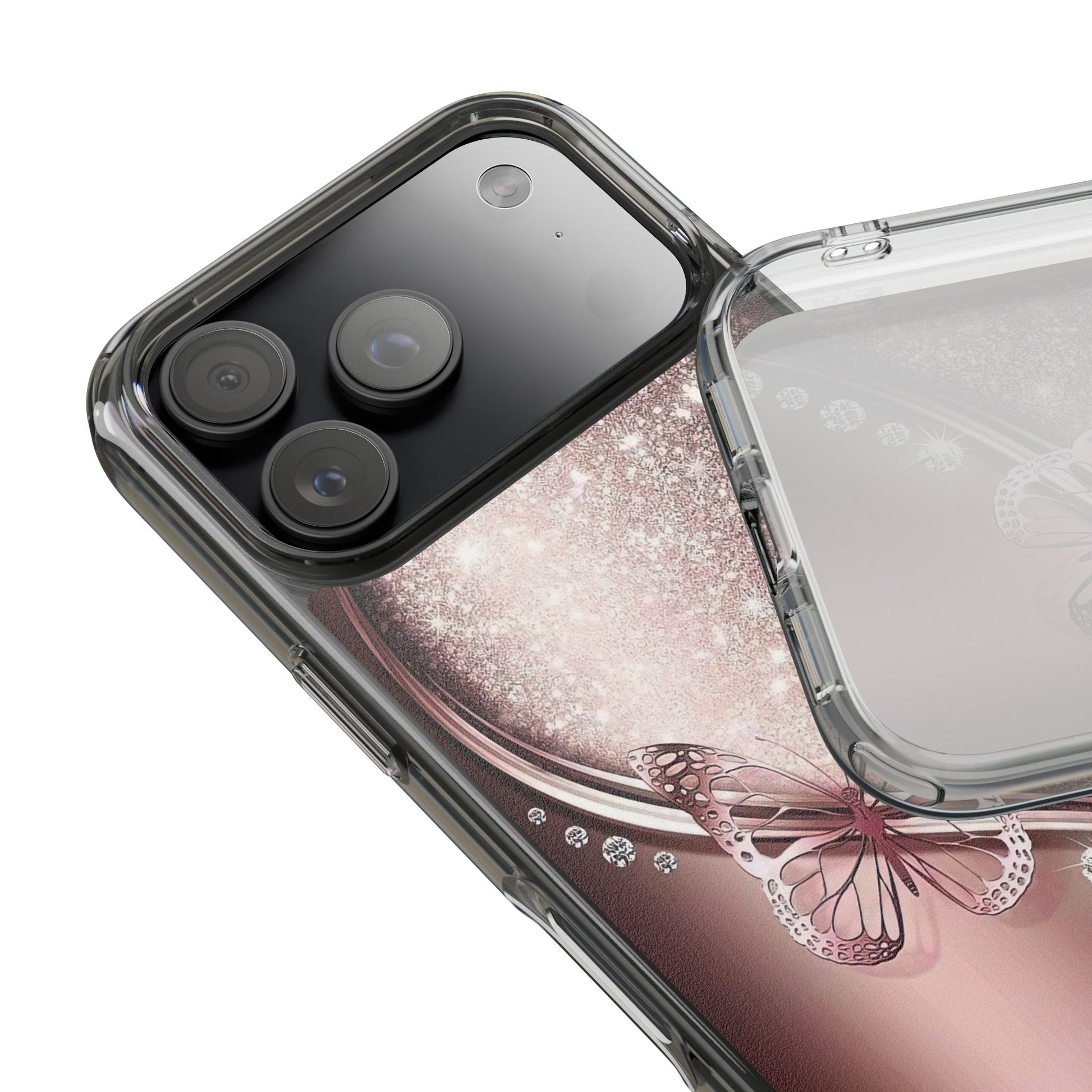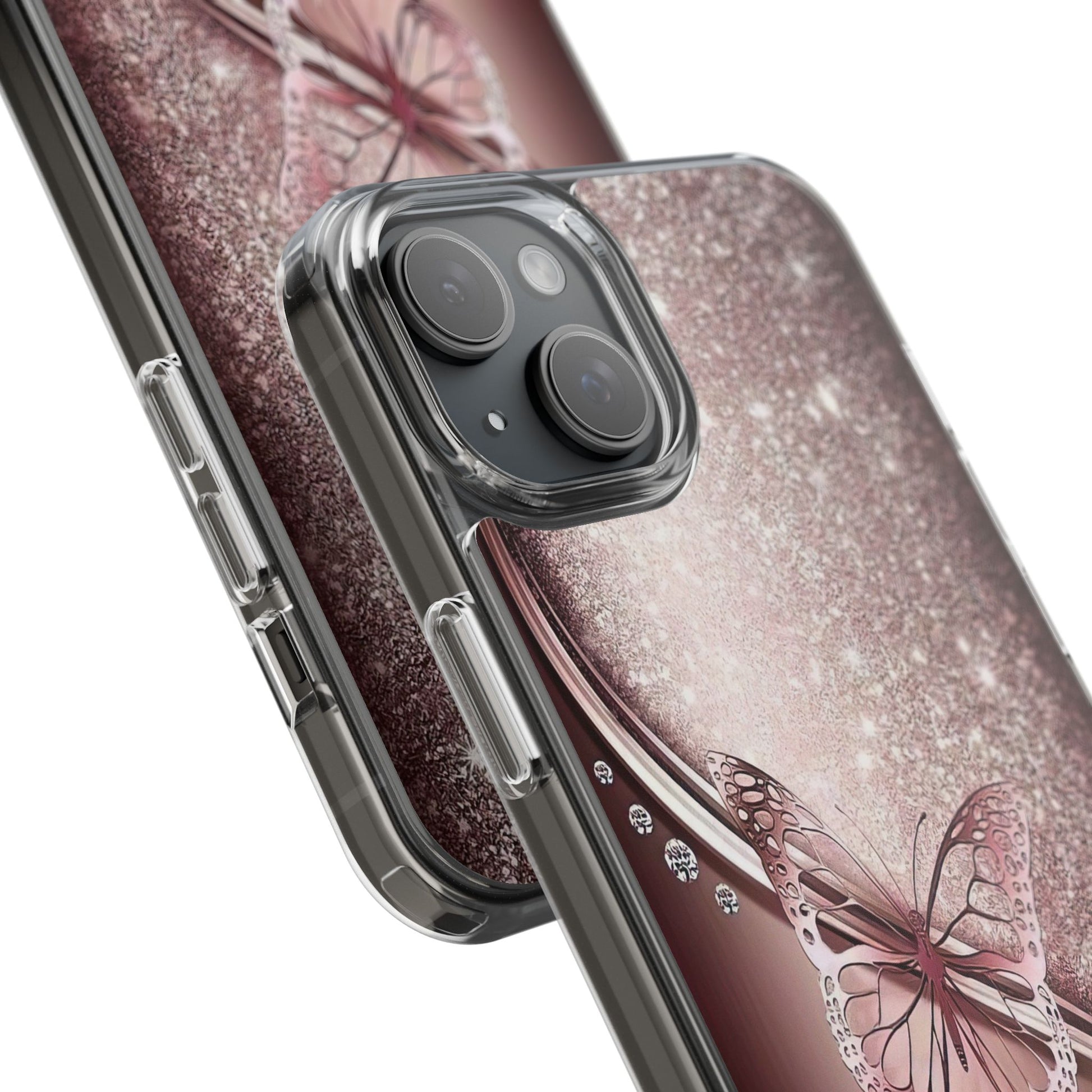Add a touch of elegance and sparkle to your iPhone with the Elegant Butterfly Clear Case - stylish blend of protection and glamour. Featuring a transparent body with a chic glittery butterfly design, this case enhances your phone’s natural beauty while offering reliable coverage against everyday bumps and scratches. Crafted from durable polycarbonate with vibrant, photorealistic printing, it’s perfect for fashion-forward women who want their tech to shine. Lightweight and slim, it’s wireless charging compatible and fits seamlessly into any lifestyle - whether you're headed to class, the office, or a night out. An ideal gift for birthdays, holidays, or just because.