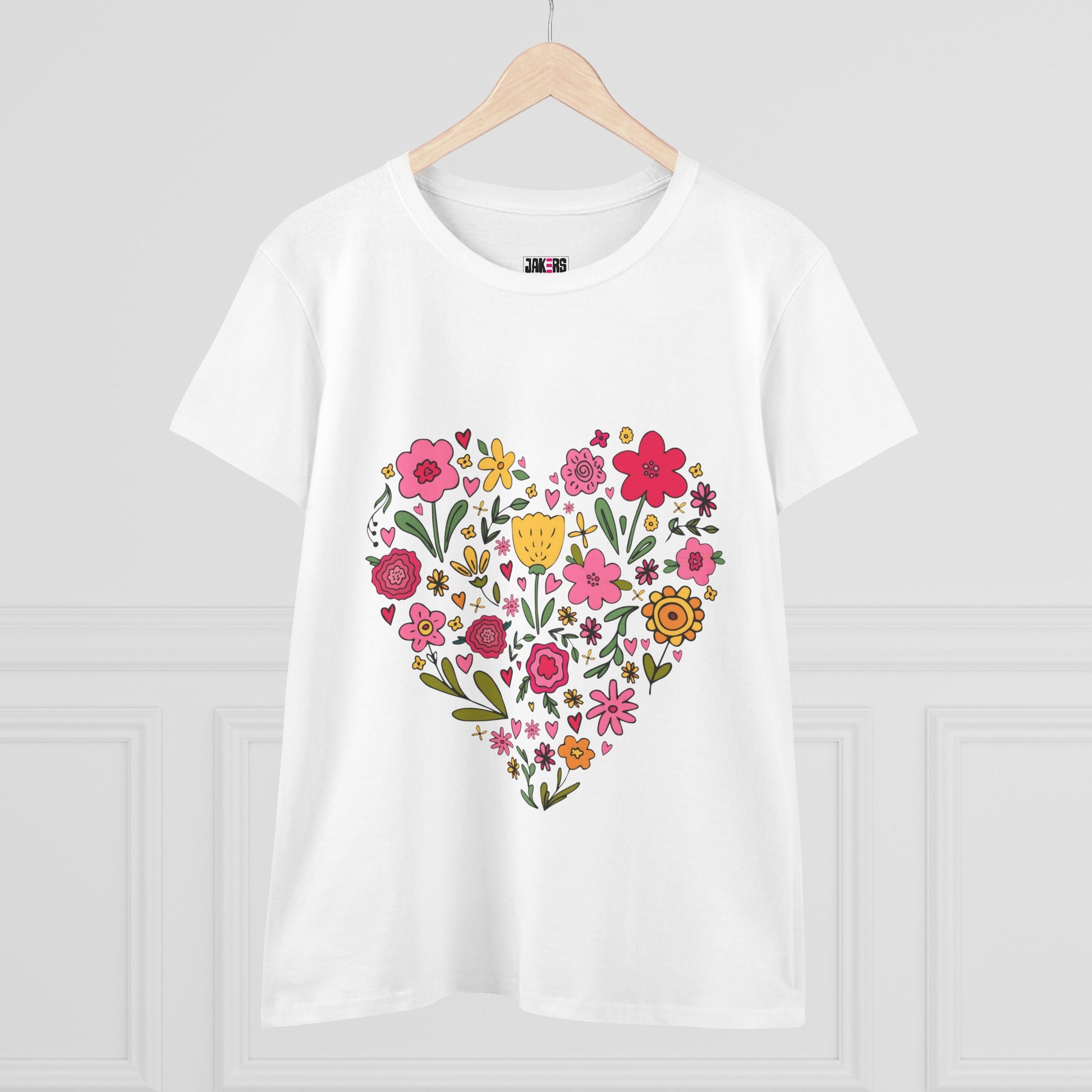 Floral Heart Women's Cotton Tee - Cute Everyday T-Shirt