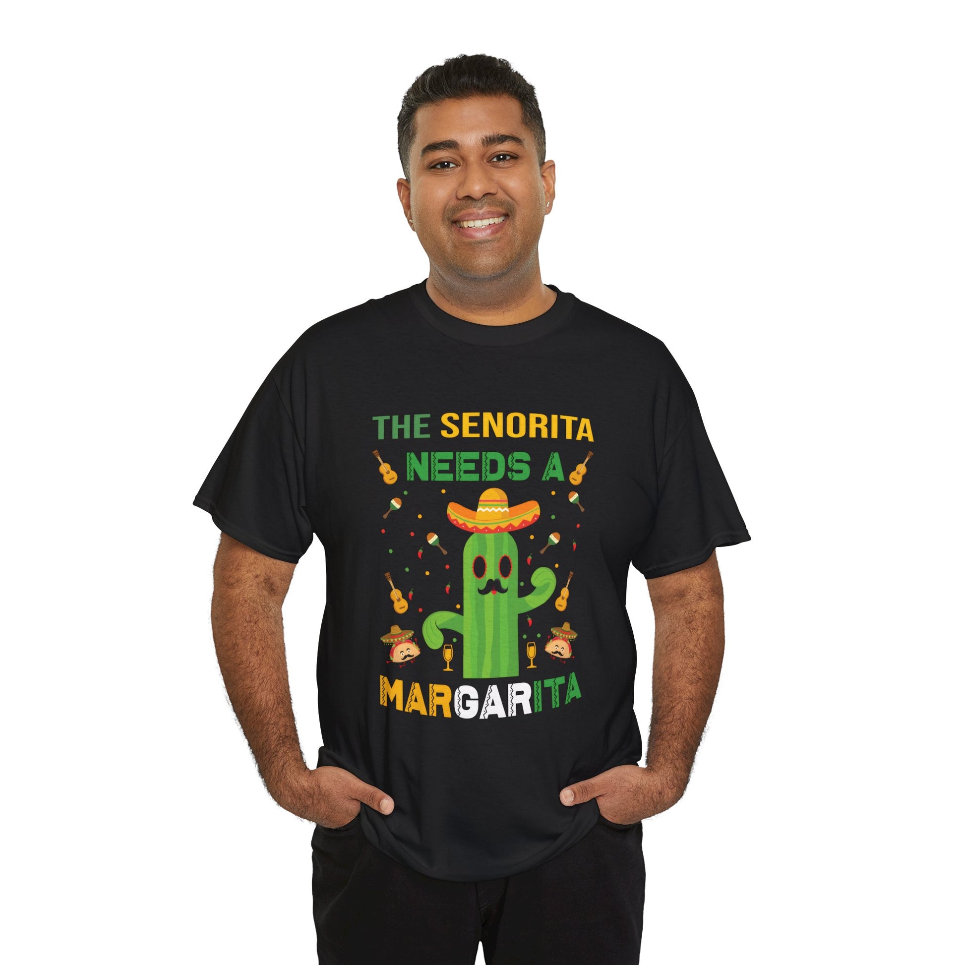 Funny Unisex Heavy Cotton Tee - "The Senorita Needs a Margarita"