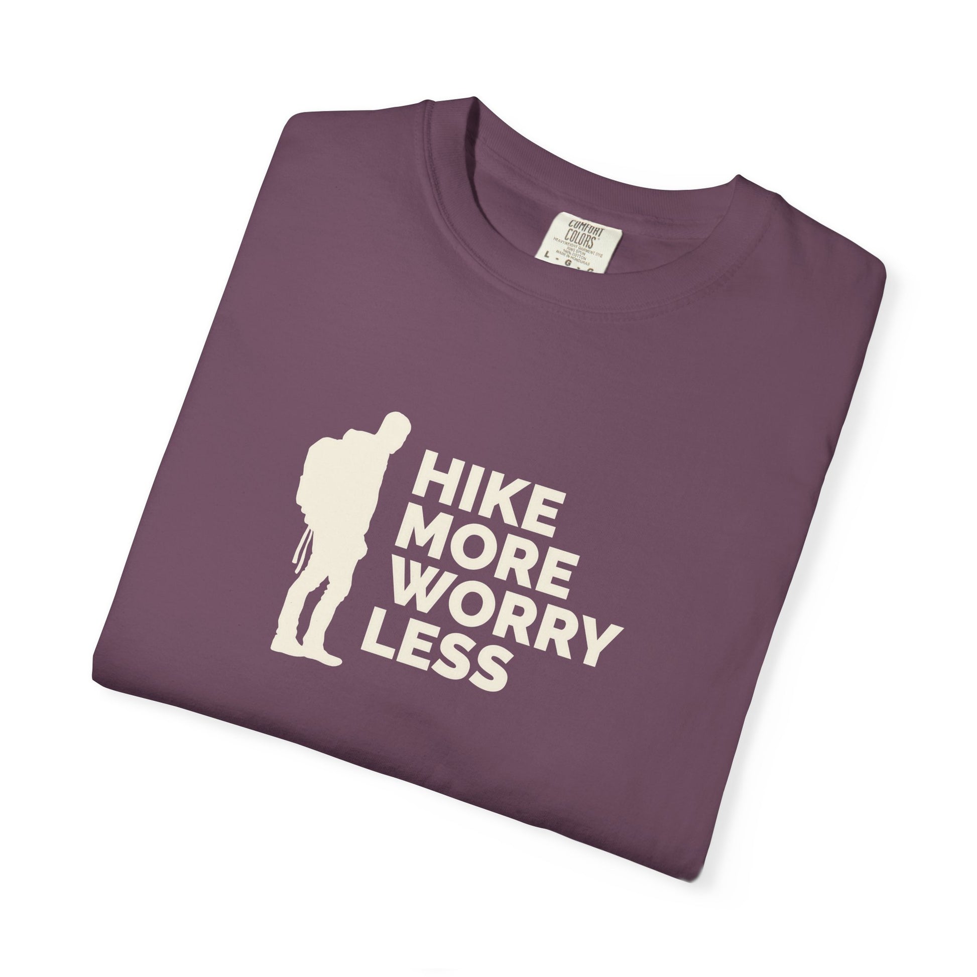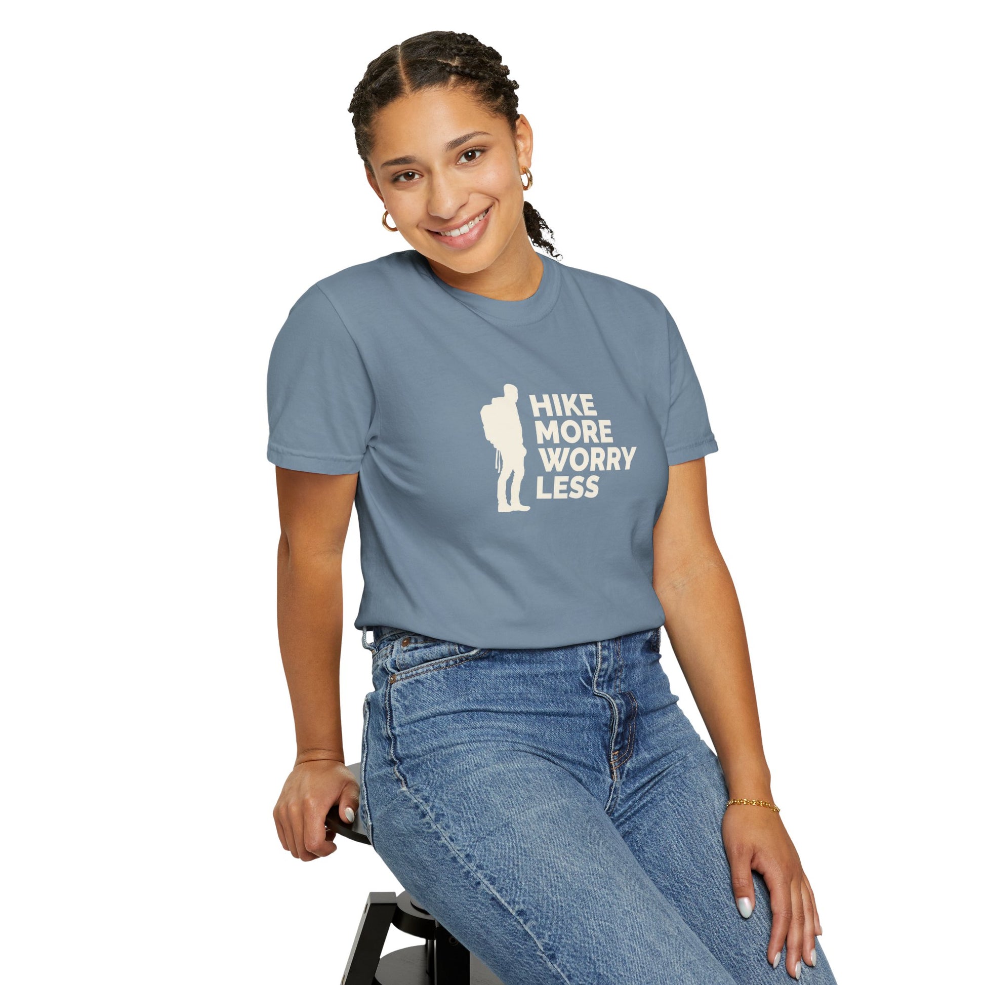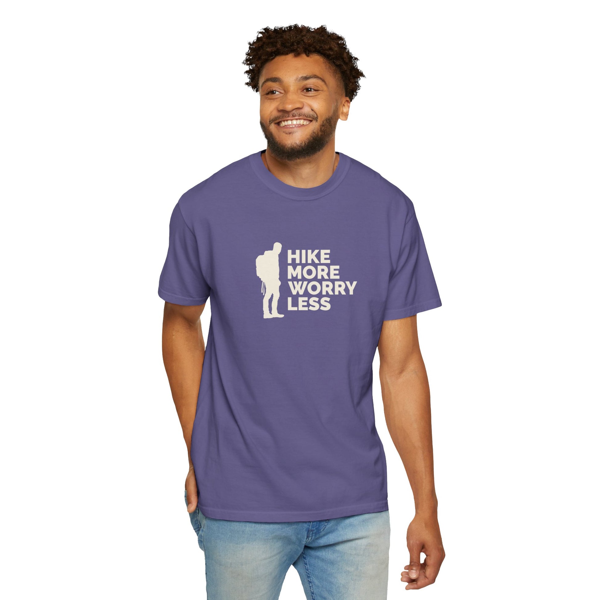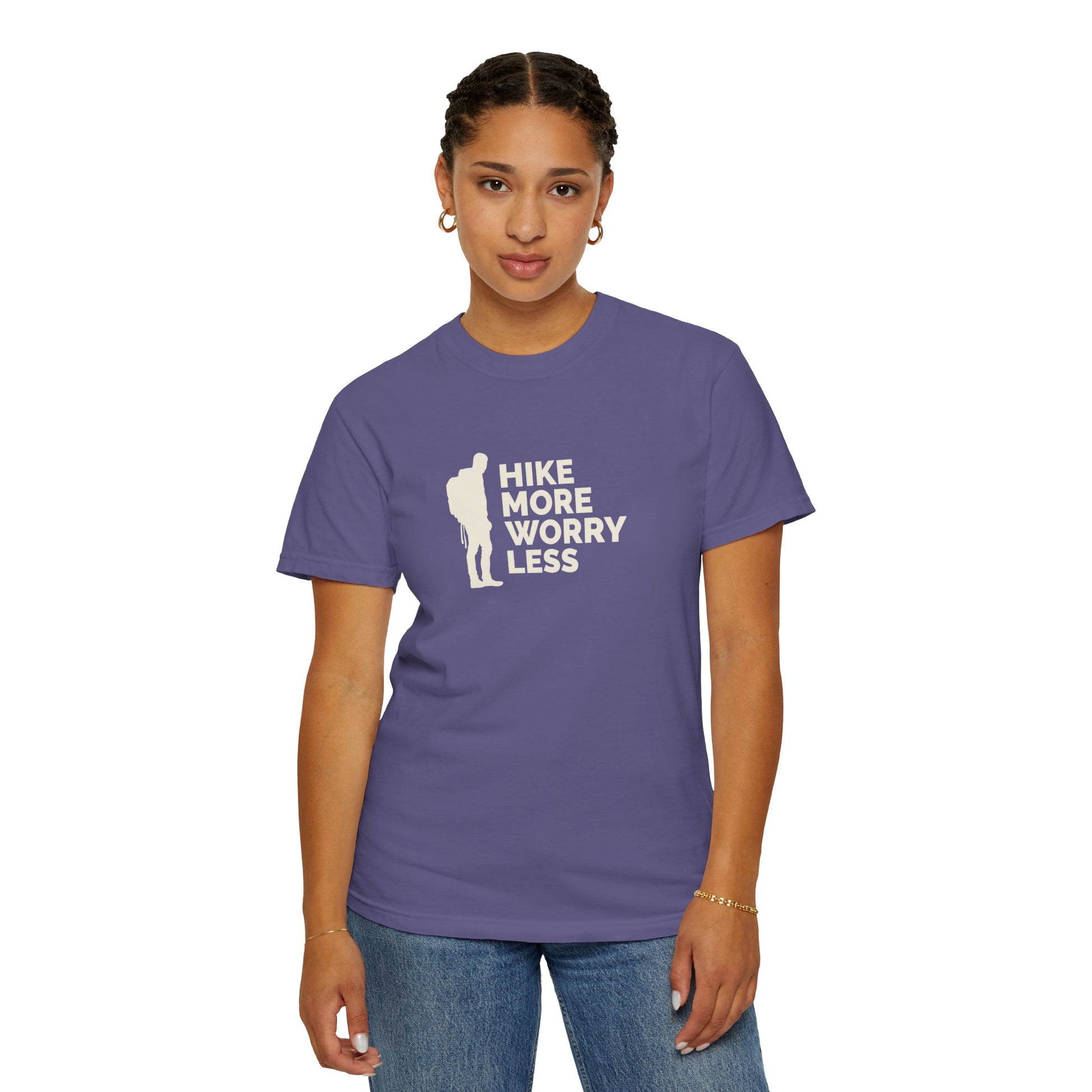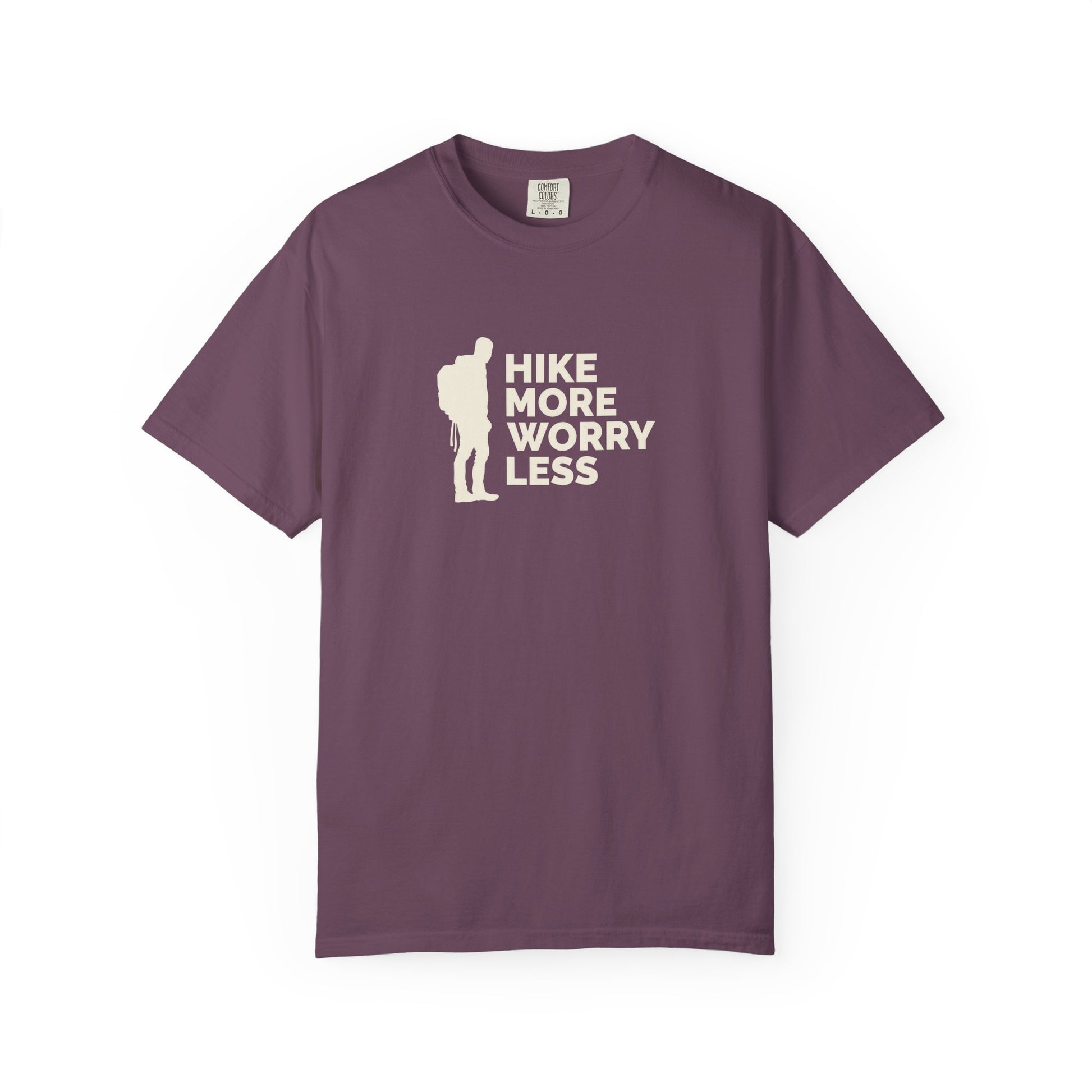 The "Hike More Worry Less" Unisex T-shirt is the perfect shirt for outdoor enthusiasts. Made from soft, 100% ring-spun cotton (or cotton-poly blends for heathers), this lightweight tee offers a comfortable, classic fit with a ribbed crew neckline and durable construction. Ideal for hiking or everyday wear, it combines style, comfort, and a positive, nature-inspired message, encouraging you to embrace adventure and leave the worries behind.