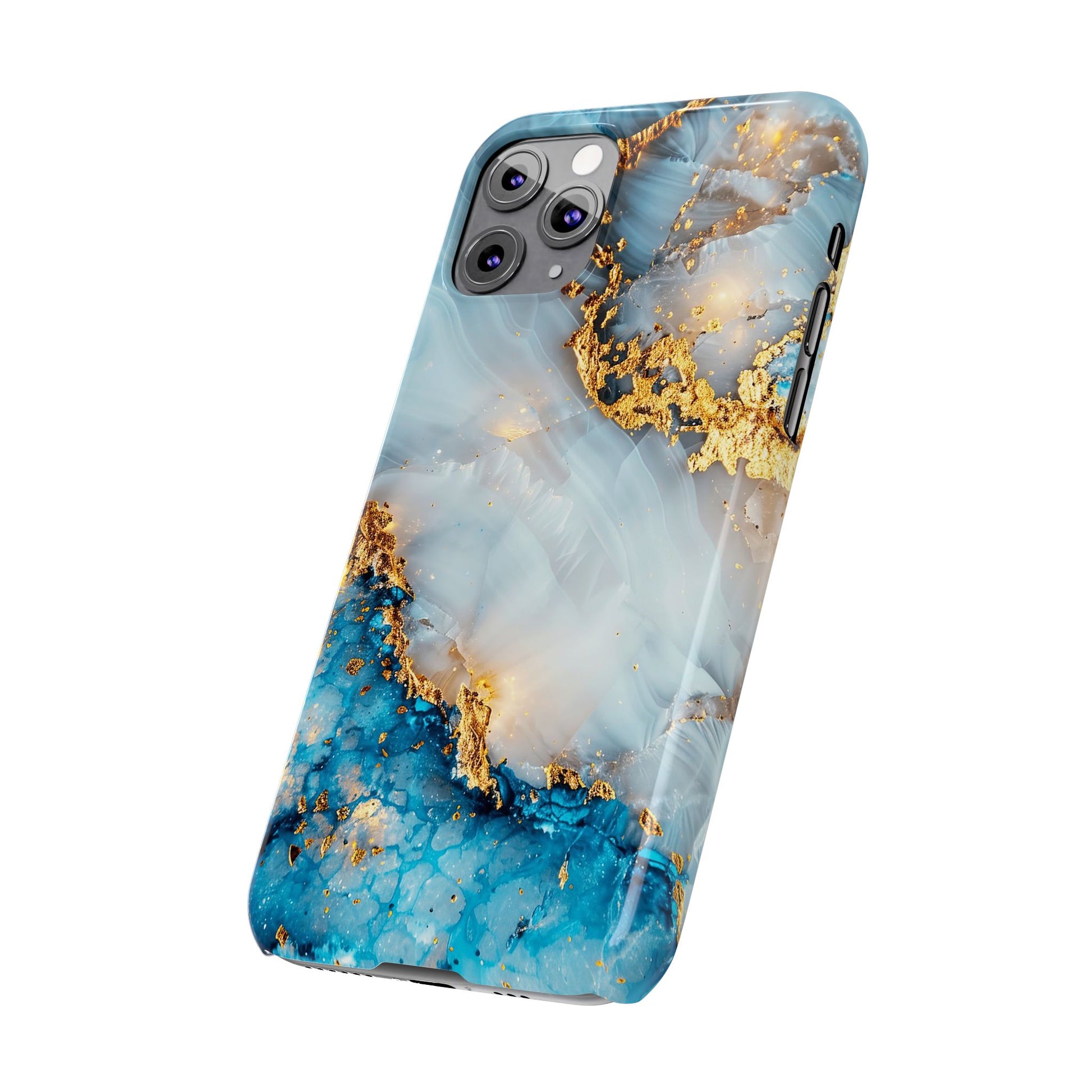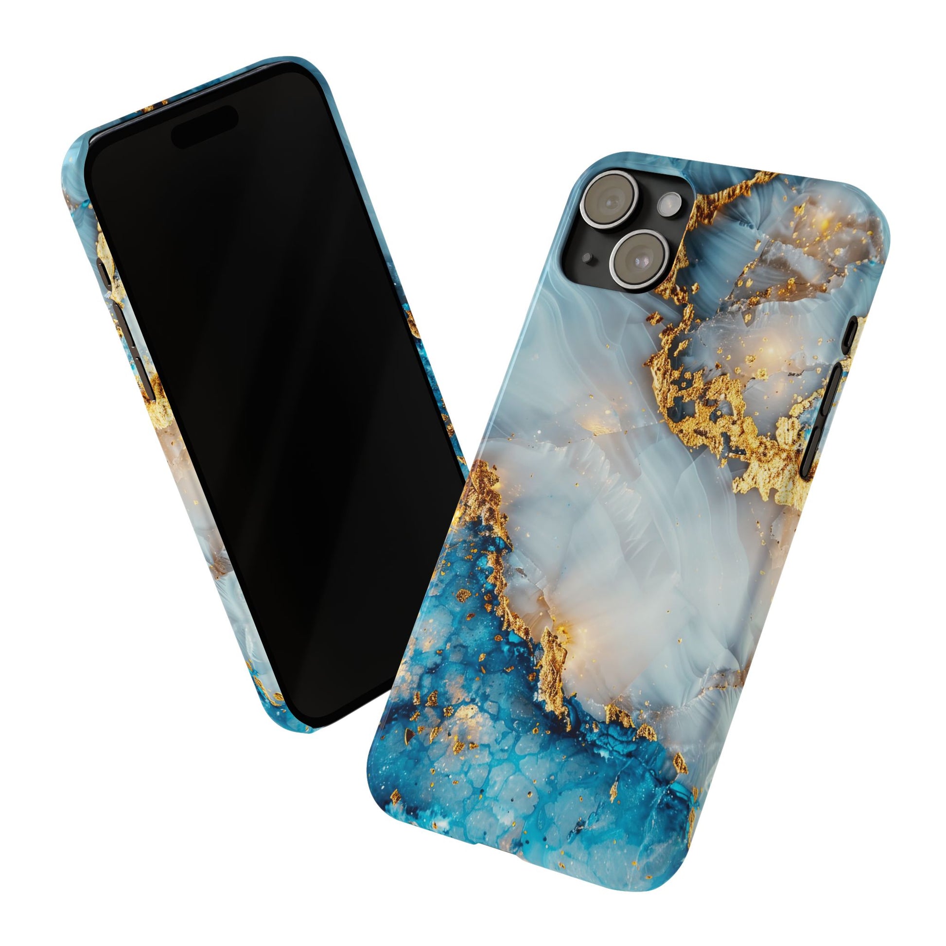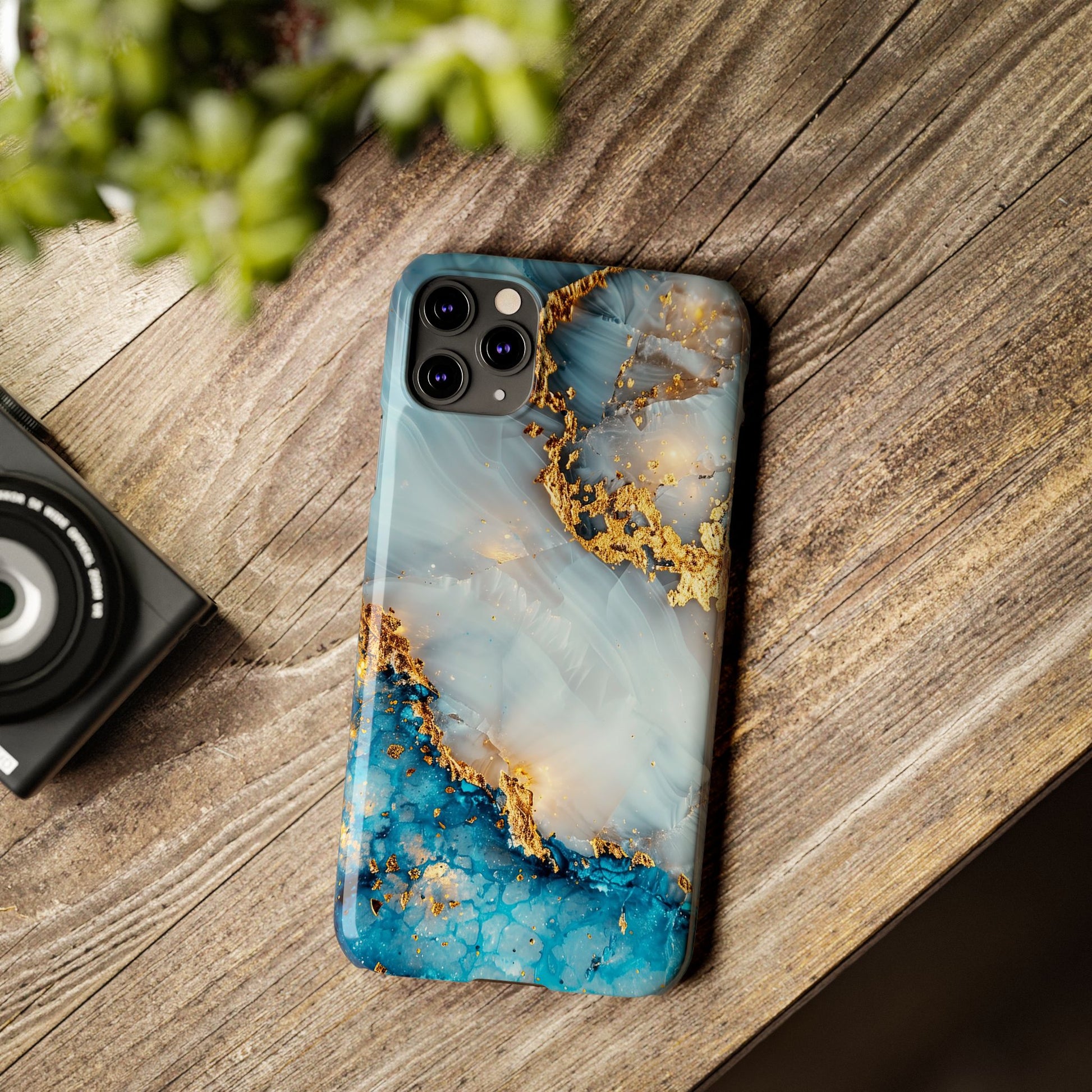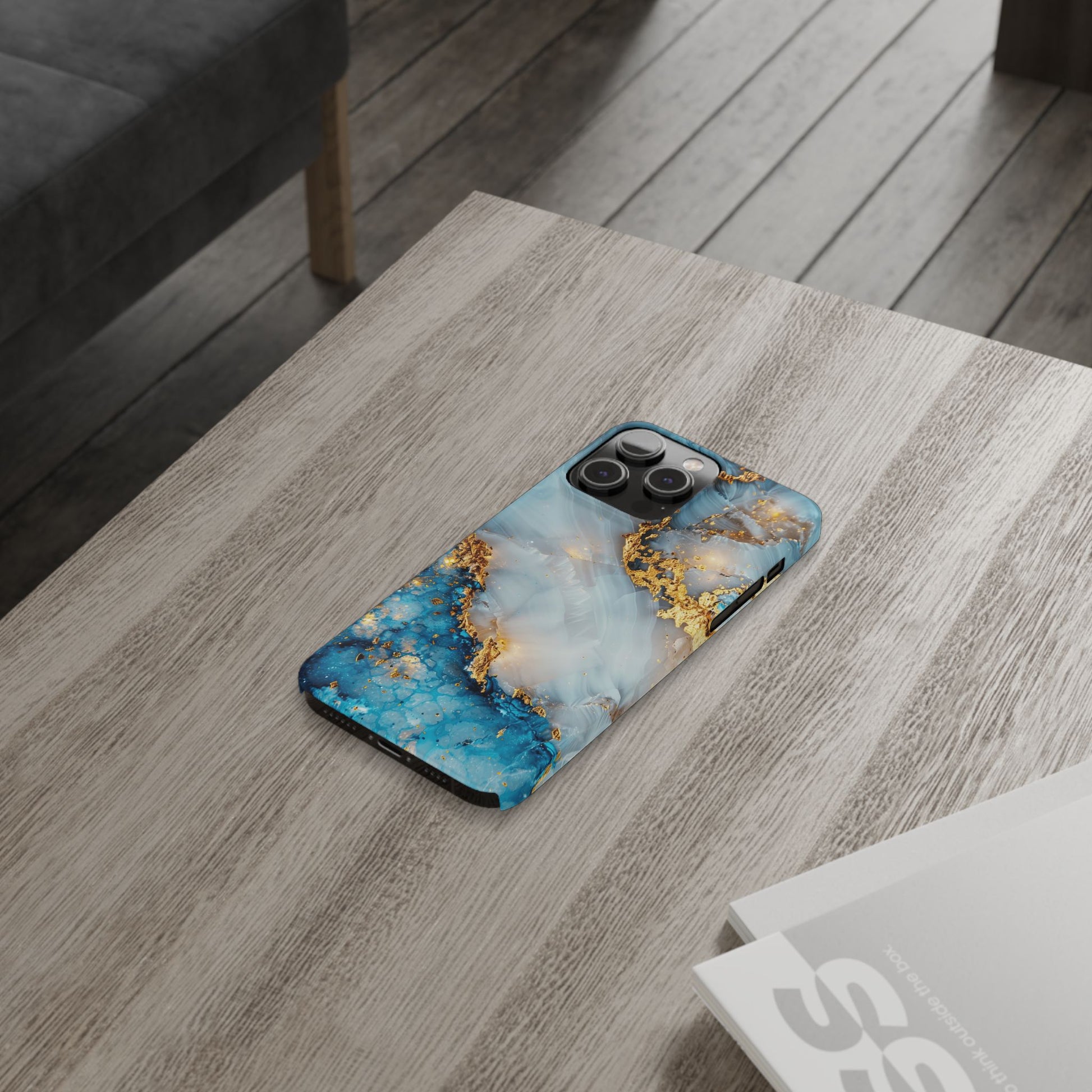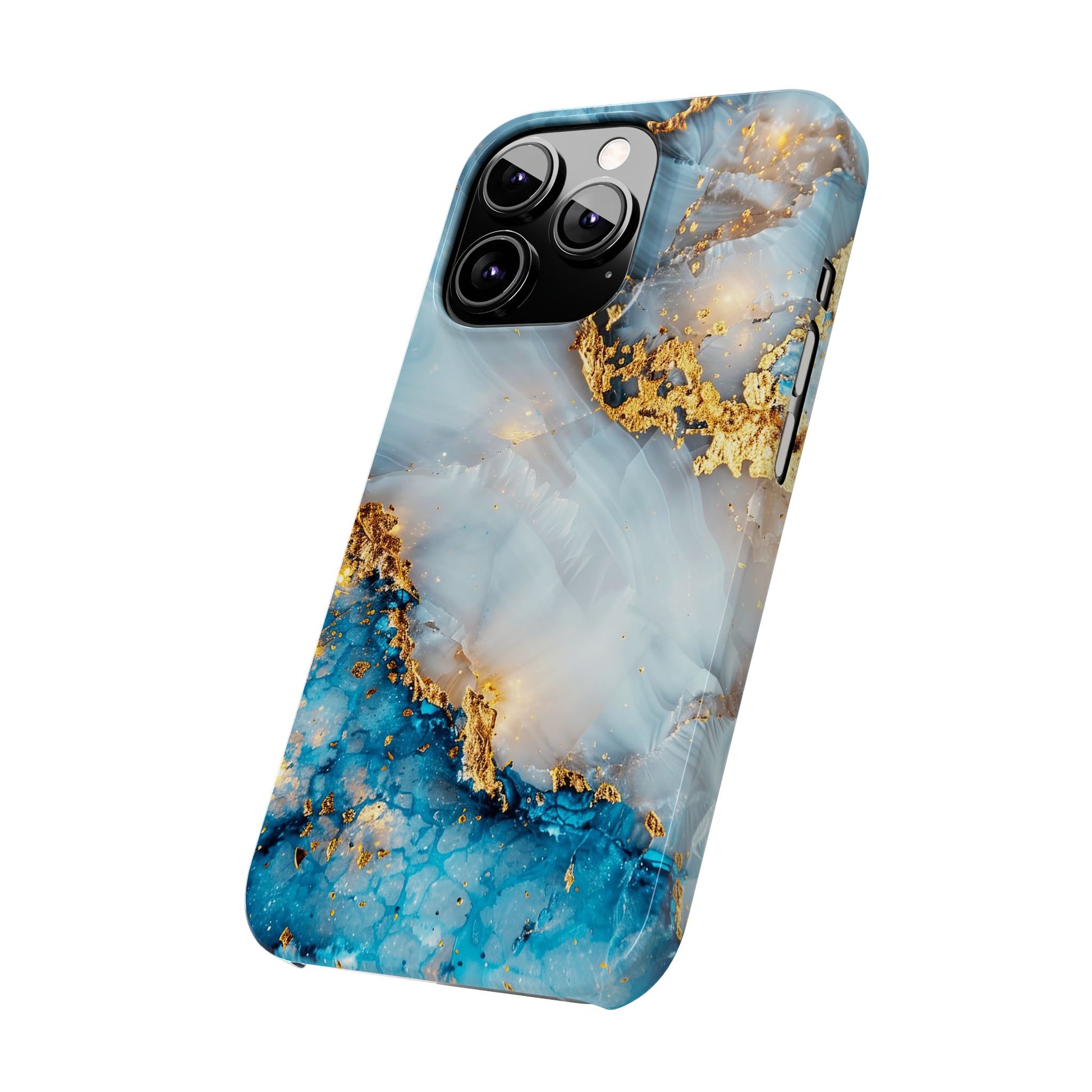 Marble Luxe Slim iPhone Case, Elegant Blue & Gold Design