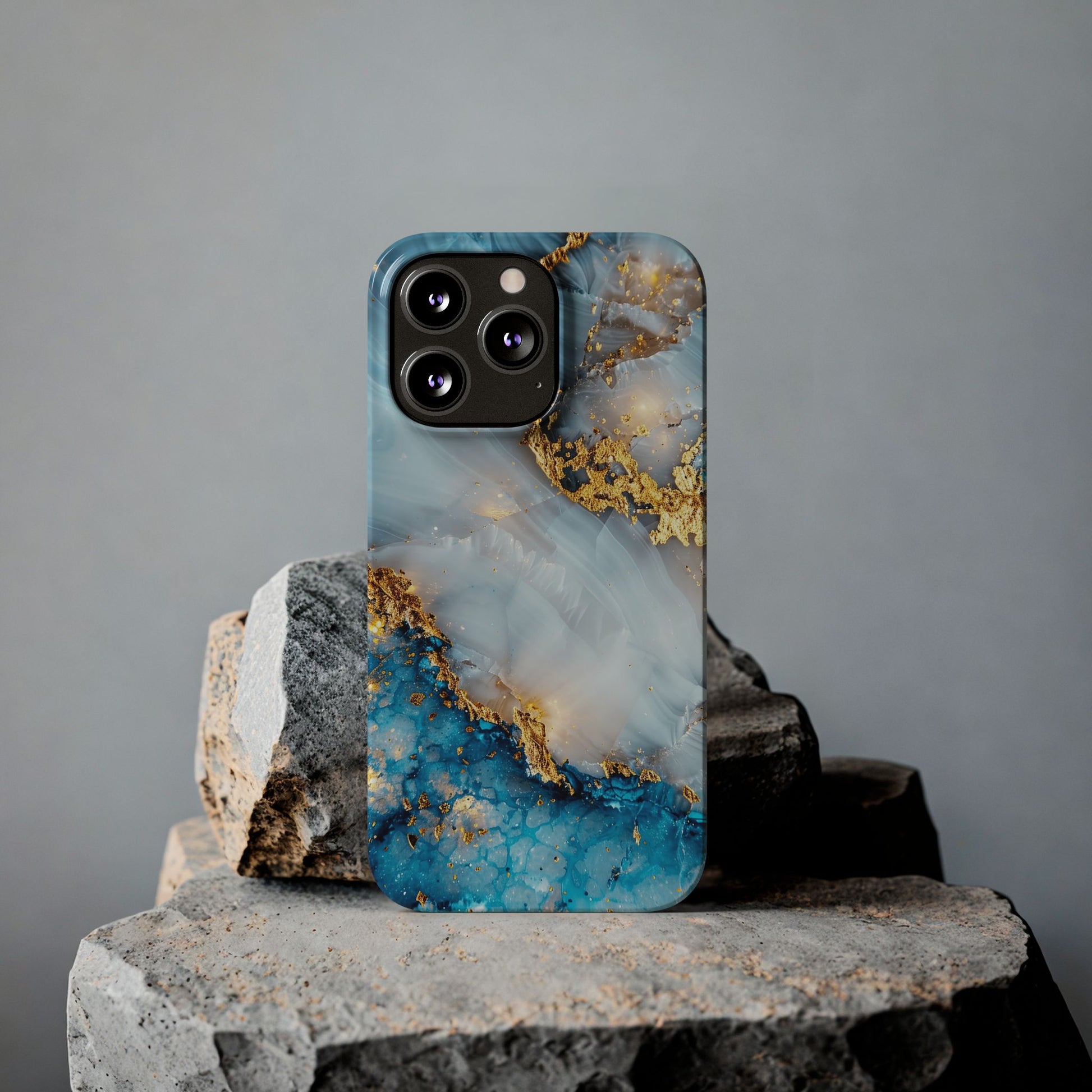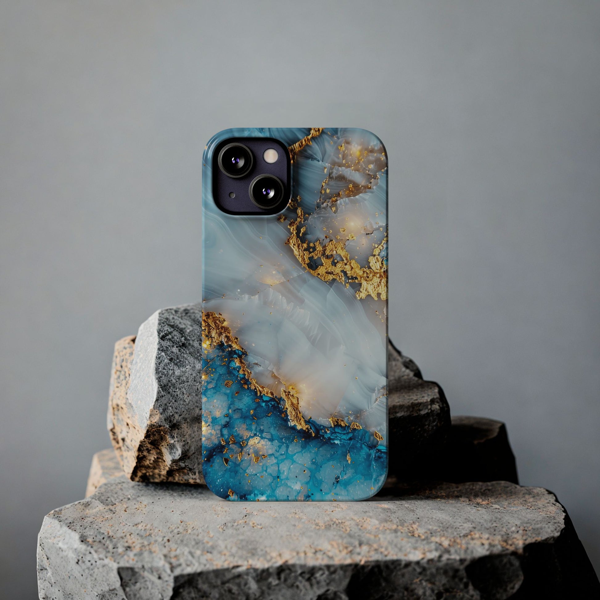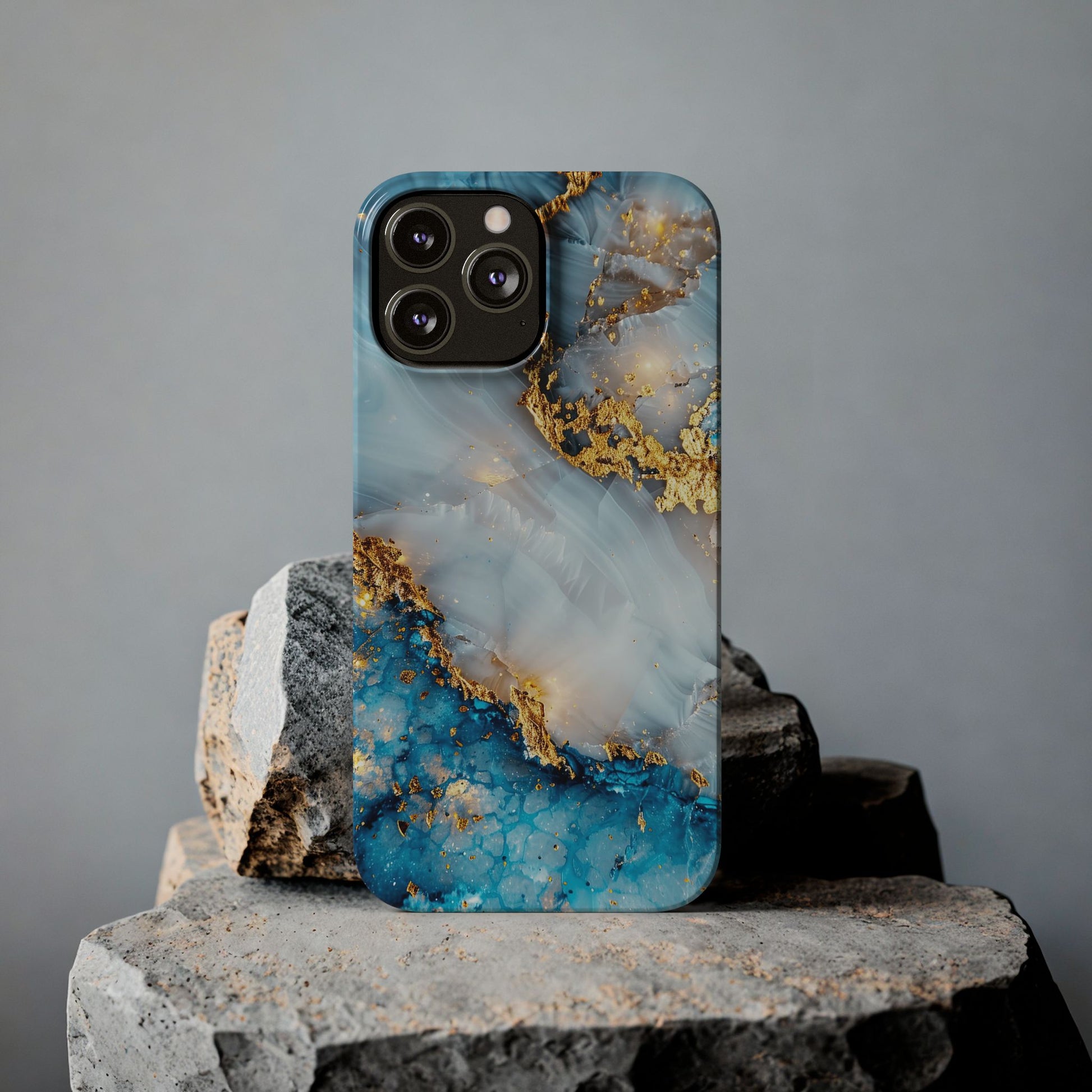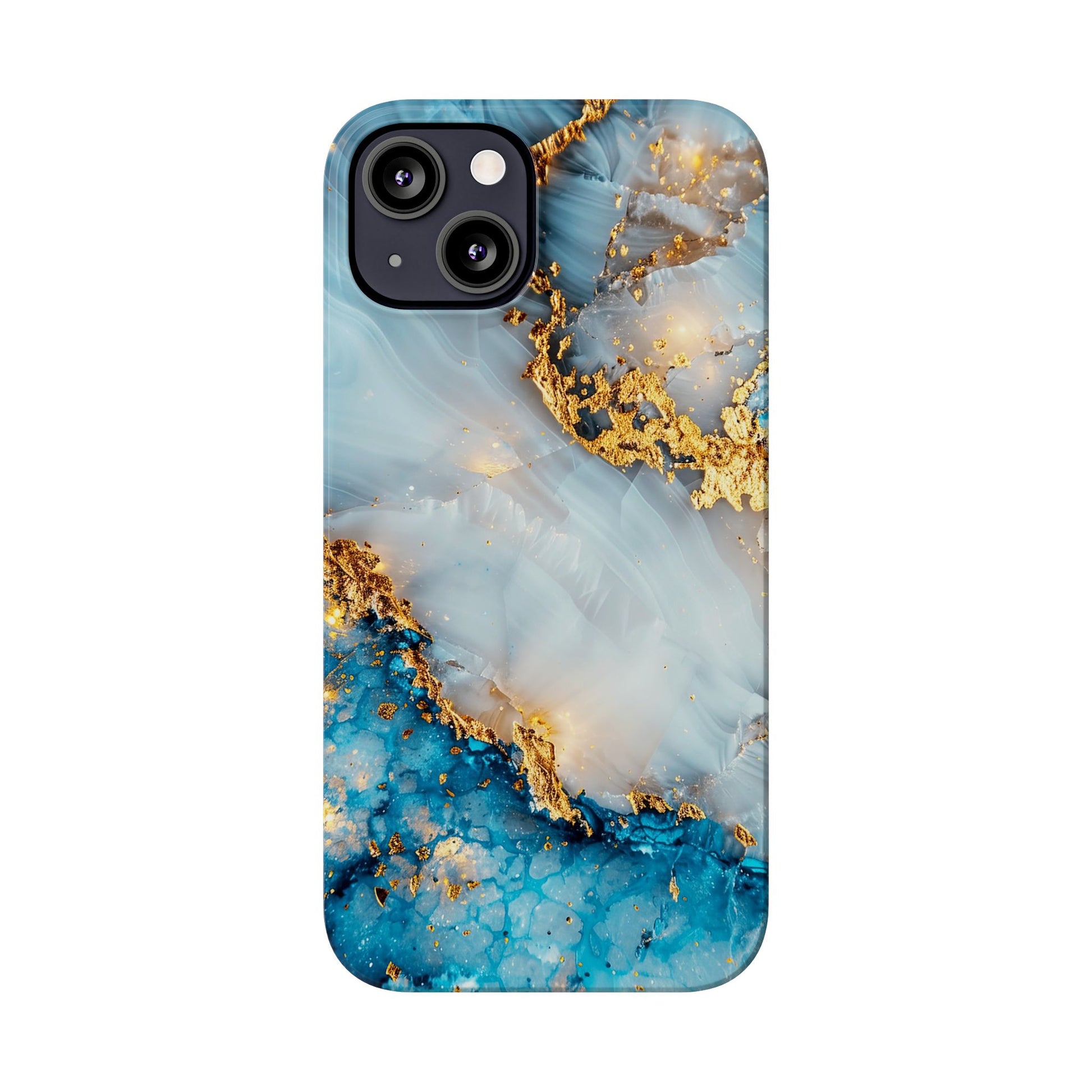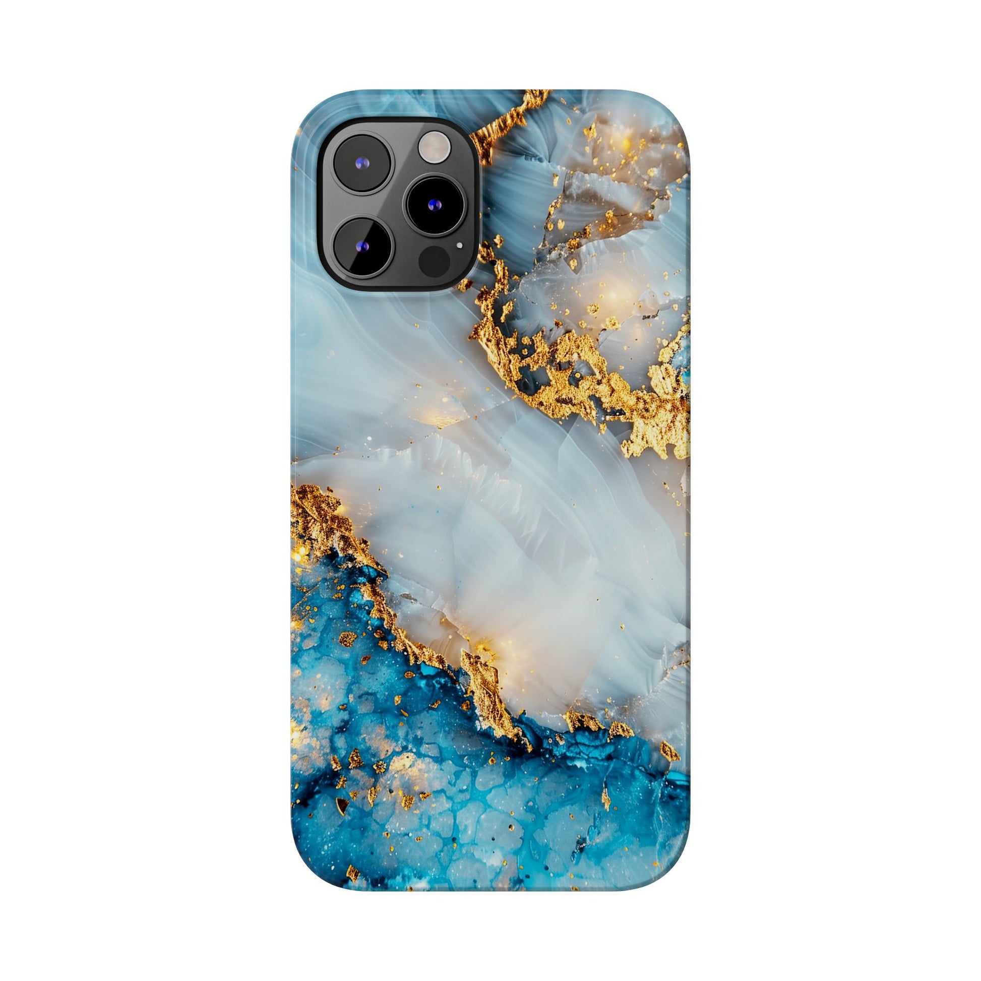 Marble Luxe Slim iPhone Case, Elegant Blue & Gold Design