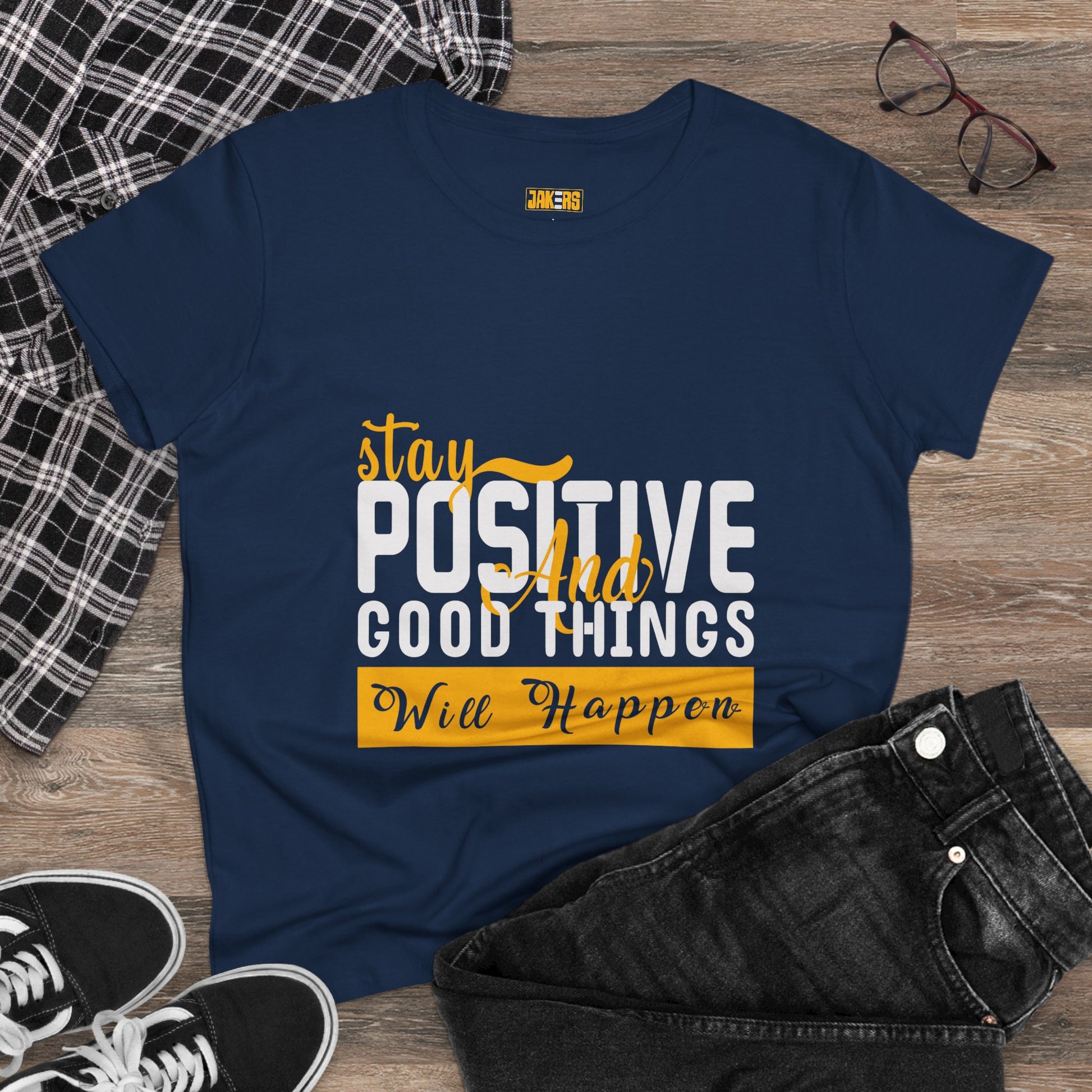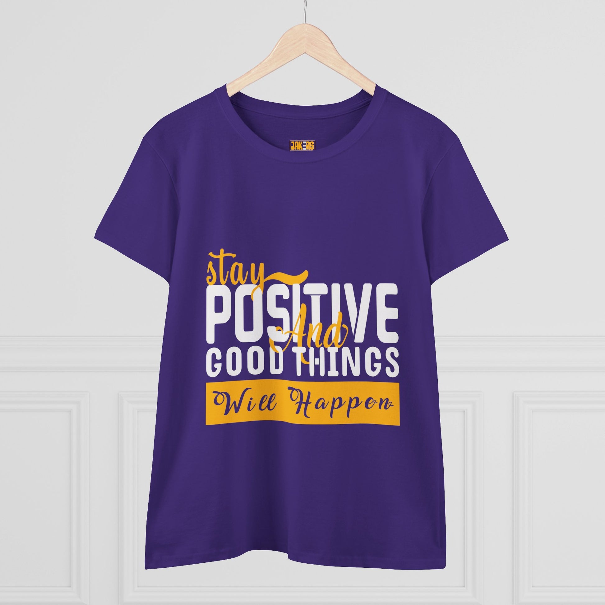 Stay Positive Women's Midweight Cotton Tee - Inspirational T-Shirt