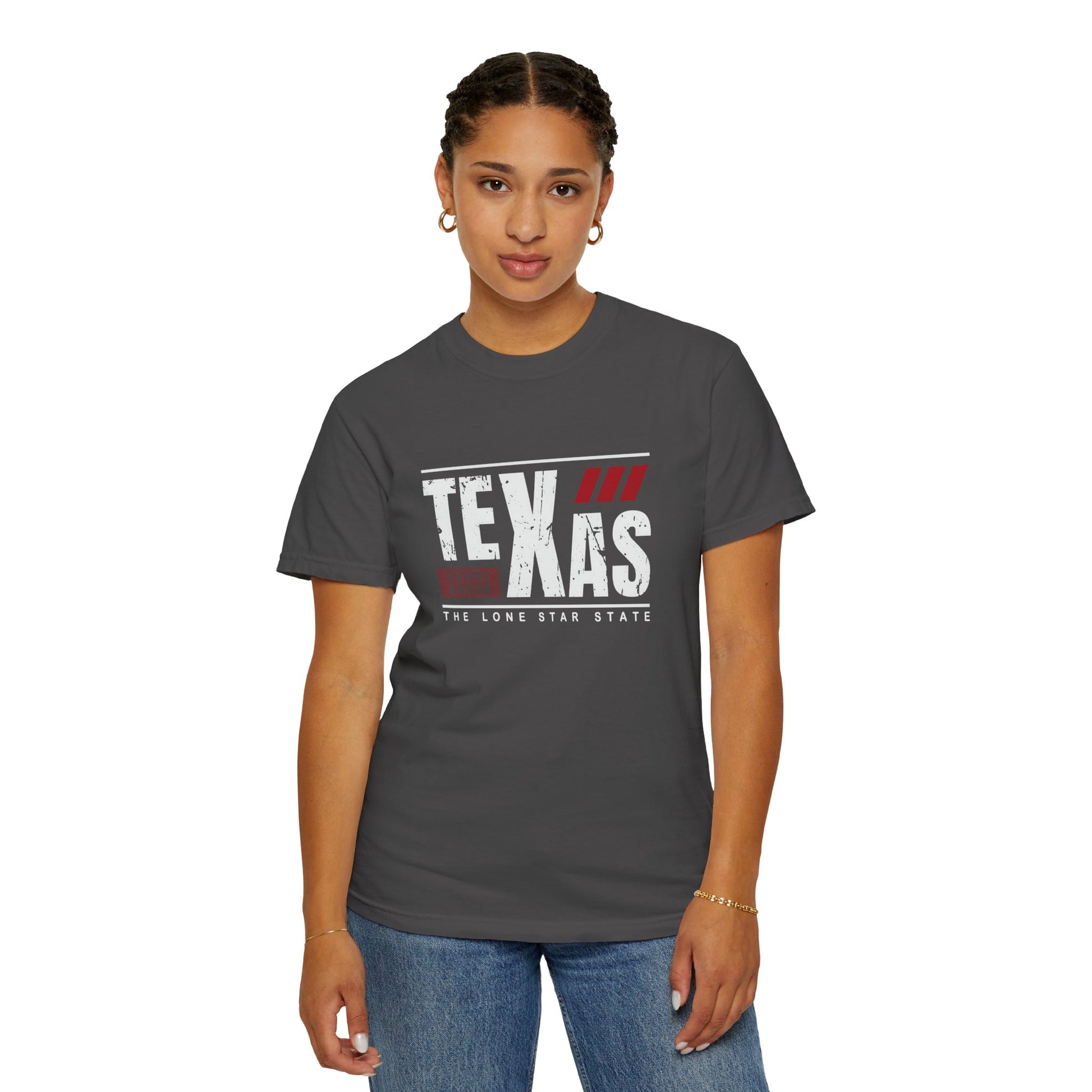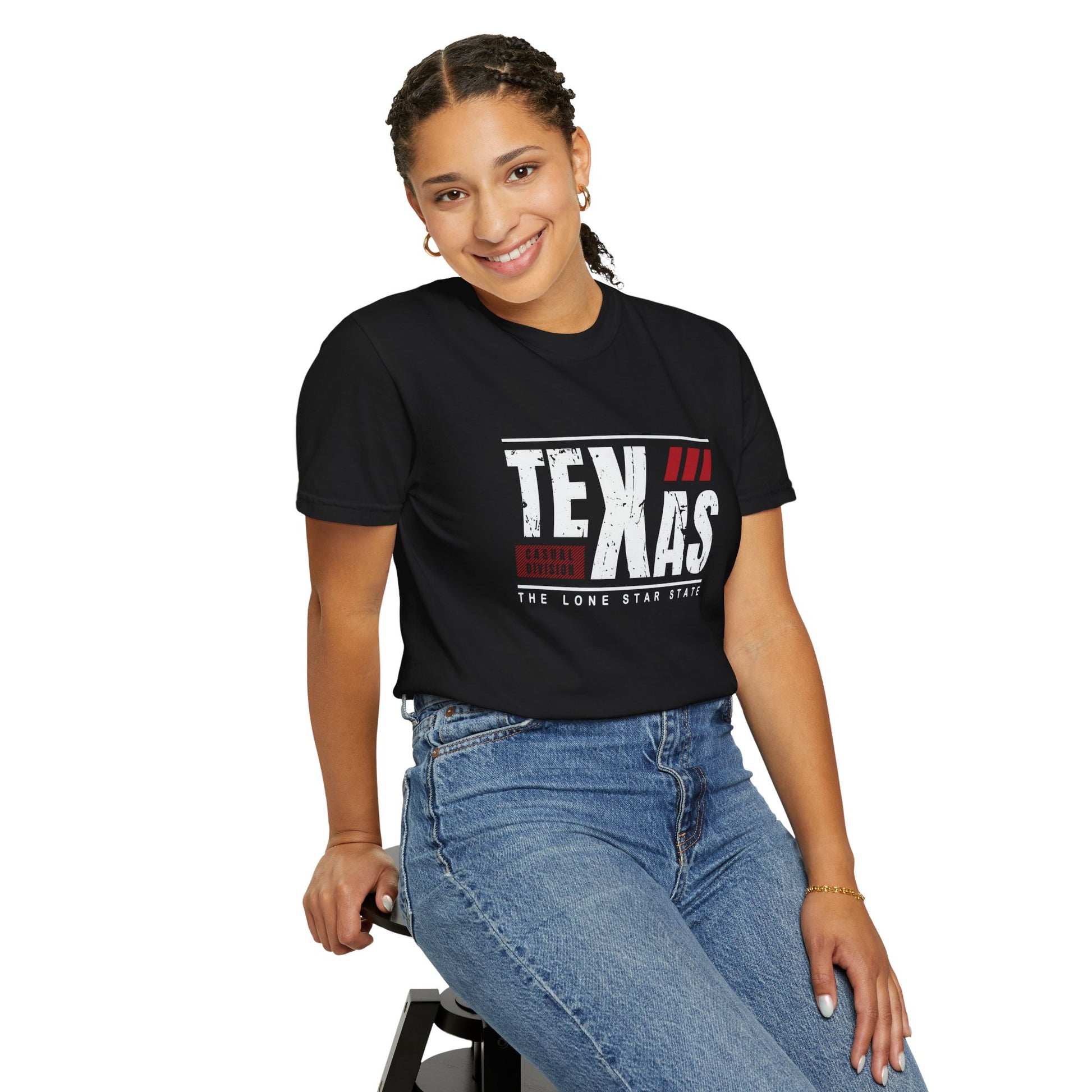 Texas Pride Unisex Garment-Dyed T-Shirt - Casual Style for State Lovers. This t-shirt exudes a casual and relaxed vibe, perfect for those who love their state of Texas. It's a great addition to any state enthusiast's wardrobe, suitable for everyday wear or for showing off state pride on special occasions.